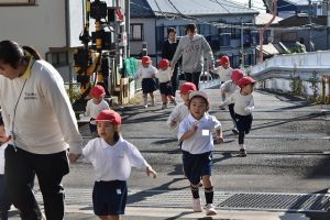 Penguin組、なかよし組が 11分で幼稚園裏の安全な高台へ避難できたことです