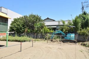 ブロック塀/危険部分には前に 花壇、樹木がり