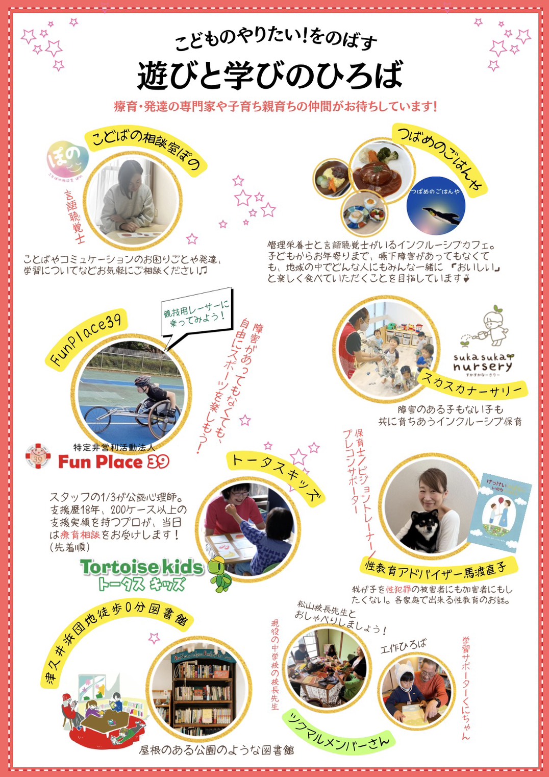 療育・発達の専門家や子育ち親育ちの仲間がお待ちしています。
