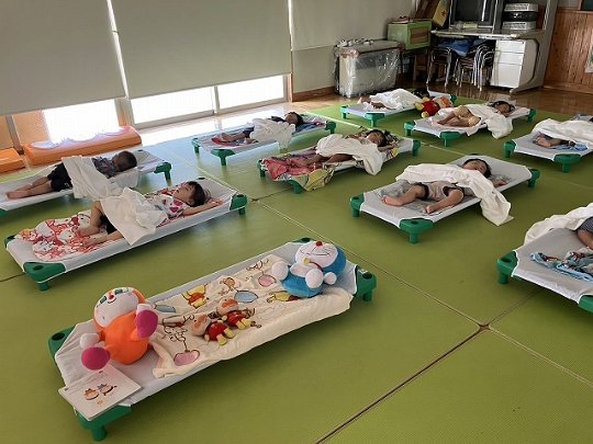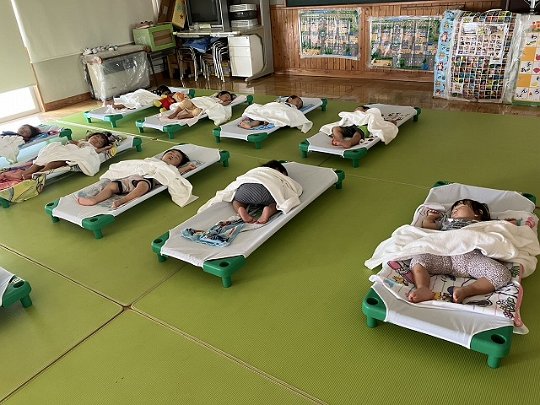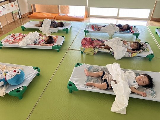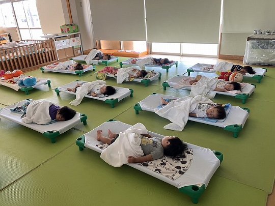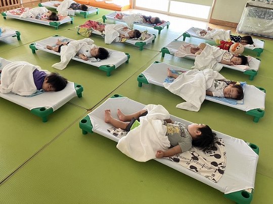 なかよし教室 本日よりお昼寝コットを導入しました。(うつ伏せ寝はその都度仰向けに直しています)