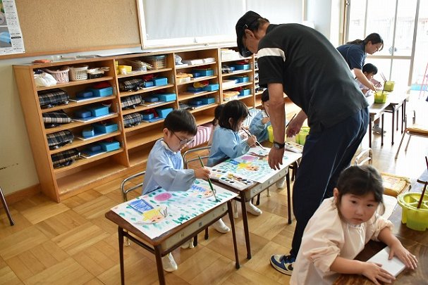 年少・年中 斎藤先生に絵画指導していただきました