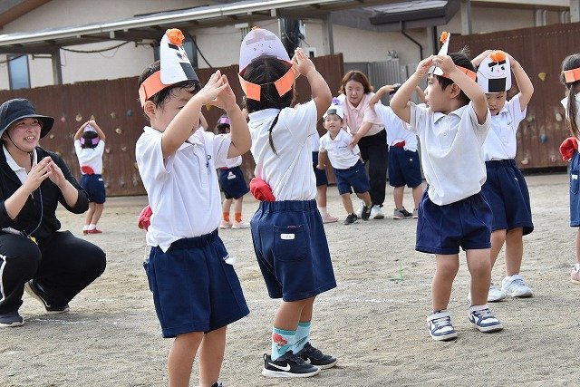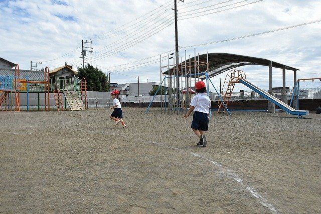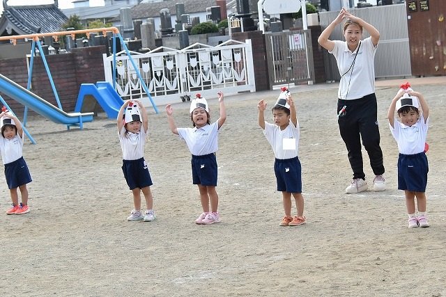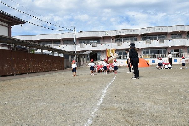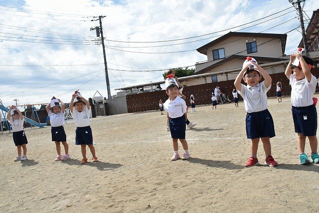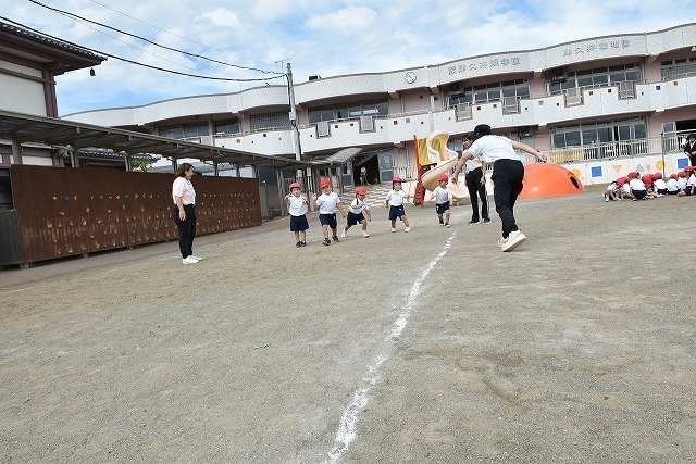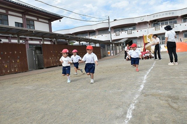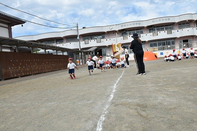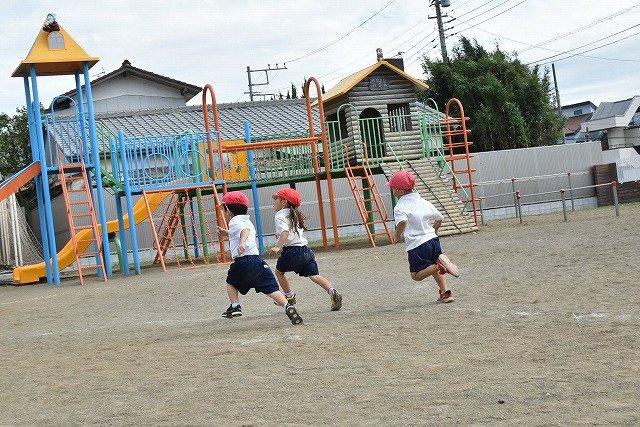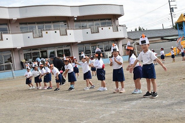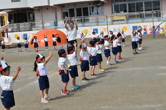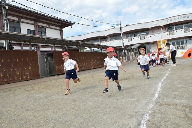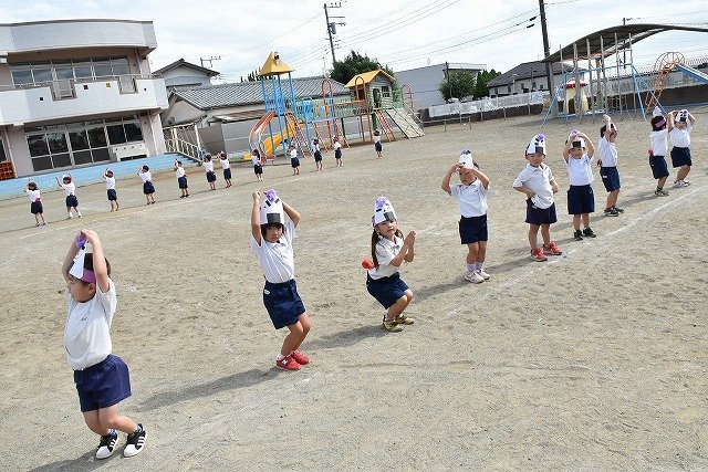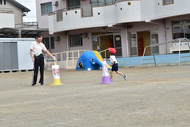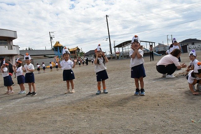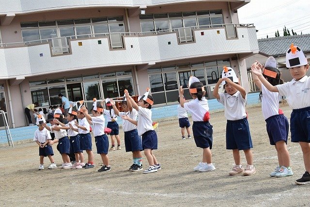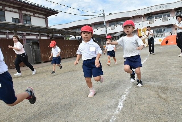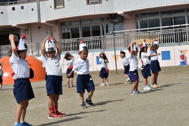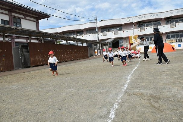年少組 徒競走の練習とあいうえおにぎりを踊りました。