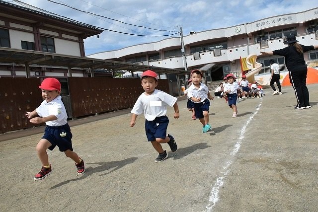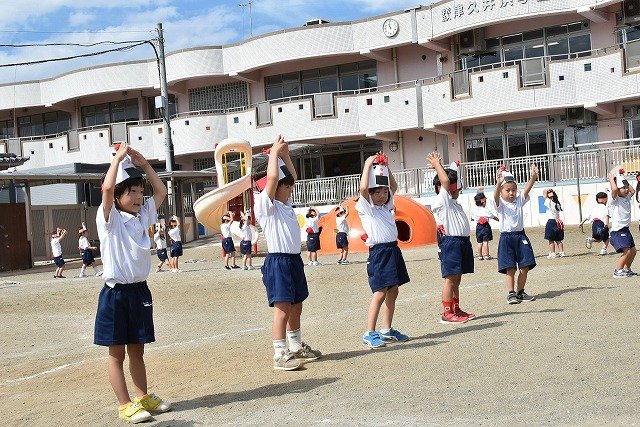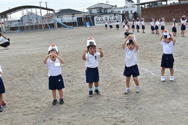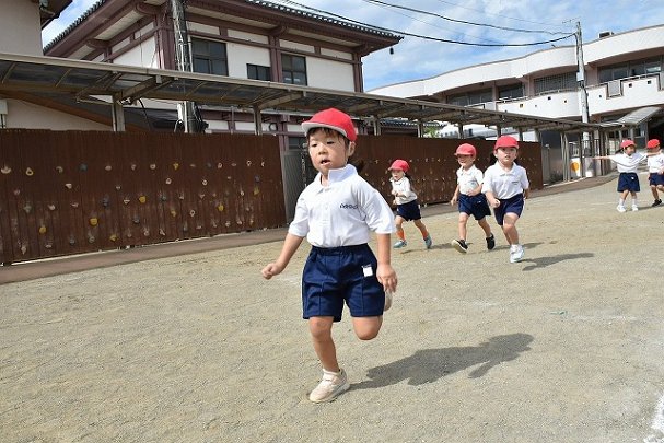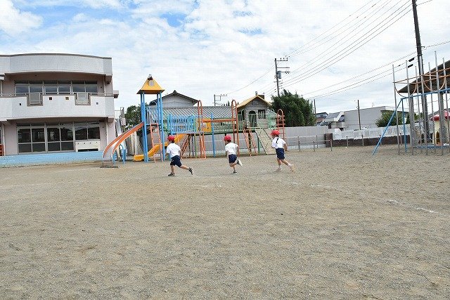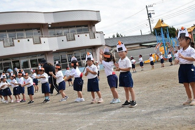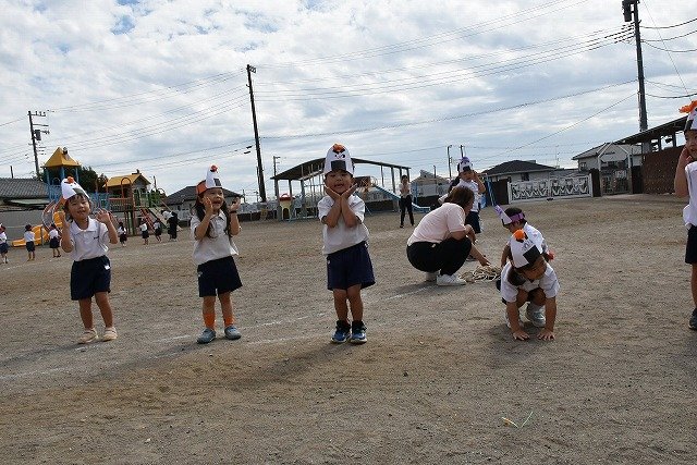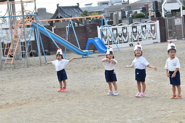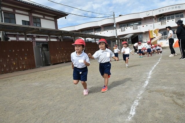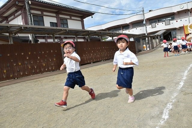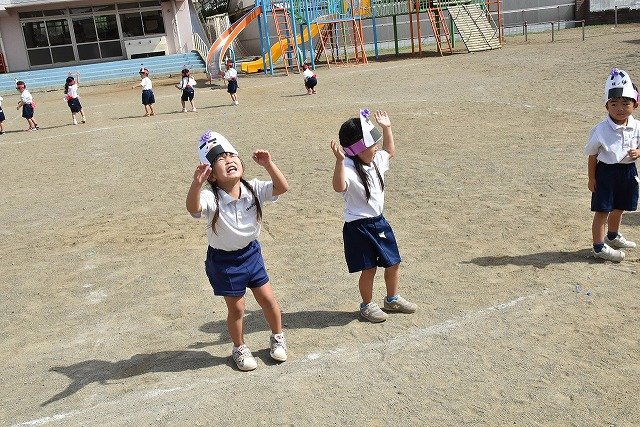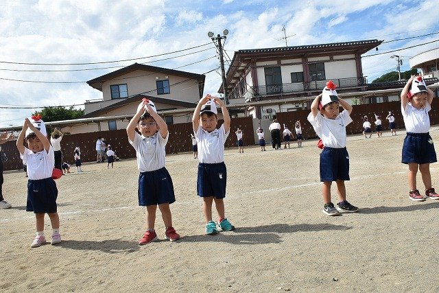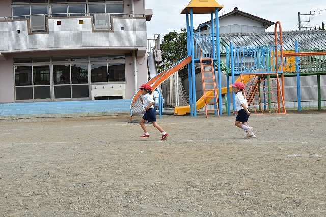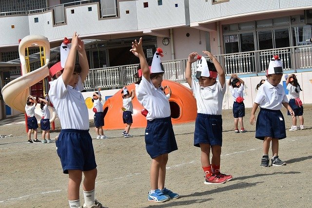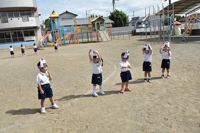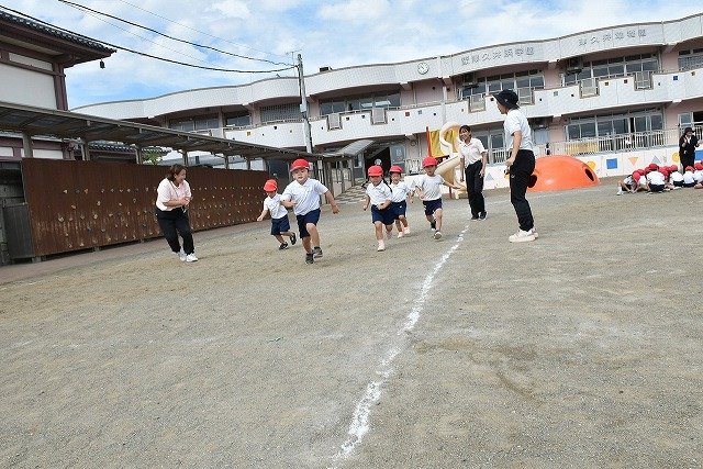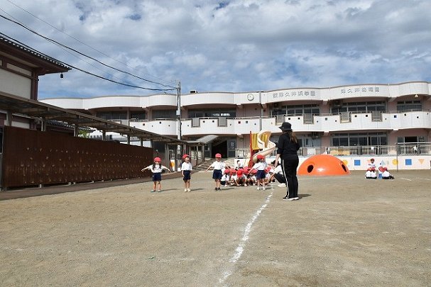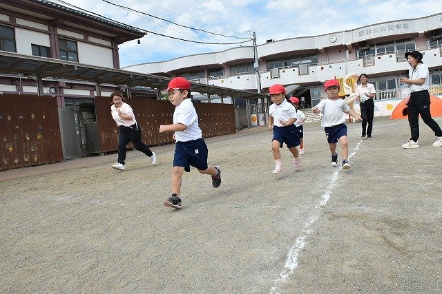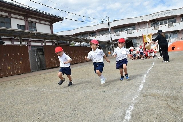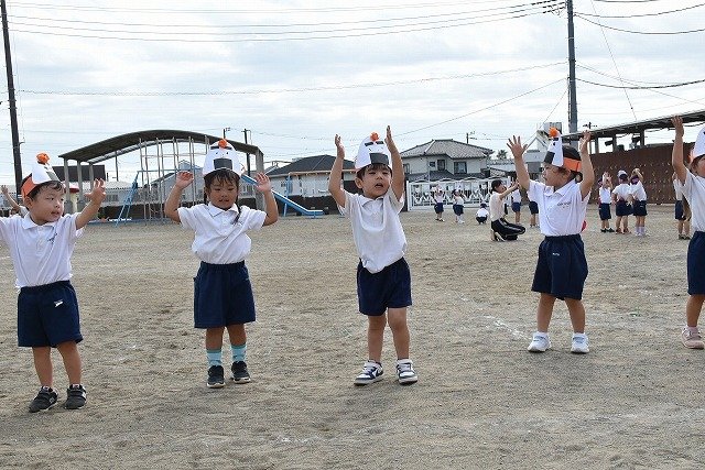 年少組 徒競走の練習とあいうえおにぎりを踊りました。