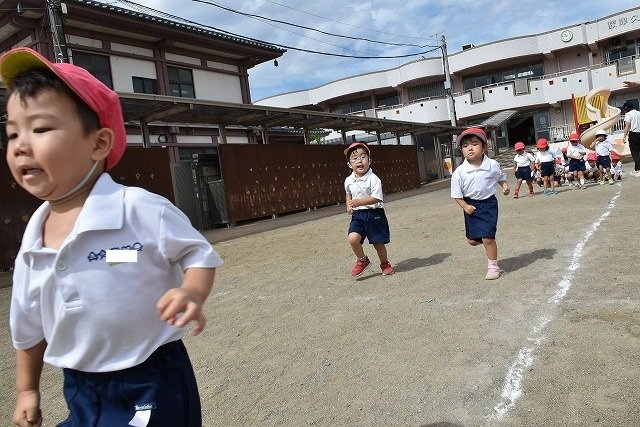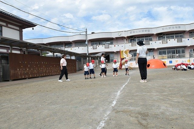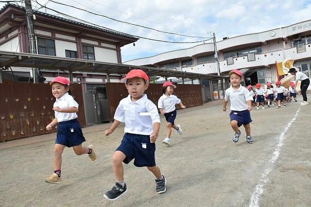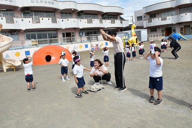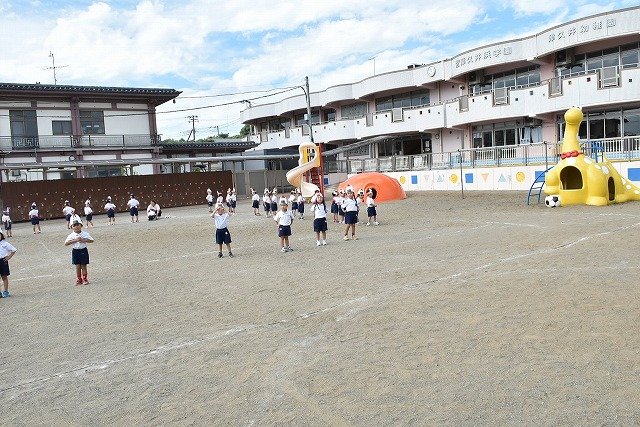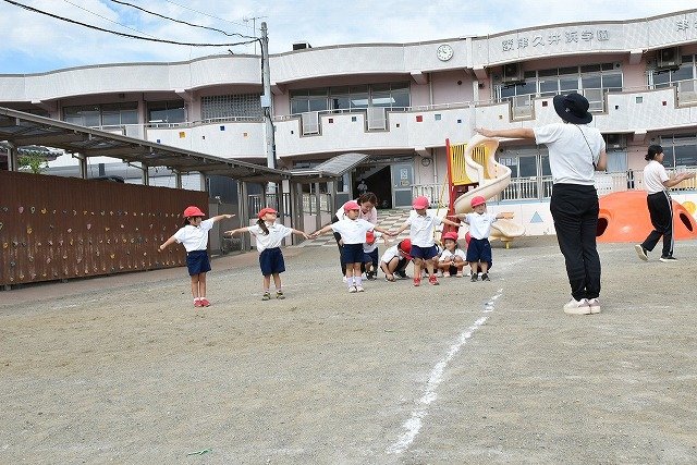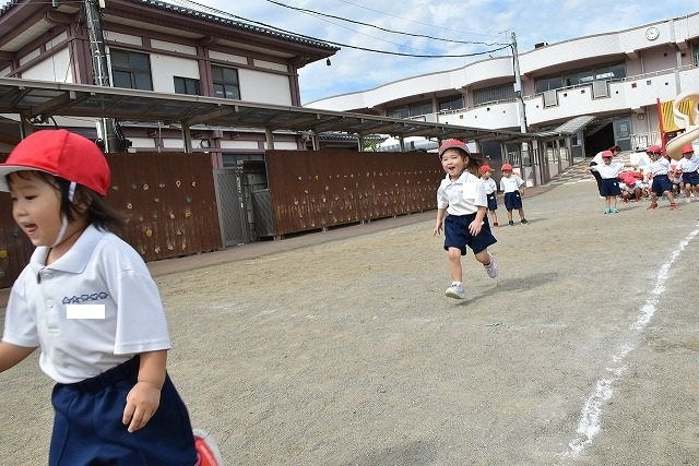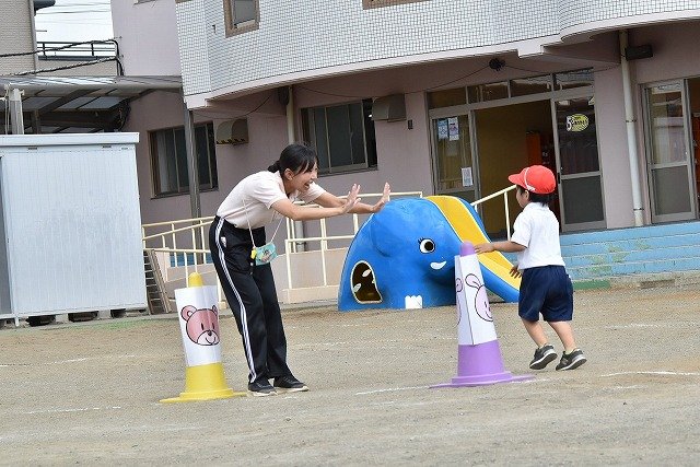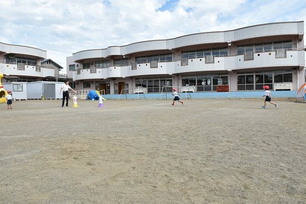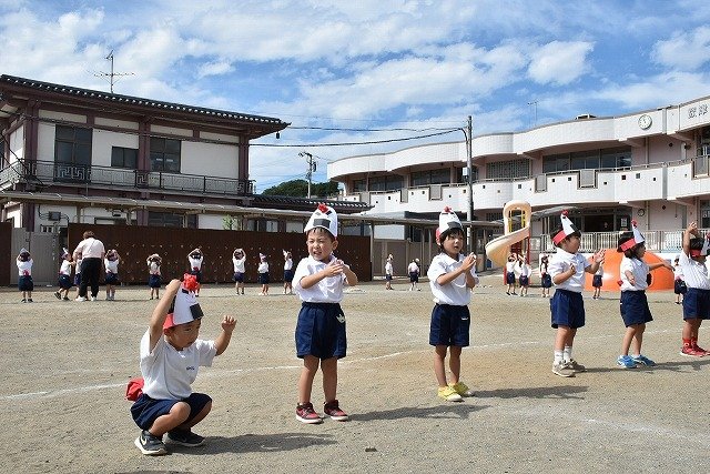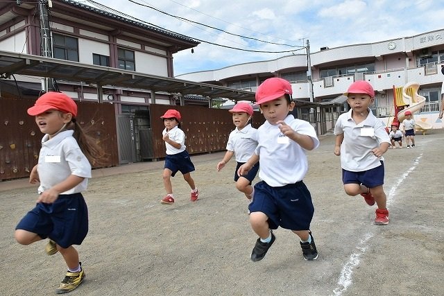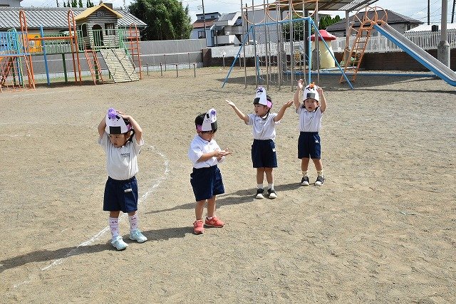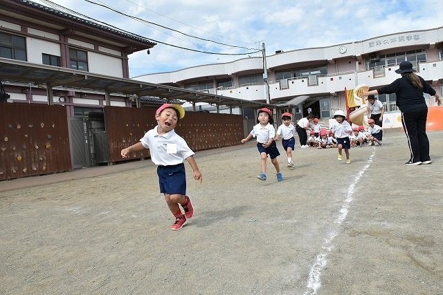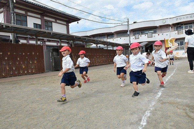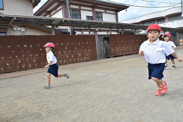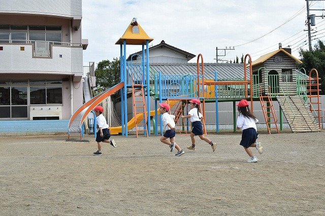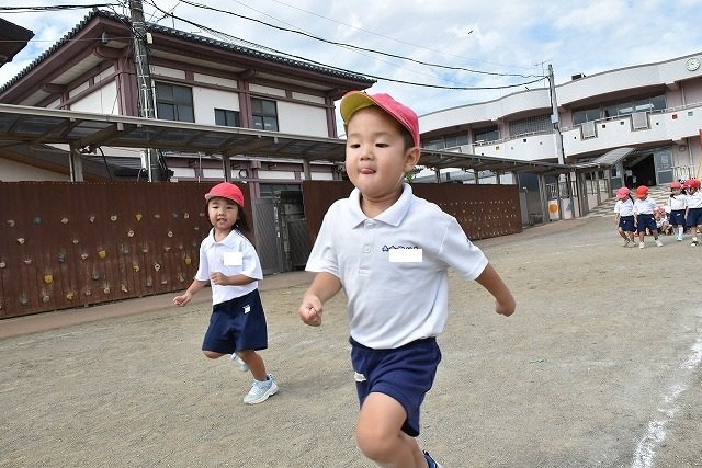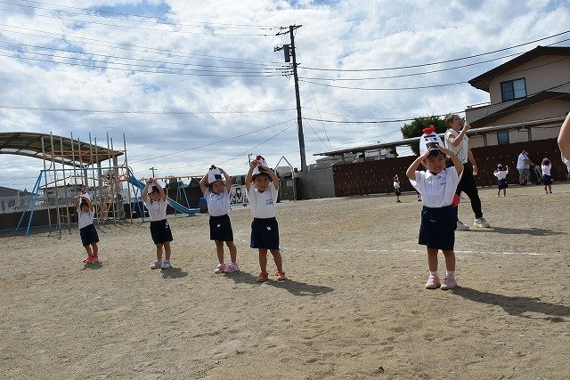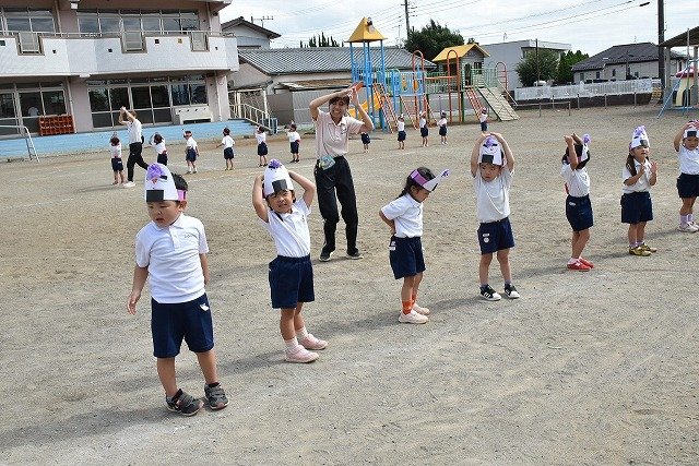 年少組 徒競走の練習とあいうえおにぎりを踊りました。
