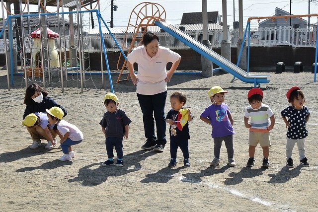 運動会の予行練習を行いました。 全園児で行い、ほかの学年の競技も見られました。 当日は練習の成果を発揮してくれるでしょう! たくさんの拍手とお褒めの言葉をお願いします。コドモンにも後日写真掲載します。
