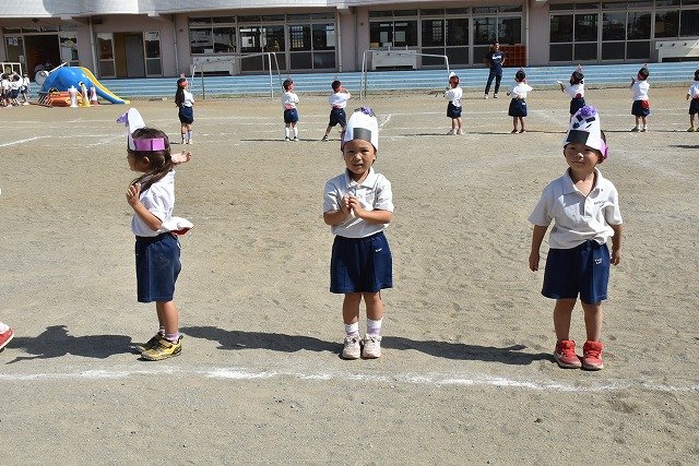 10.7 運動会予行練習-3 行け!Lotus忍者・いっしょによーいどん・あいうえおにぎり