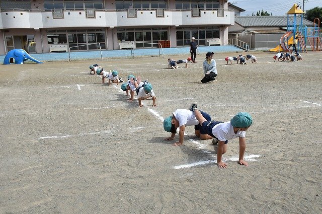 運動会の予行練習を行いました。 全園児で行い、ほかの学年の競技も見られました。 当日は練習の成果を発揮してくれるでしょう! たくさんの拍手とお褒めの言葉をお願いします。コドモンにも後日写真掲載します。