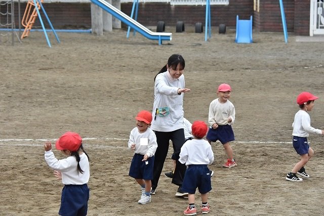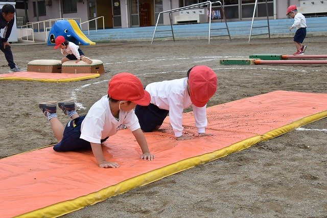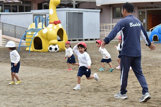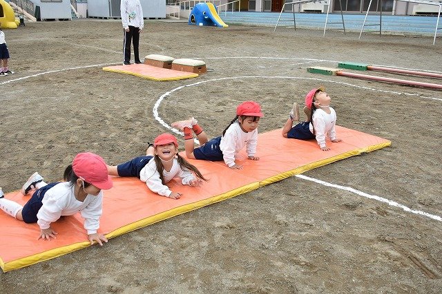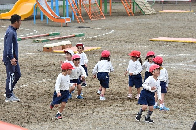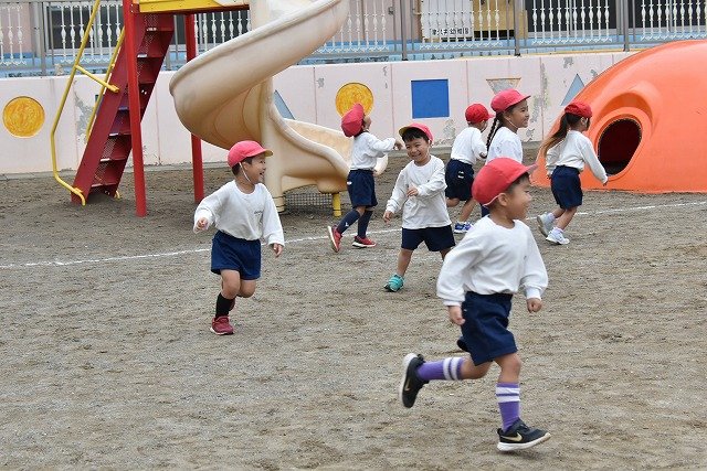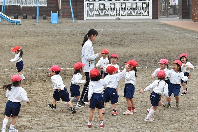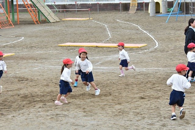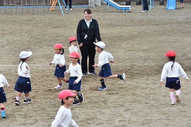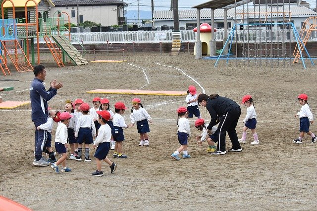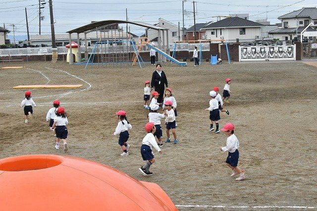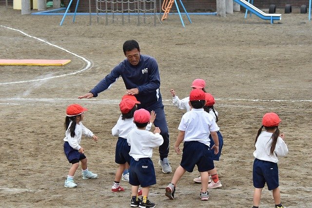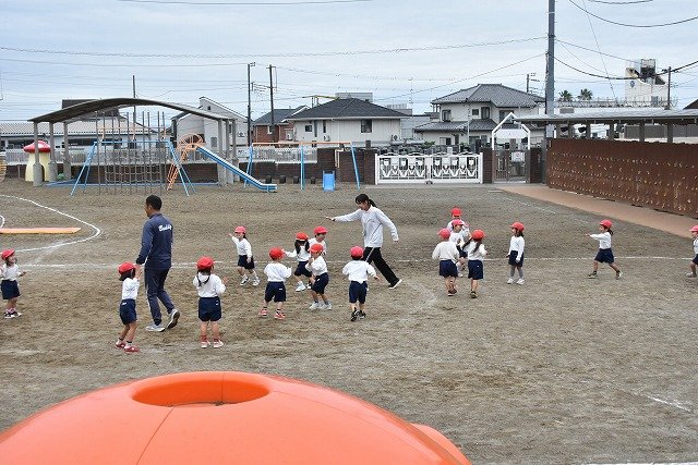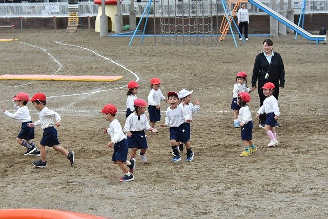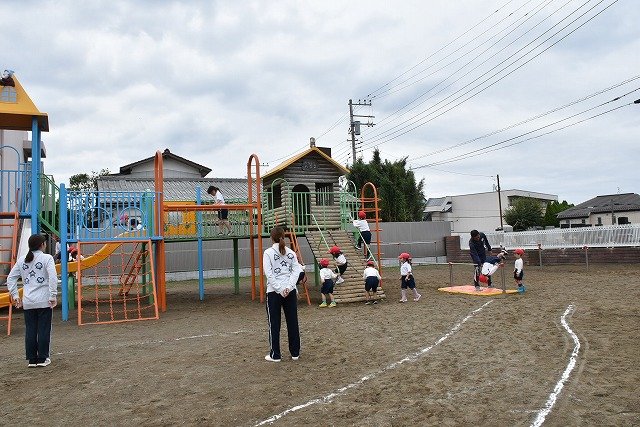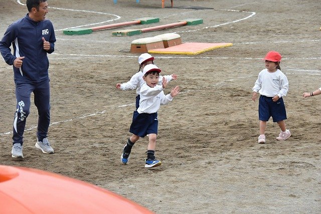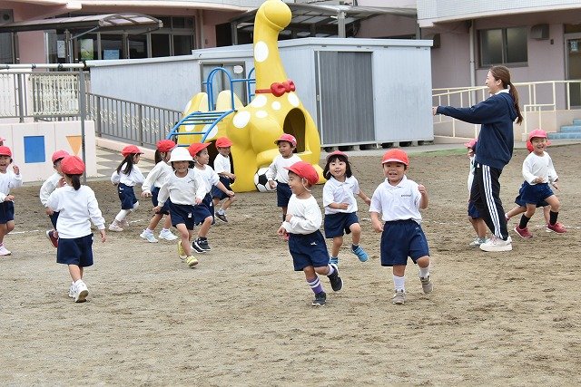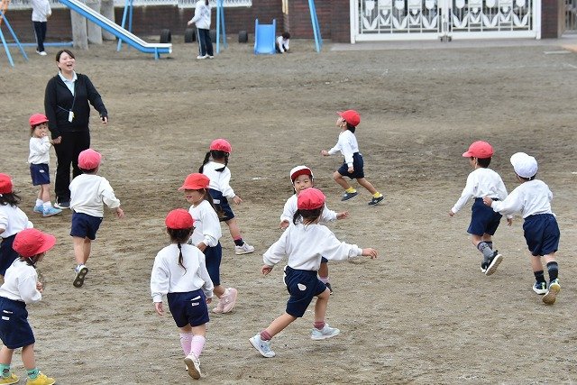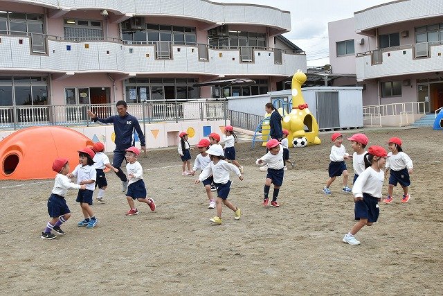 年少組 急に寒くなりましたが園庭で元気に体を動かしました