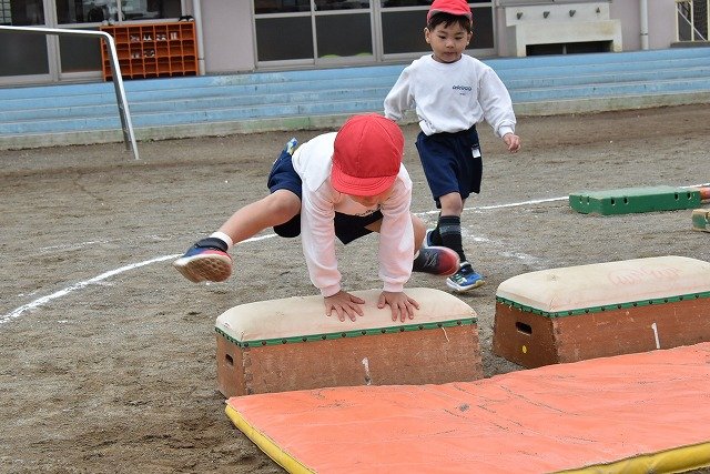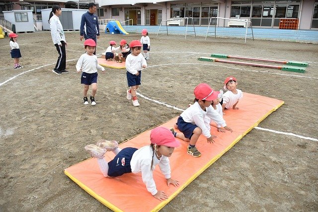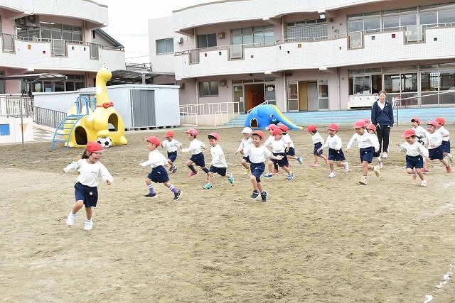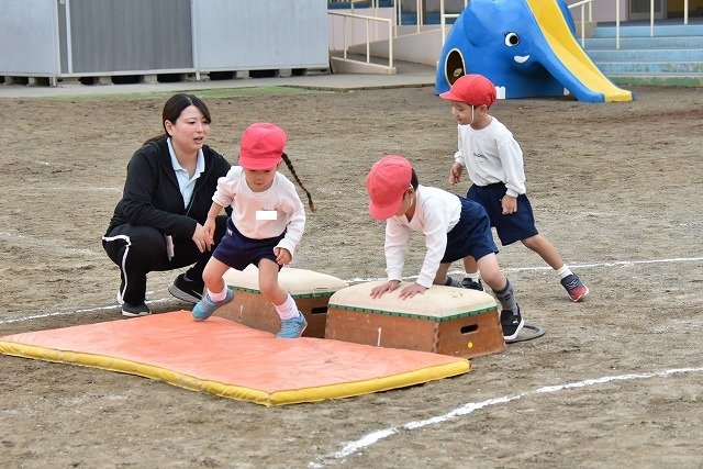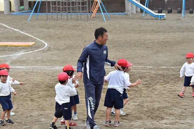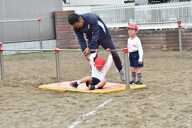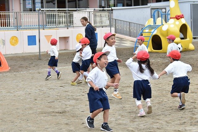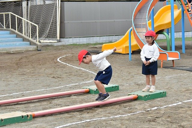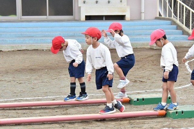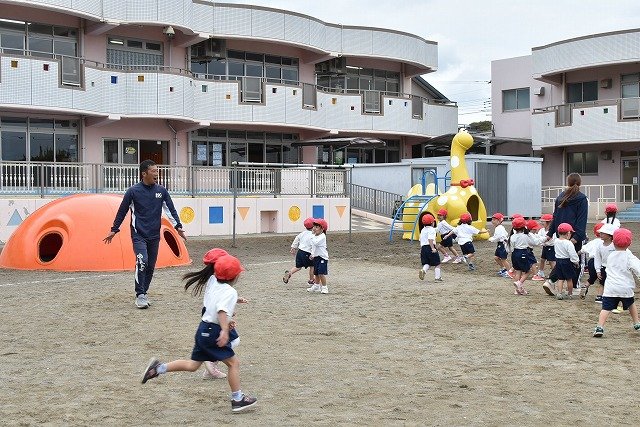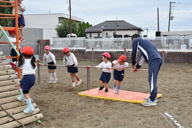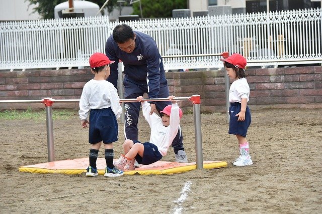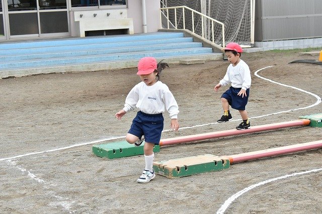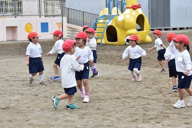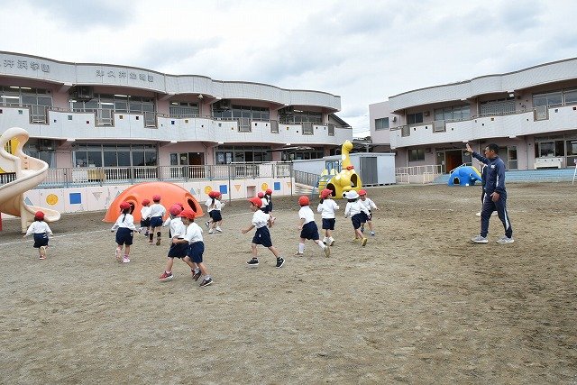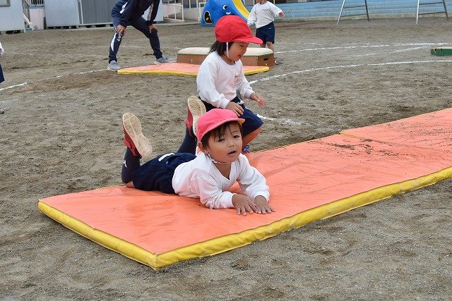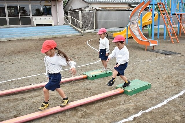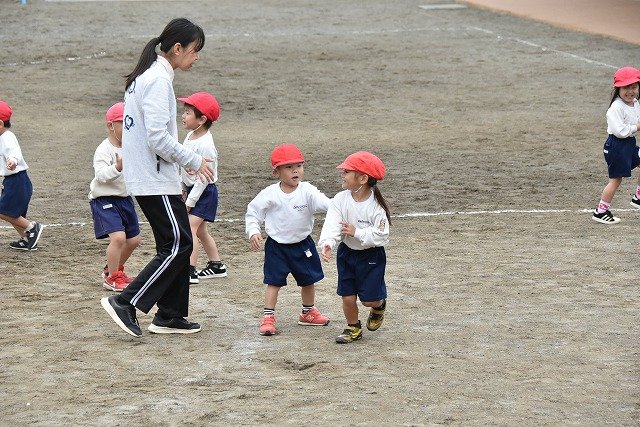年少組 急に寒くなりましたが園庭で元気に体を動かしました