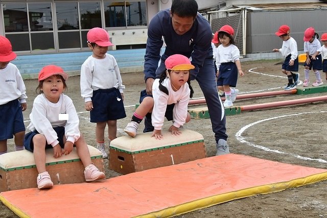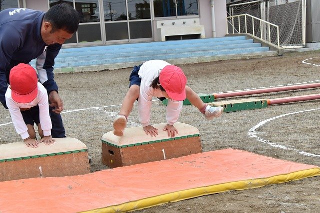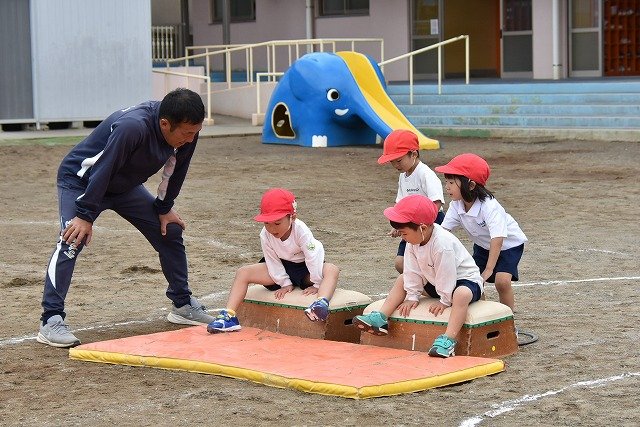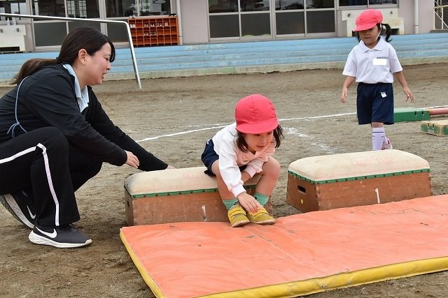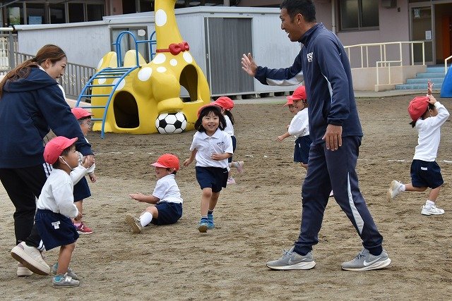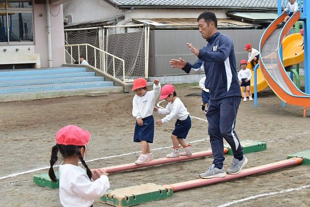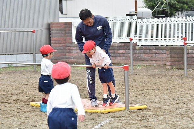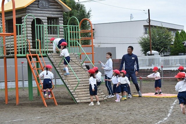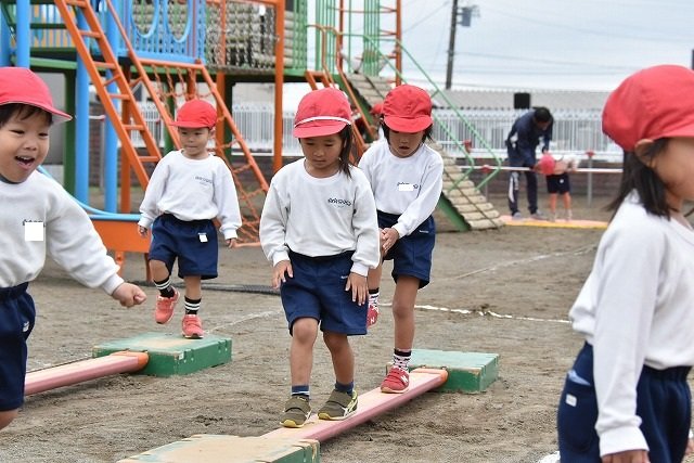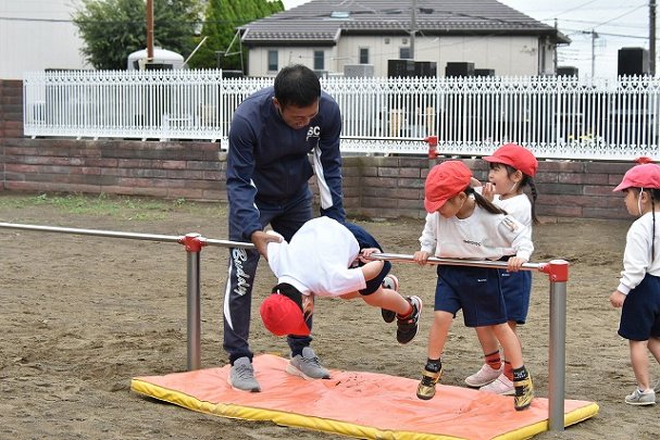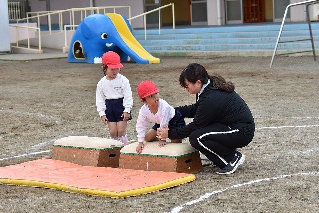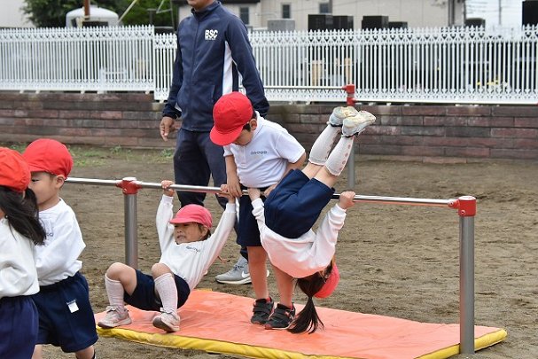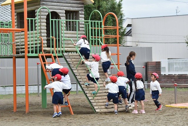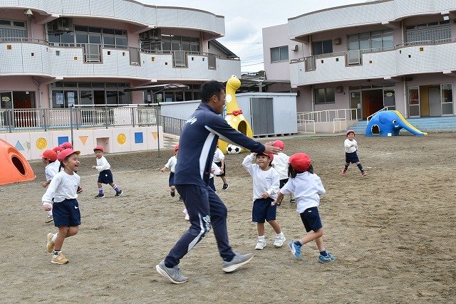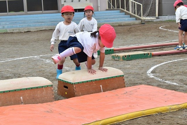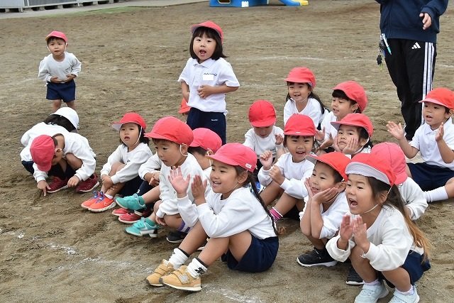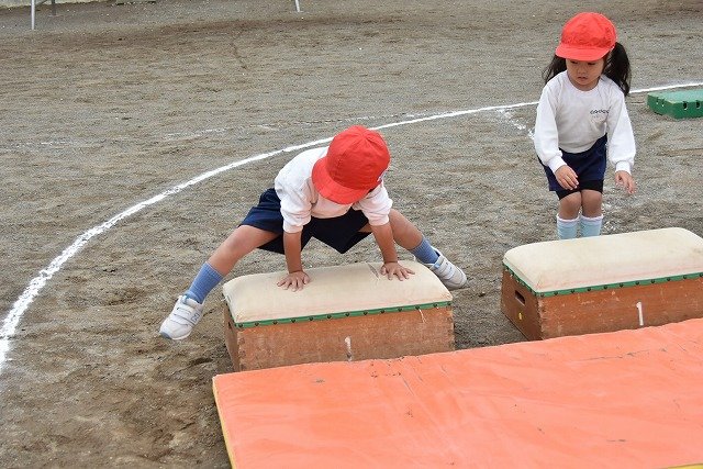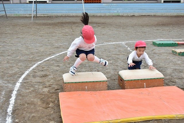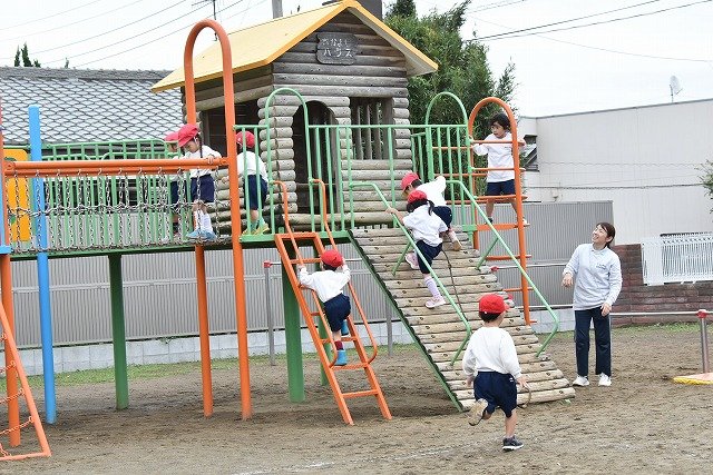 年少組 急に寒くなりましたが園庭で元気に体を動かしました