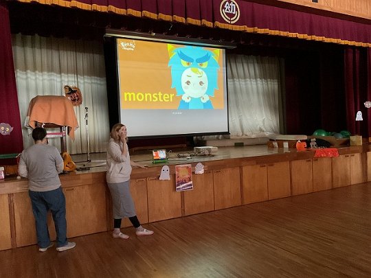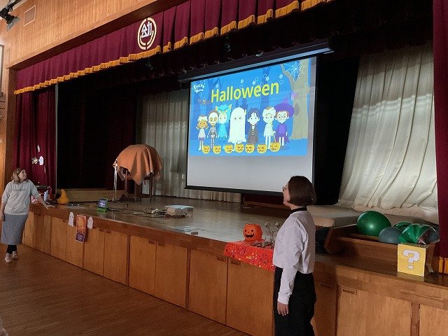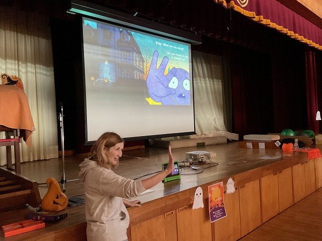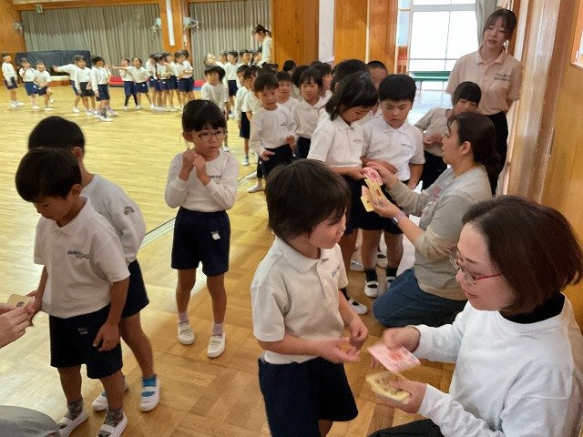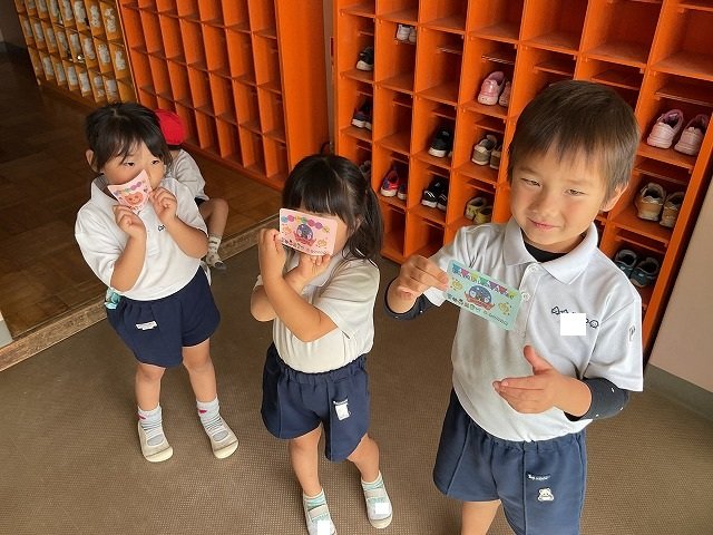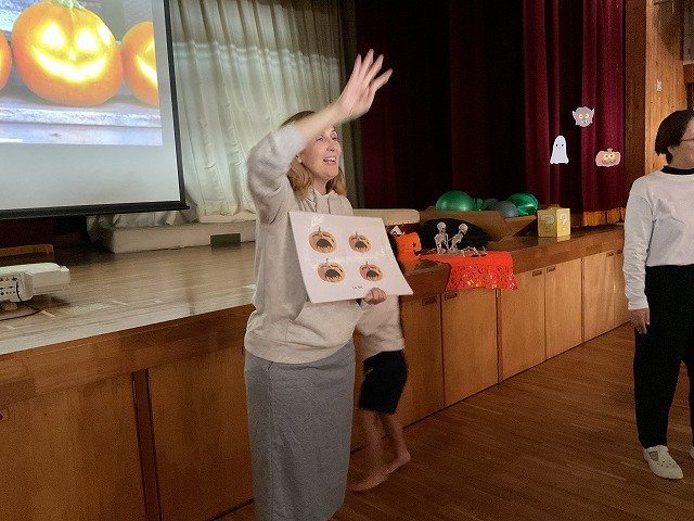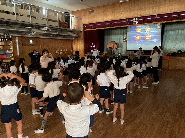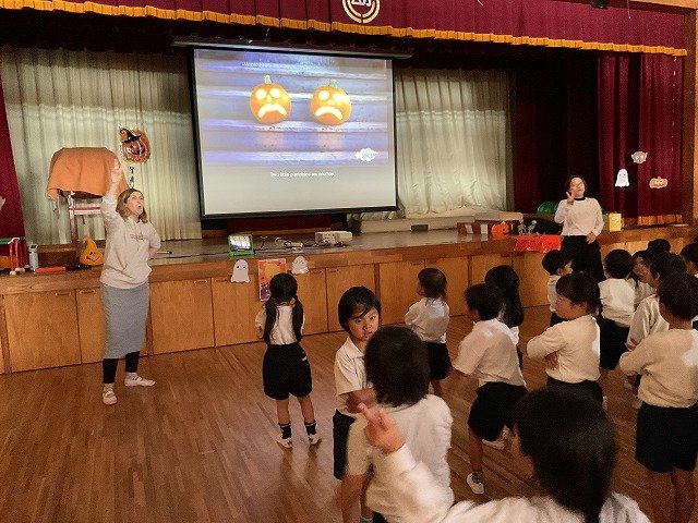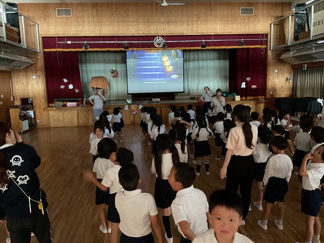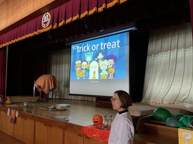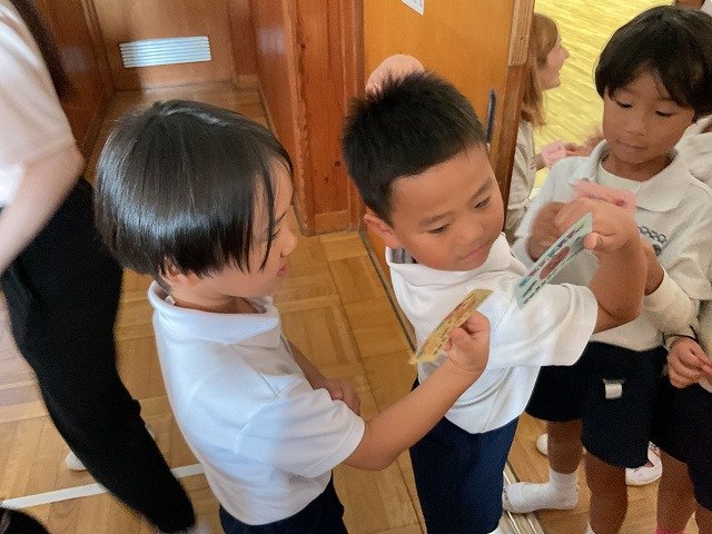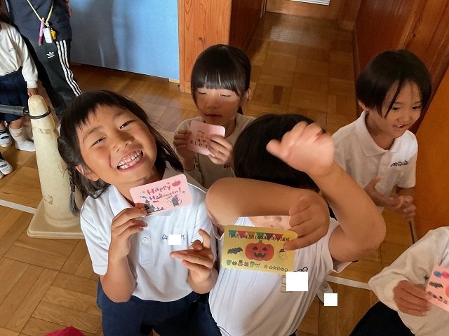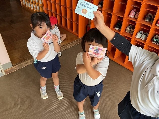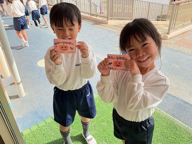 年長組 Halloweenの魔法の言葉「Trick or Treat」と言ってカードをもらいました♪