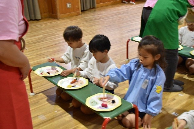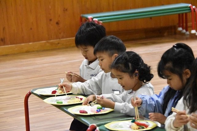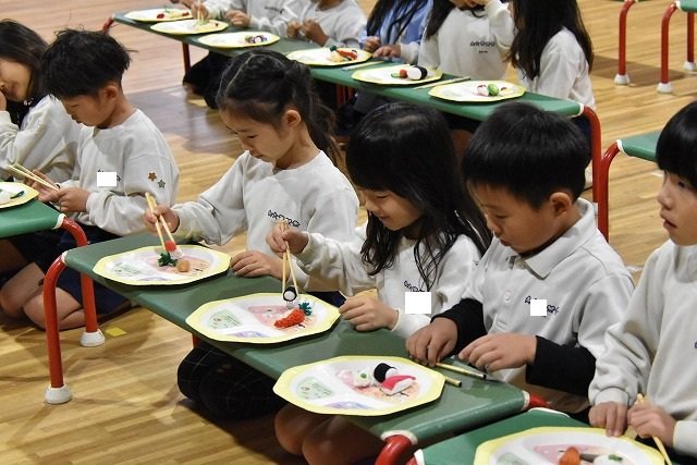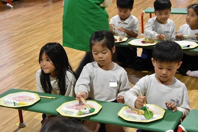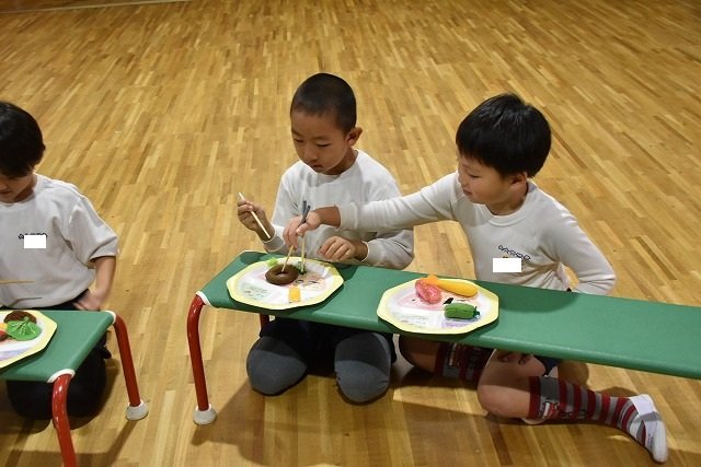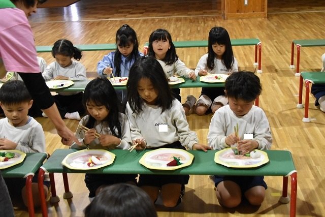年長組 横須賀市の方に来ていただき、おはしの使い方などを教えていただきました。