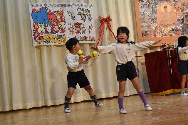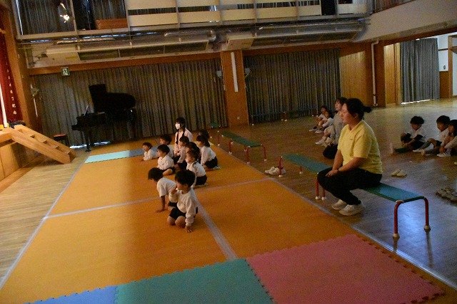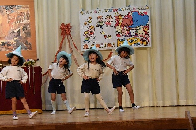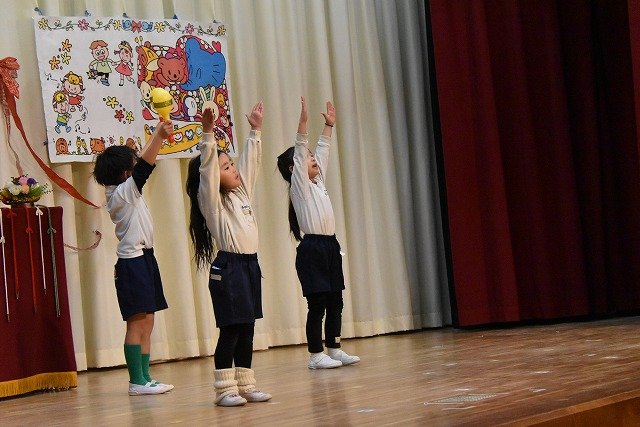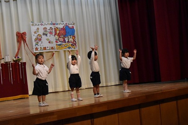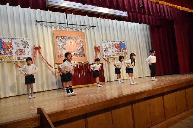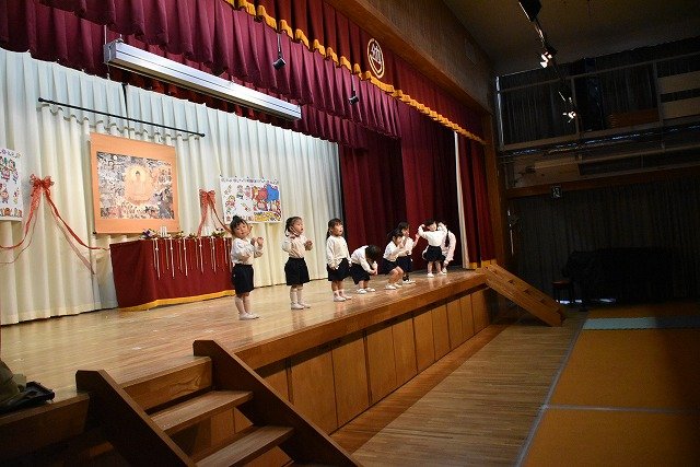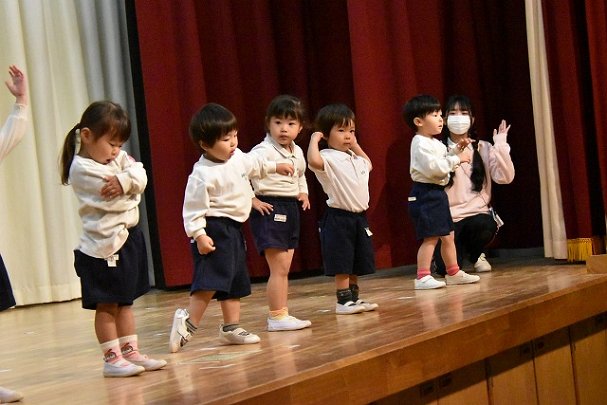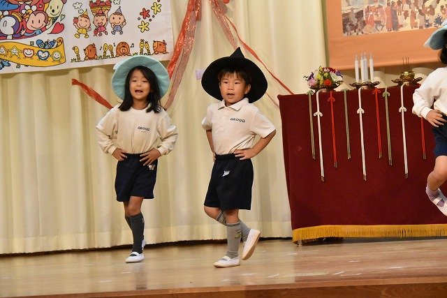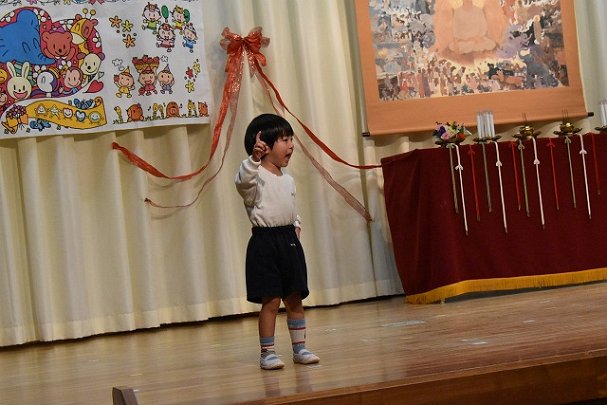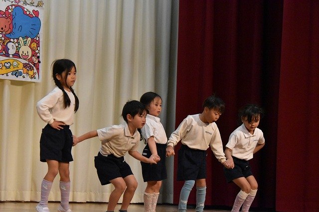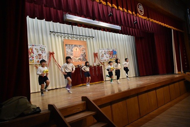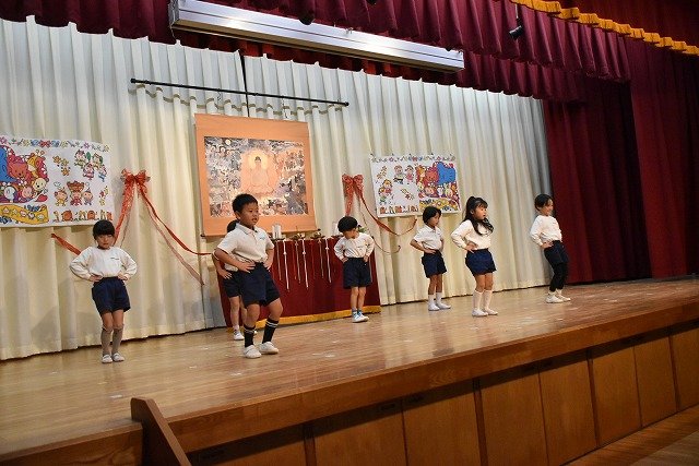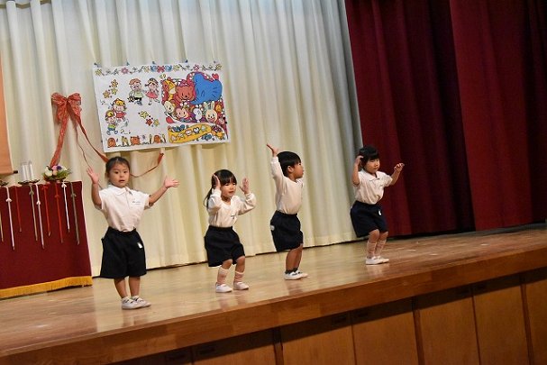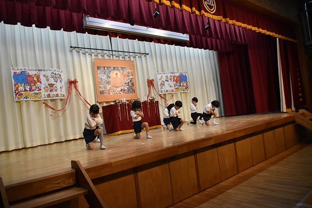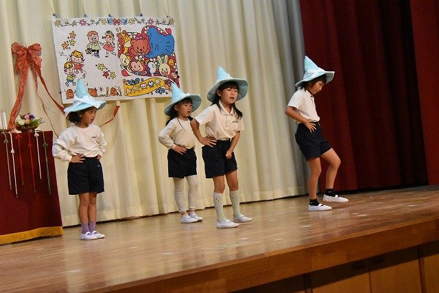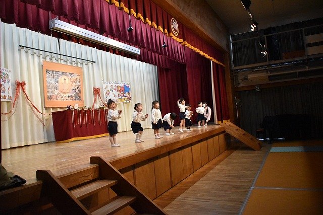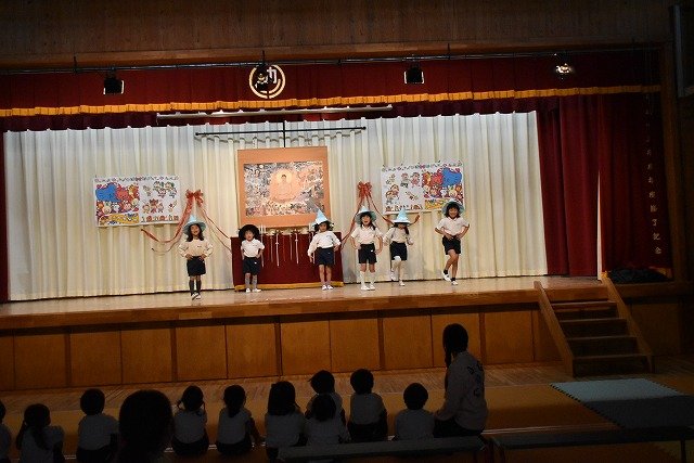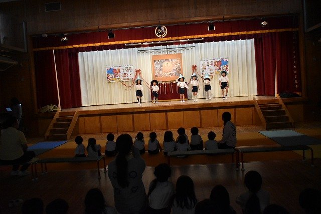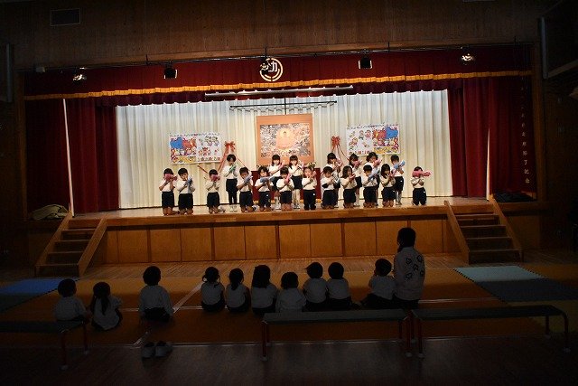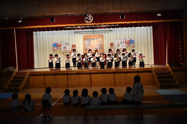 年長組 スポットライトを付けて、本番のように通して発表をしました