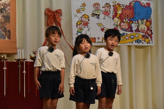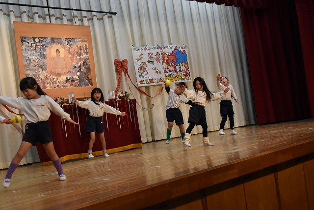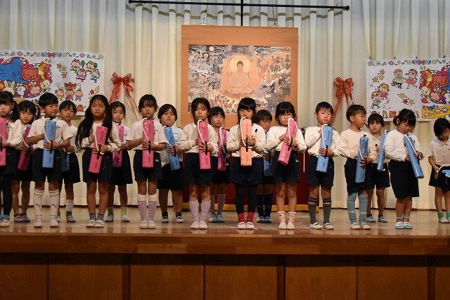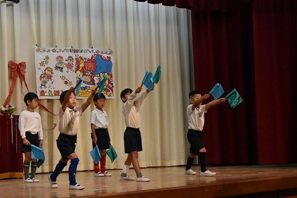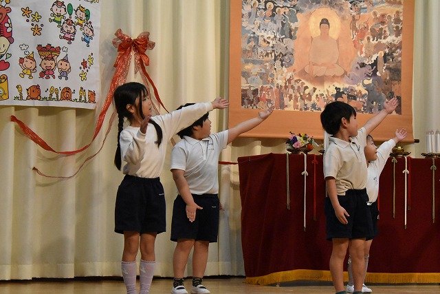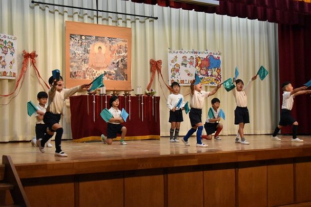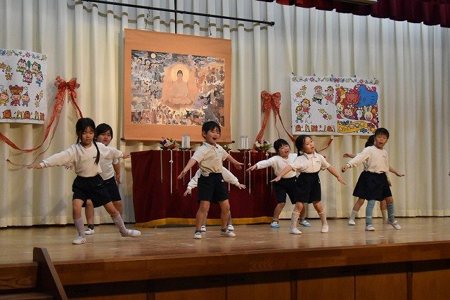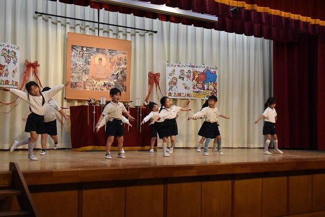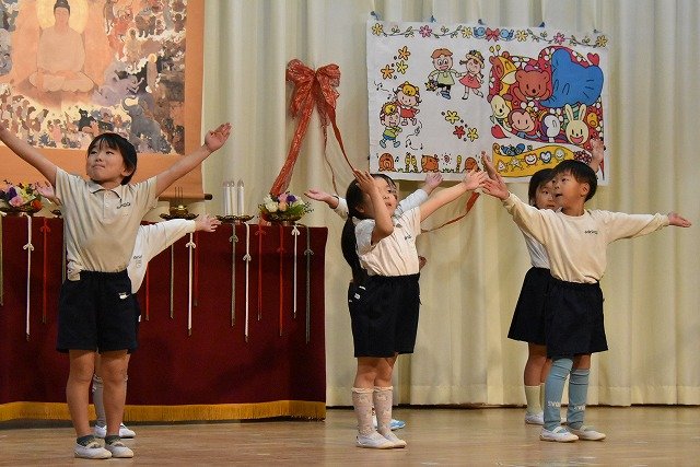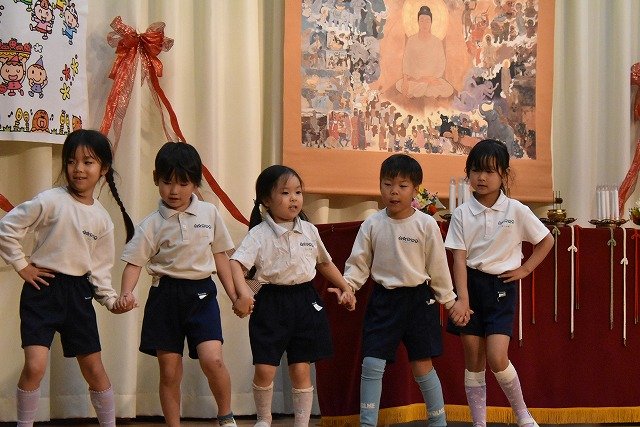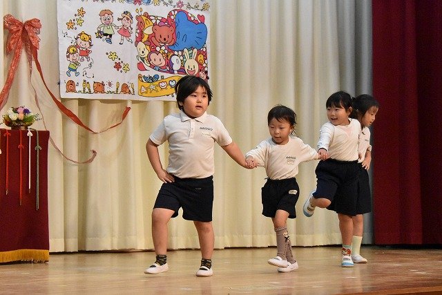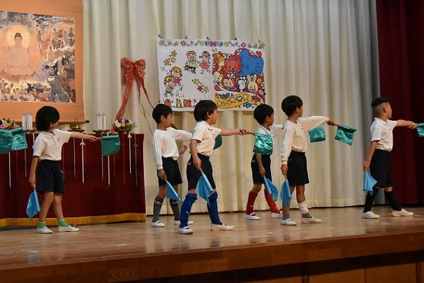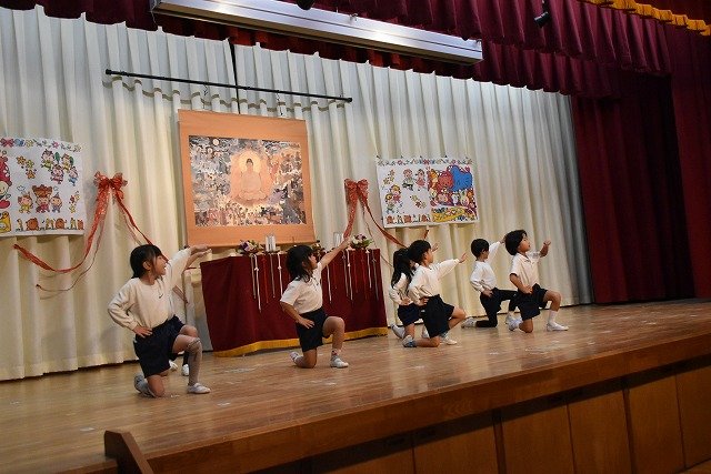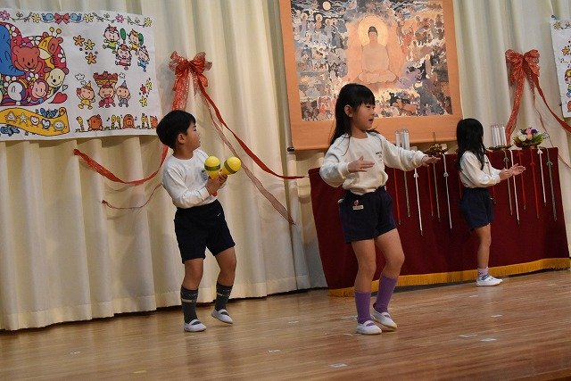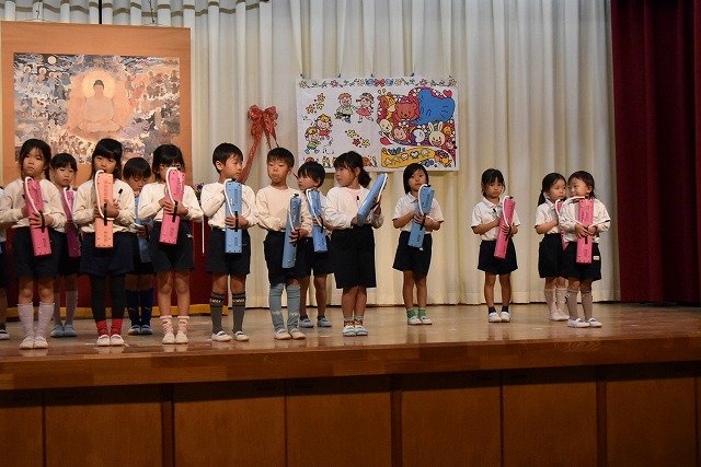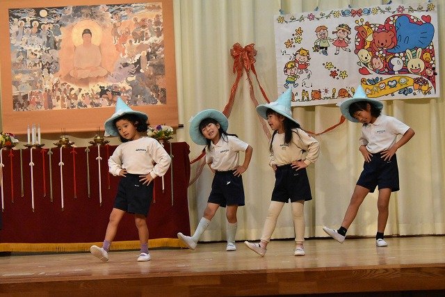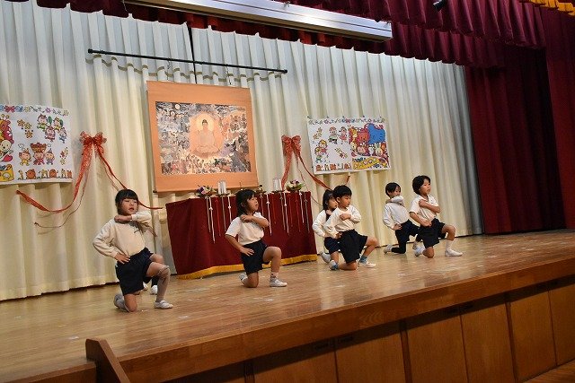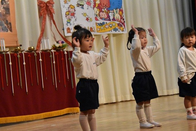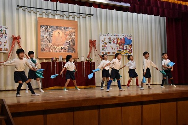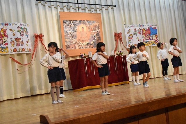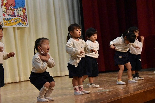 年長組 スポットライトを付けて、本番のように通して発表をしました