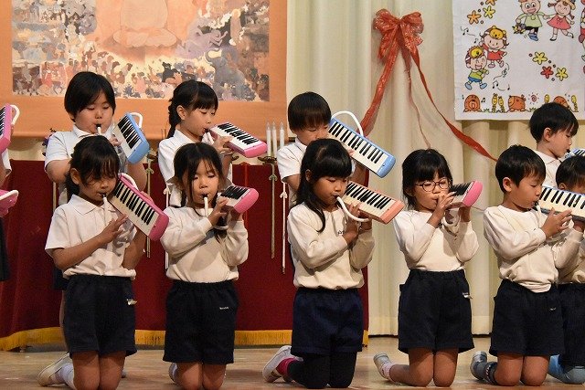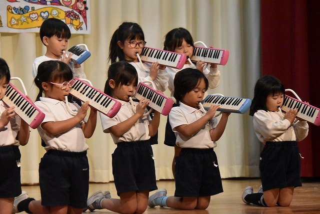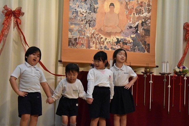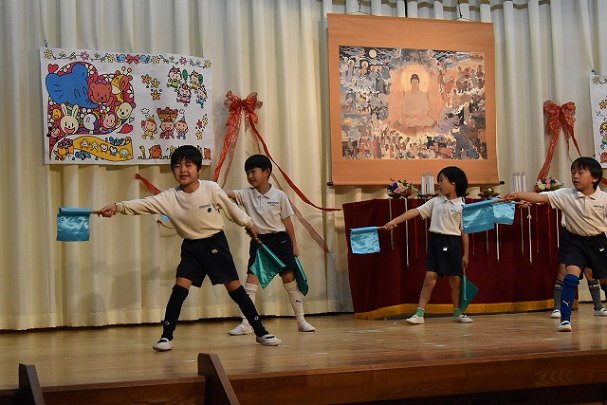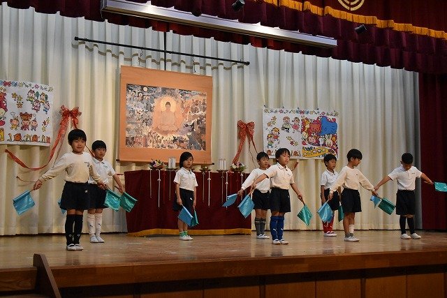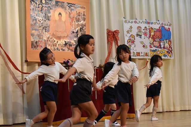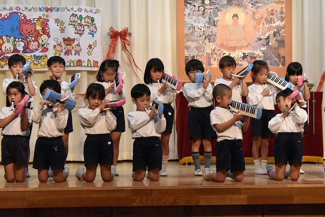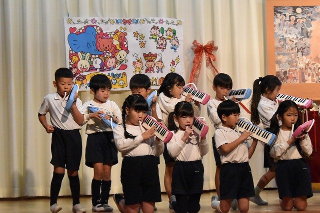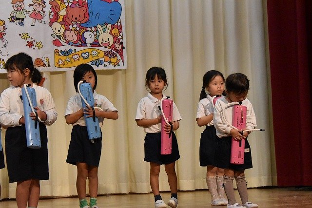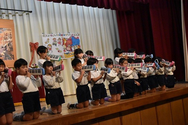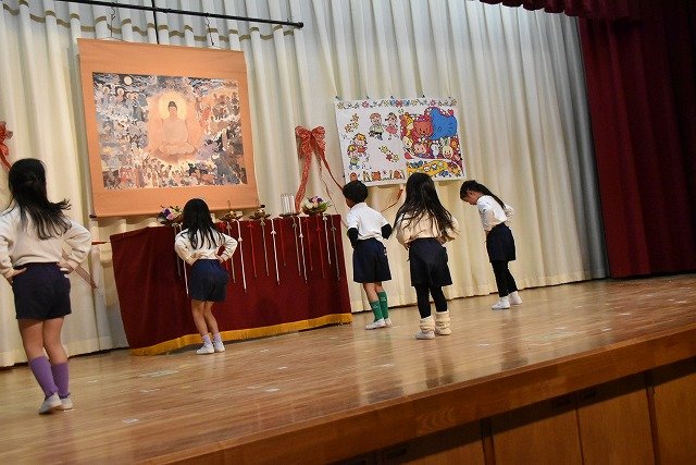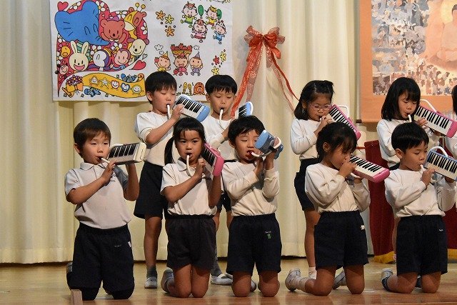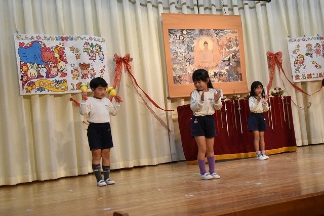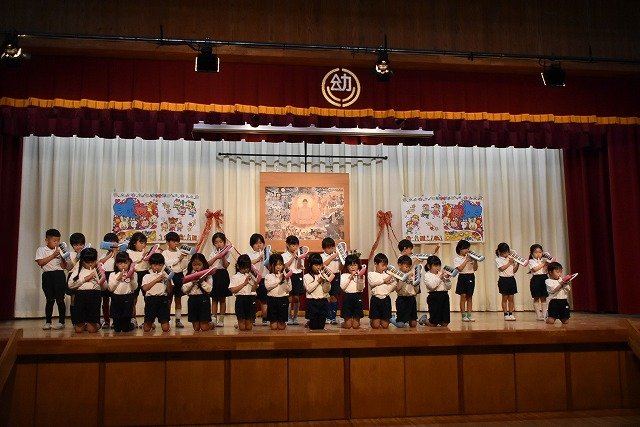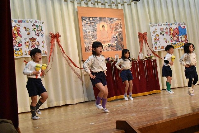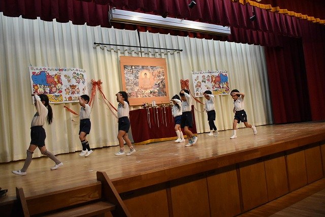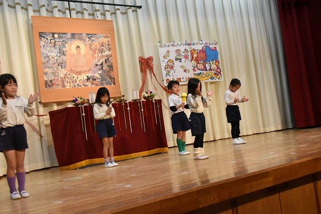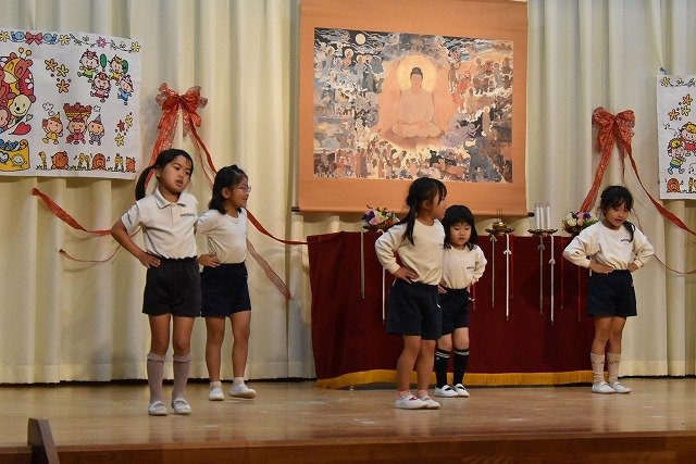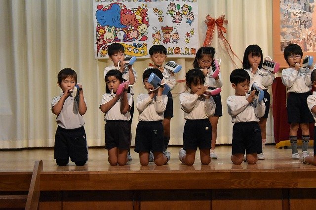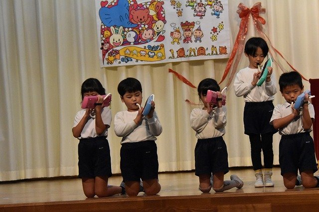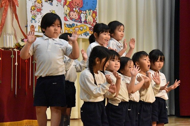 年長組 スポットライトを付けて、本番のように通して発表をしました