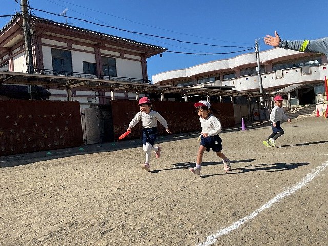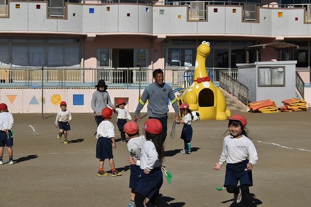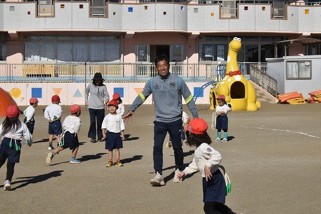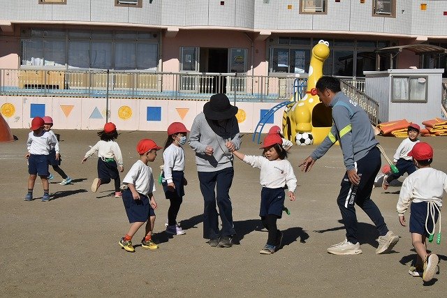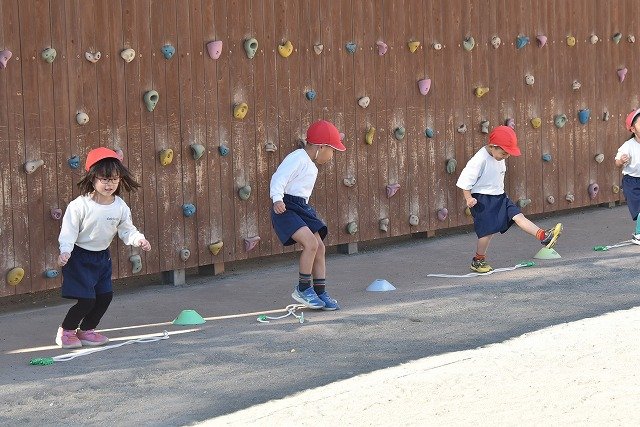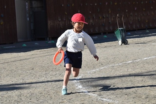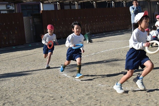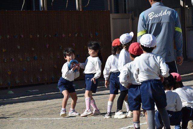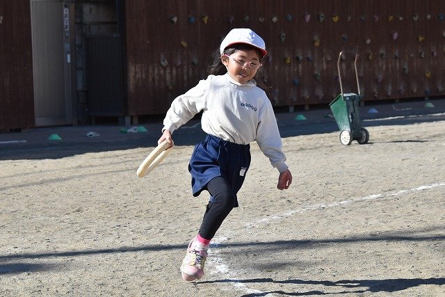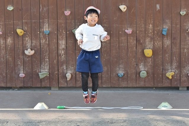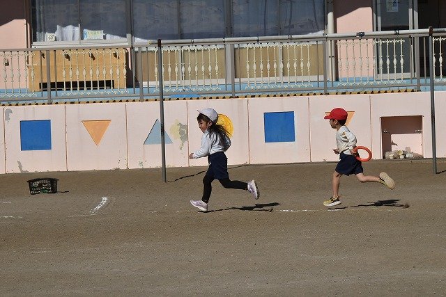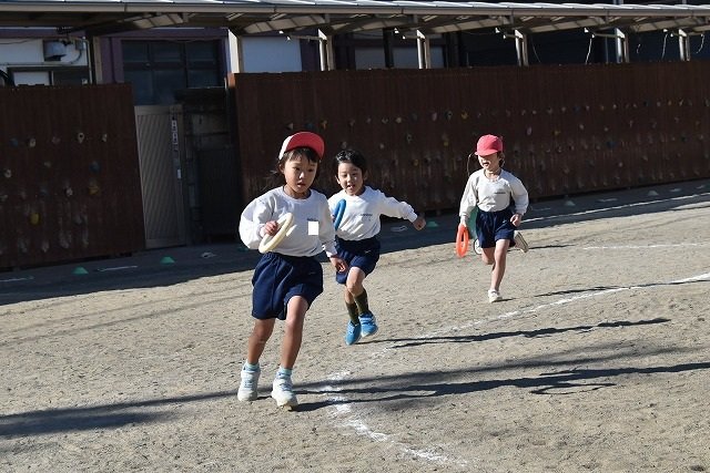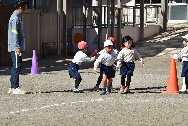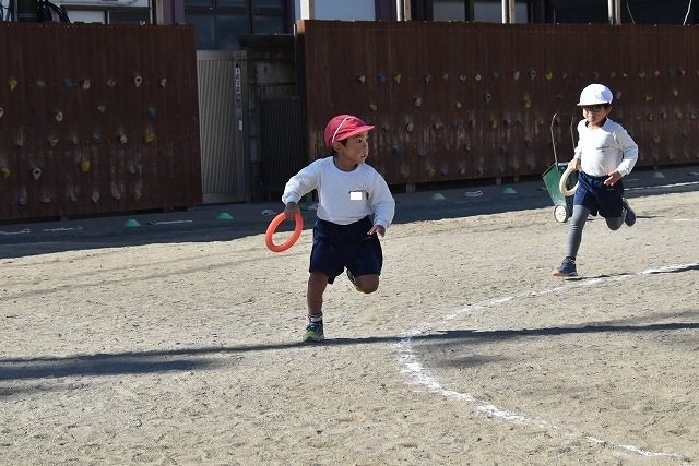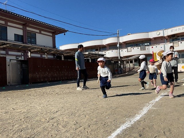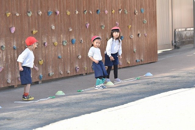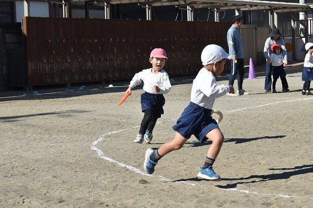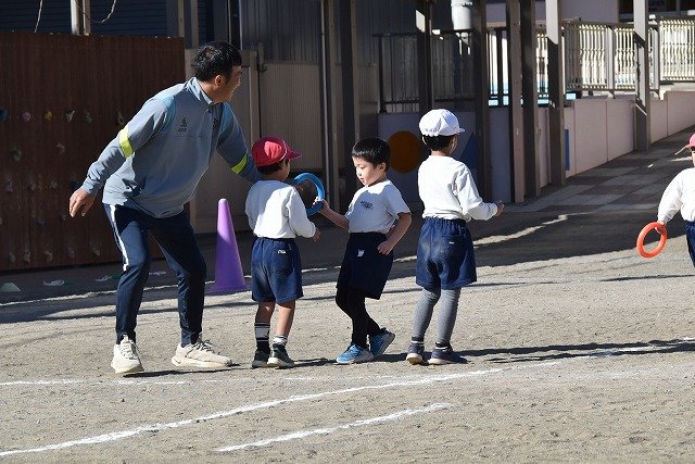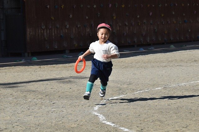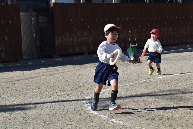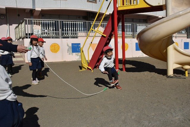 年中組 なわとびを使って体を動かしました。最後にリレーをしました。