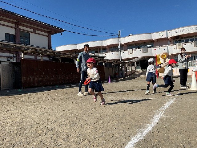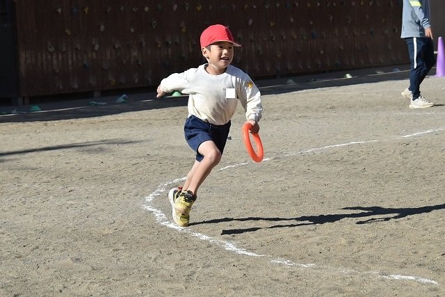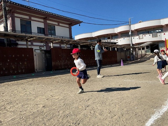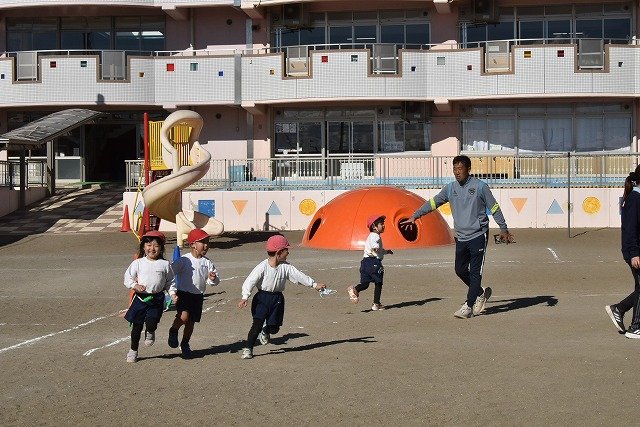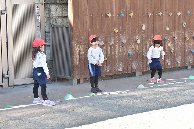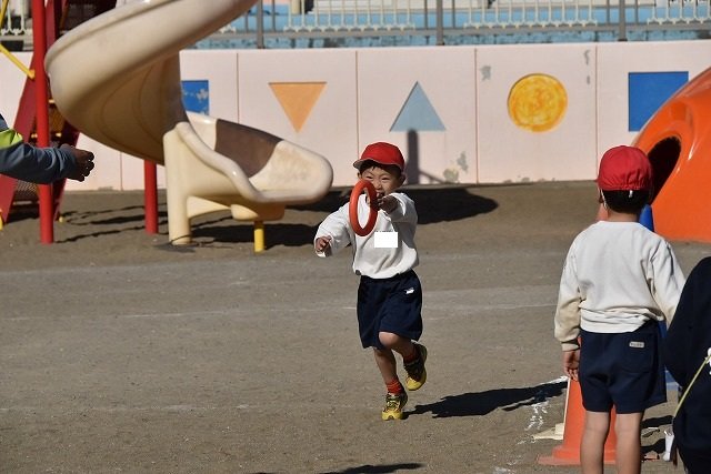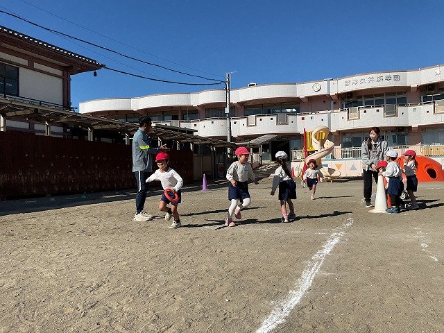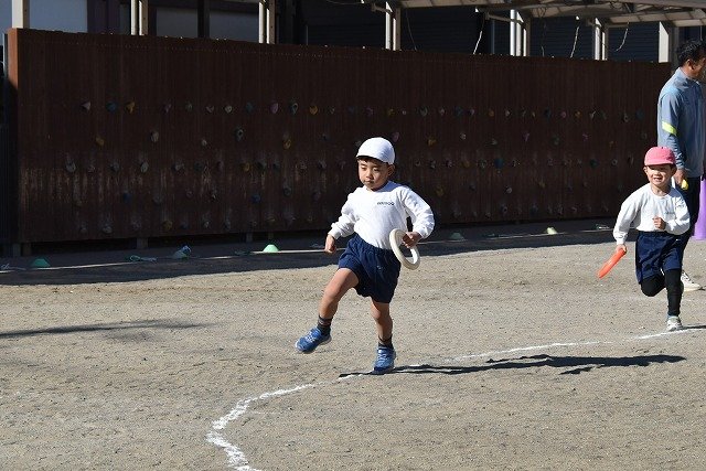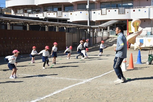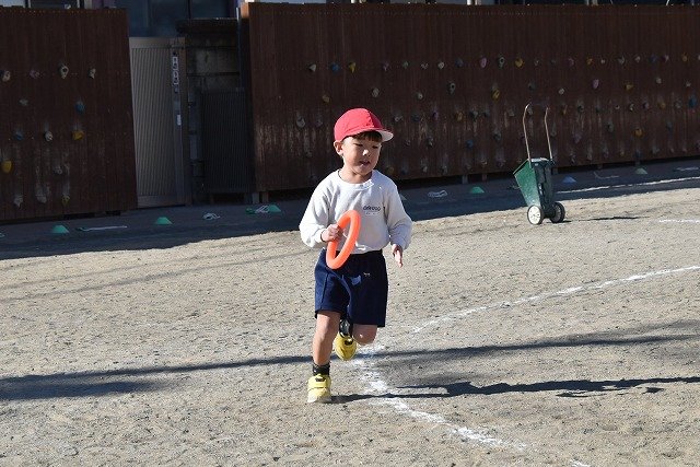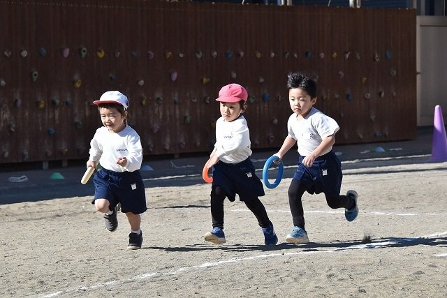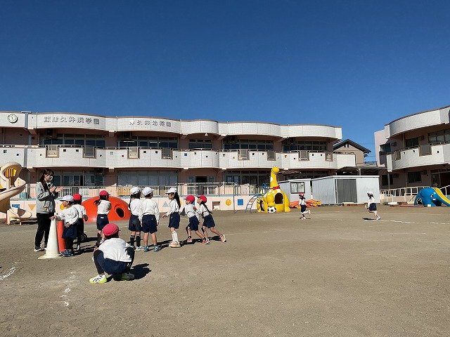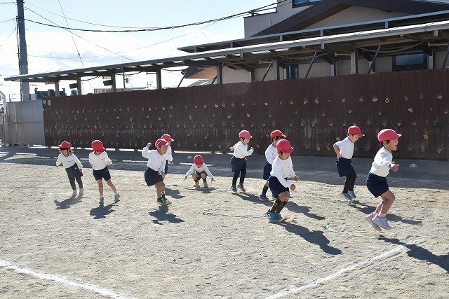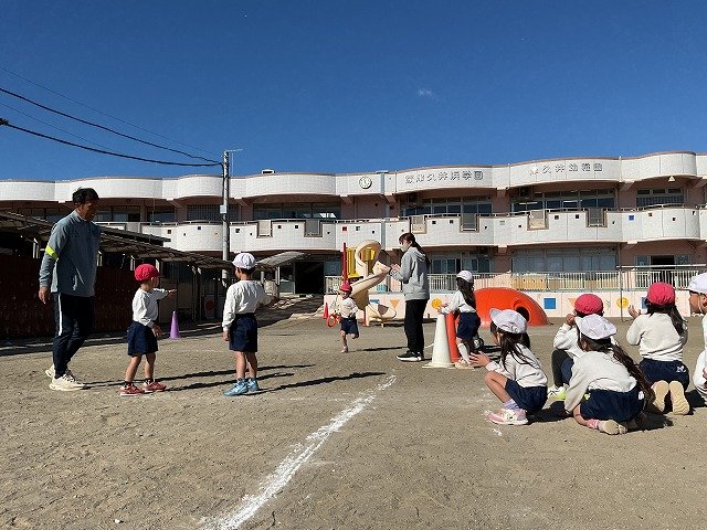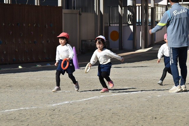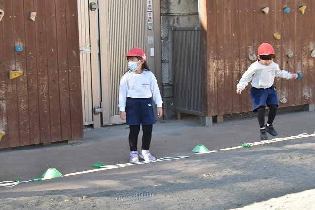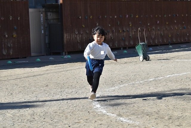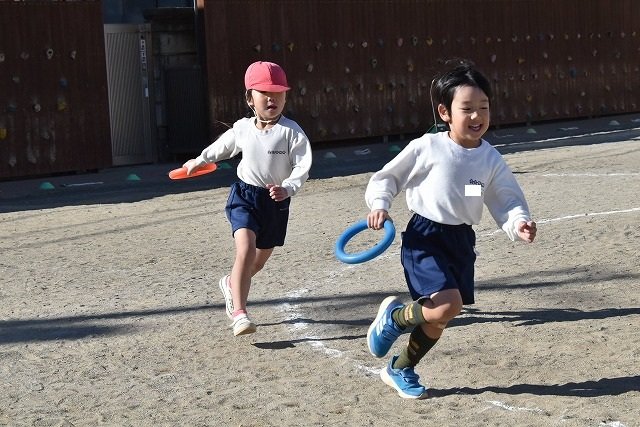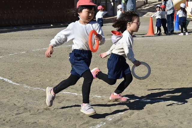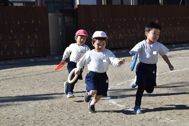 年中組 なわとびを使って体を動かしました。最後にリレーをしました。