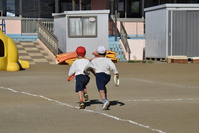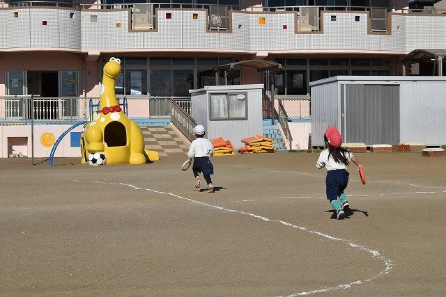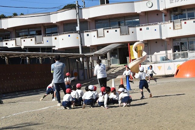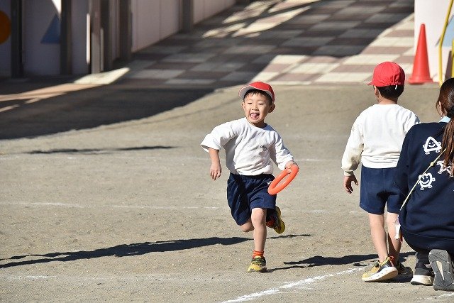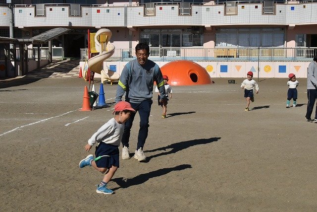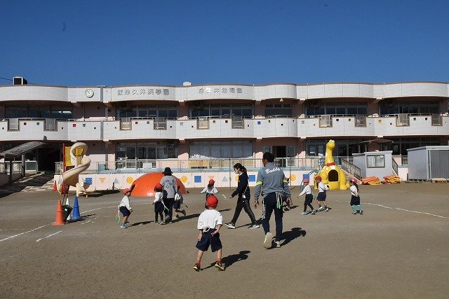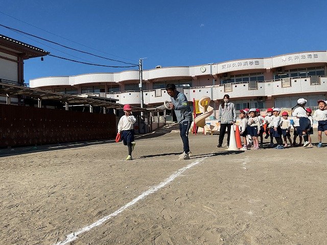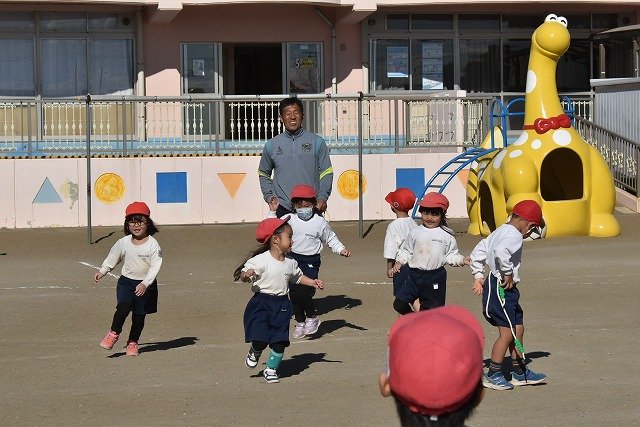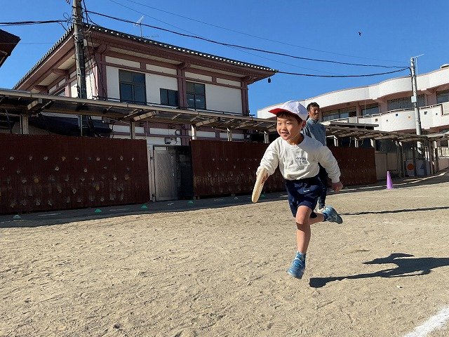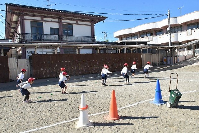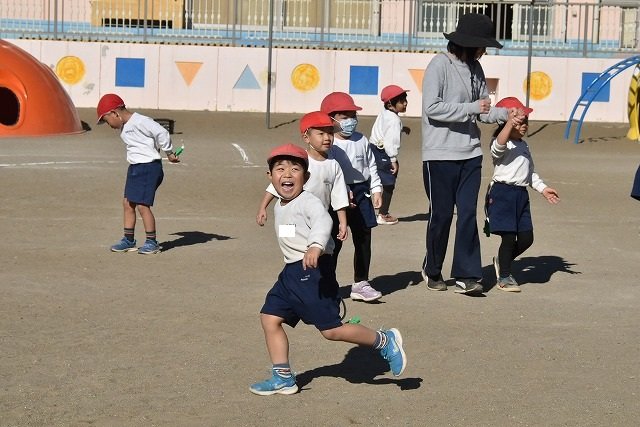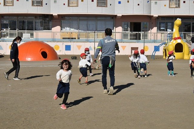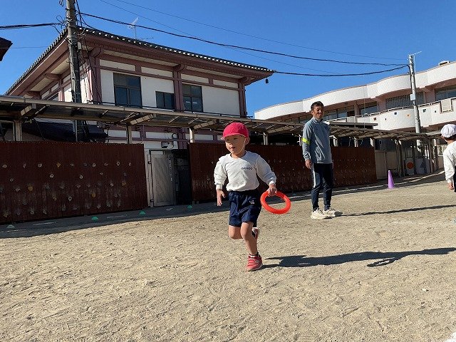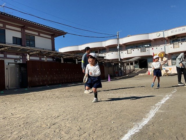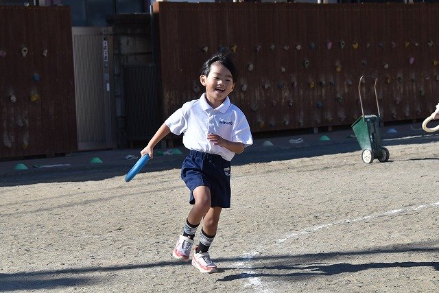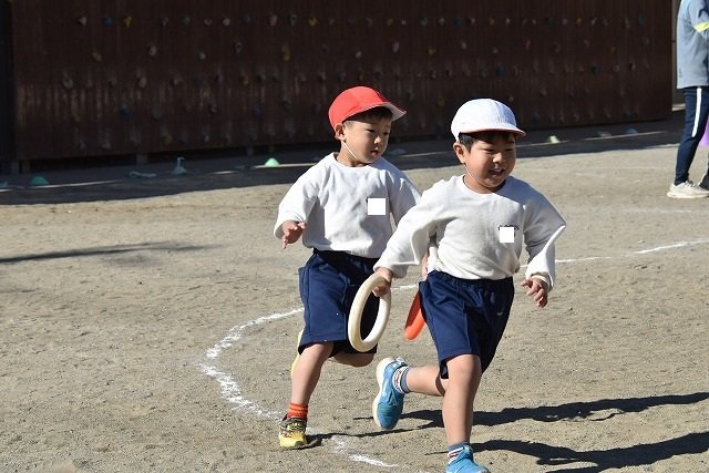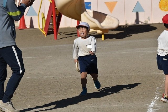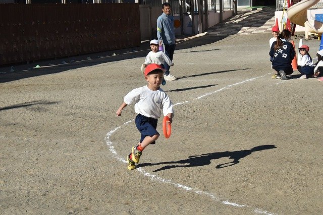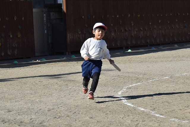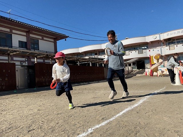 年中組 なわとびを使って体を動かしました。最後にリレーをしました。