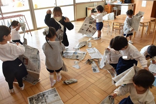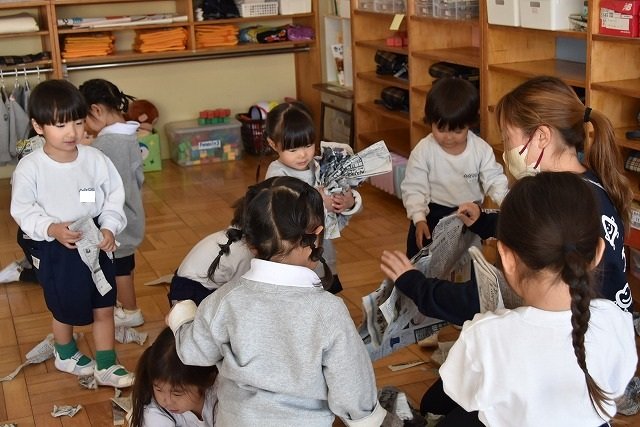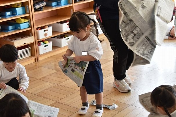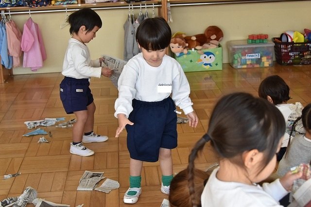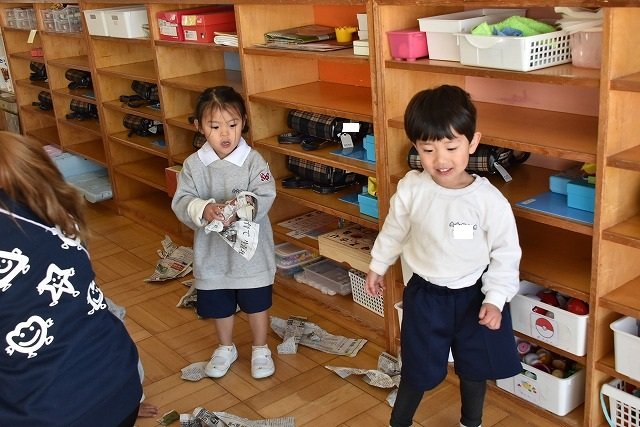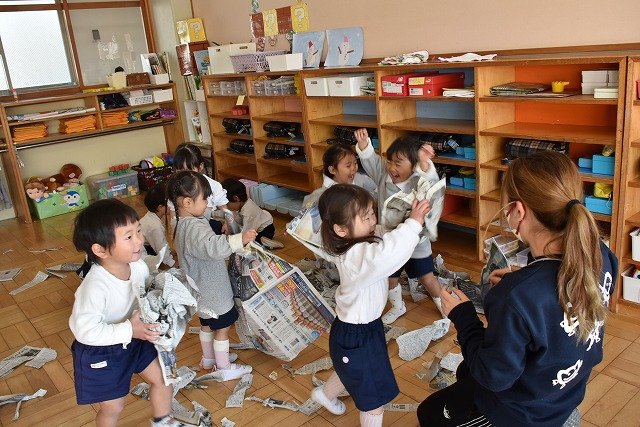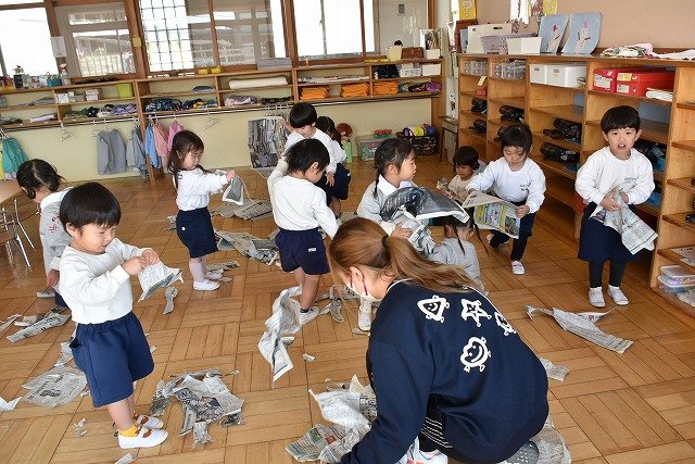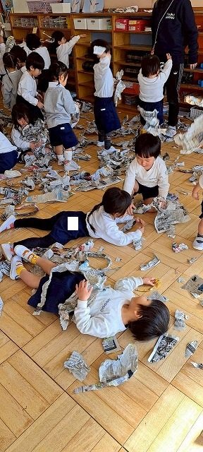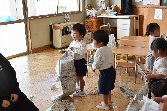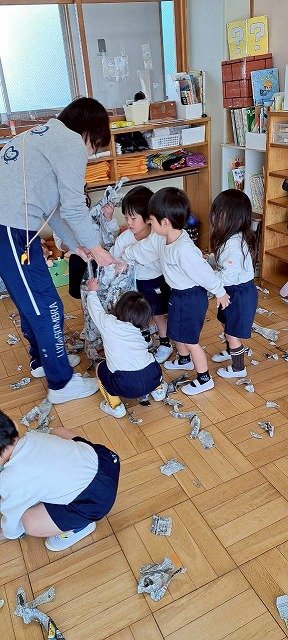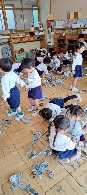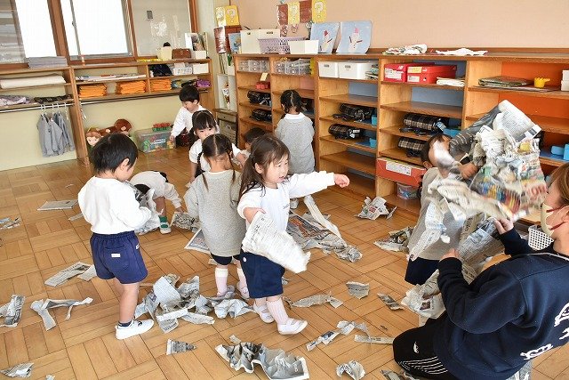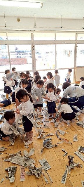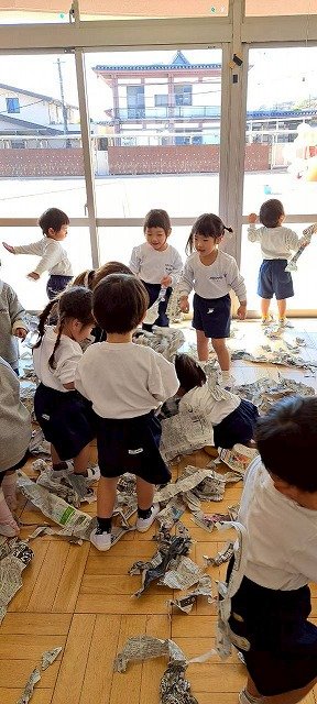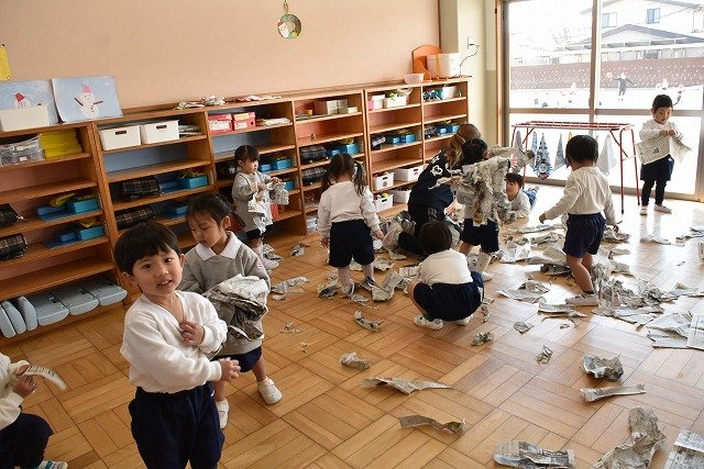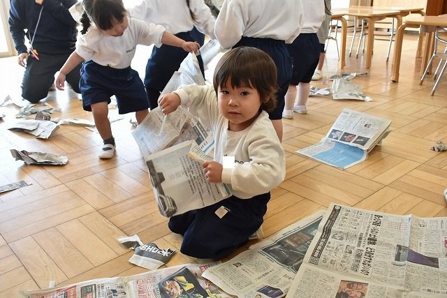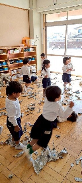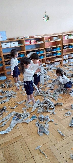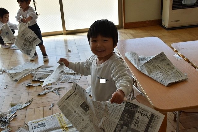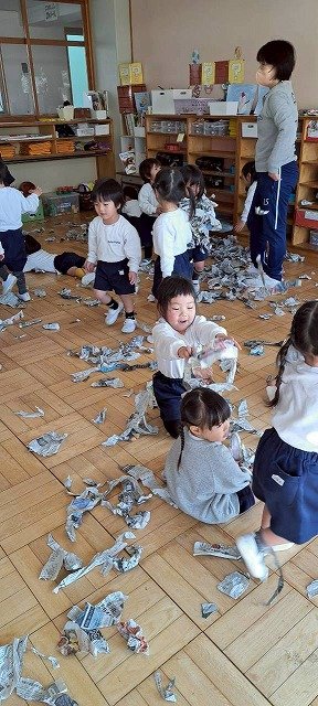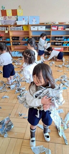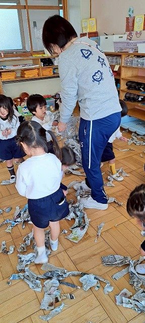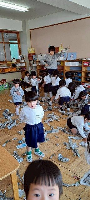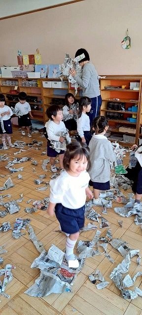 Penguin組 新聞紙をちぎって遊びました。とても楽しそうでした♪