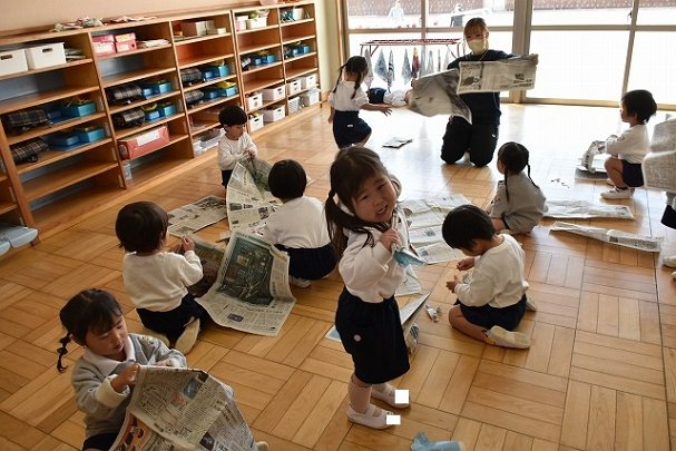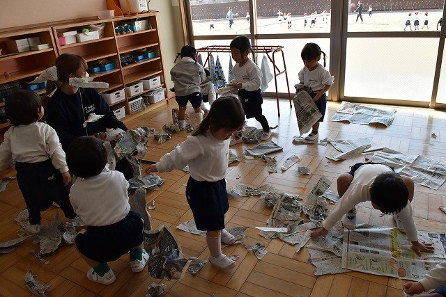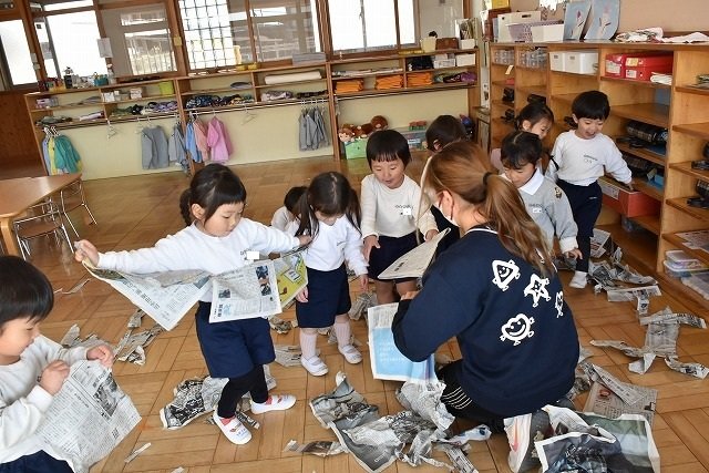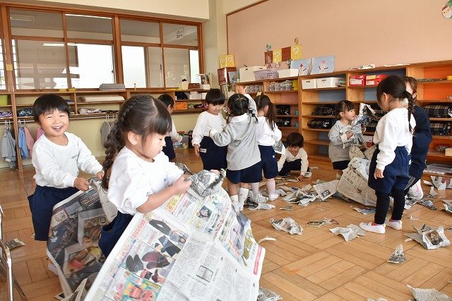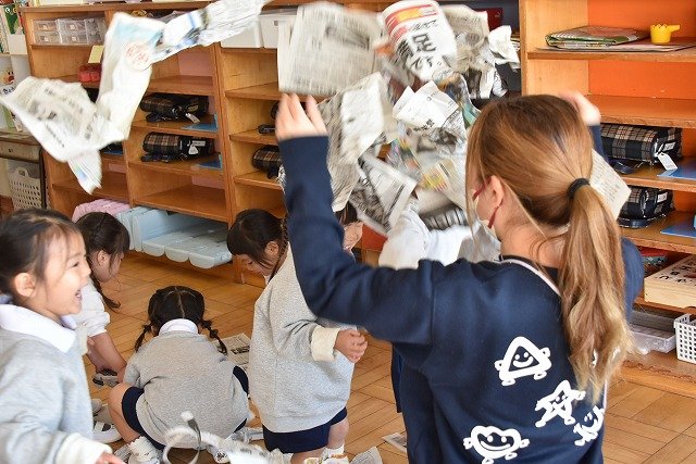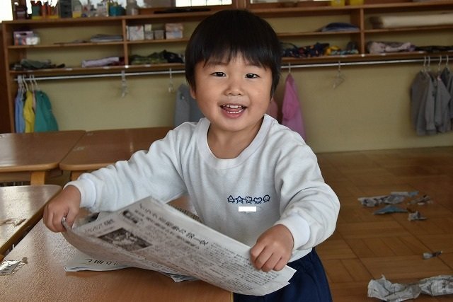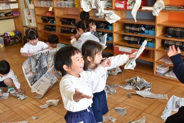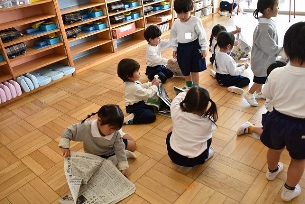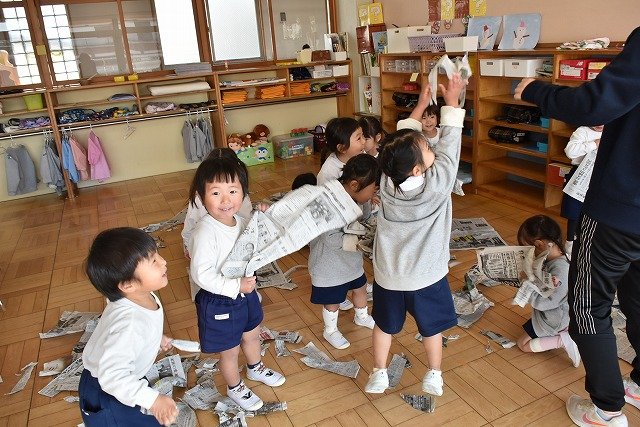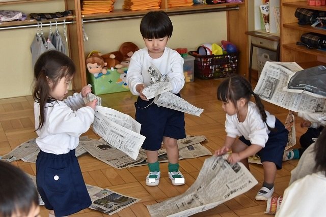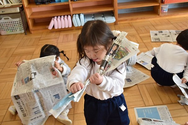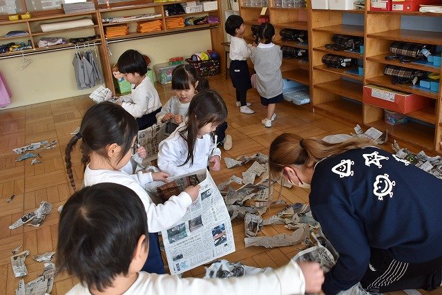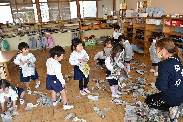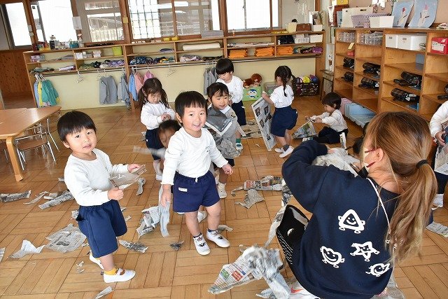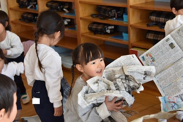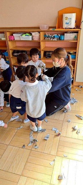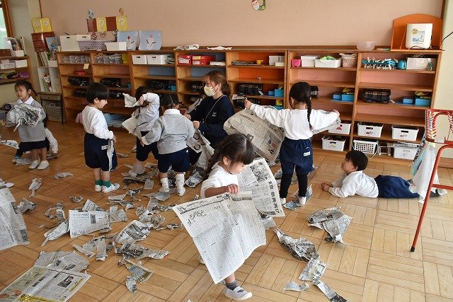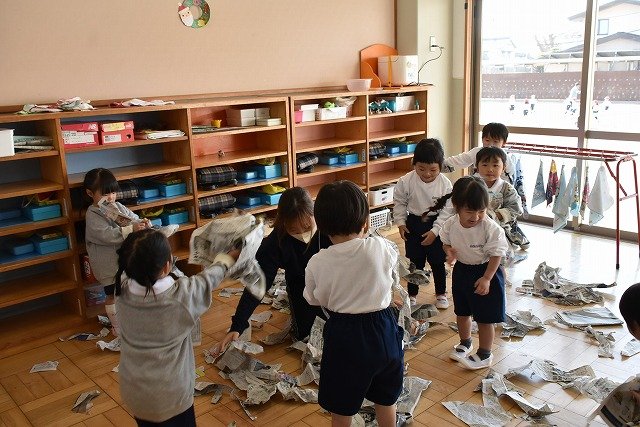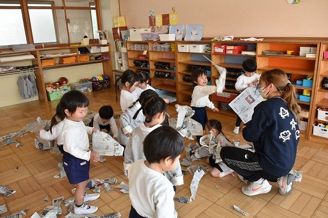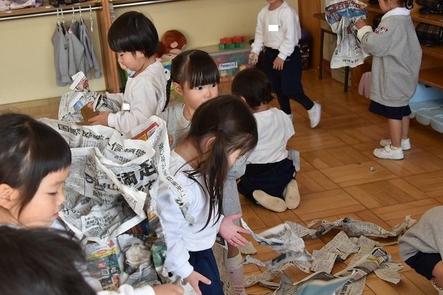 Penguin組 新聞紙をちぎって遊びました。とても楽しそうでした♪
