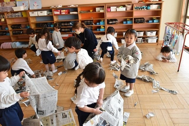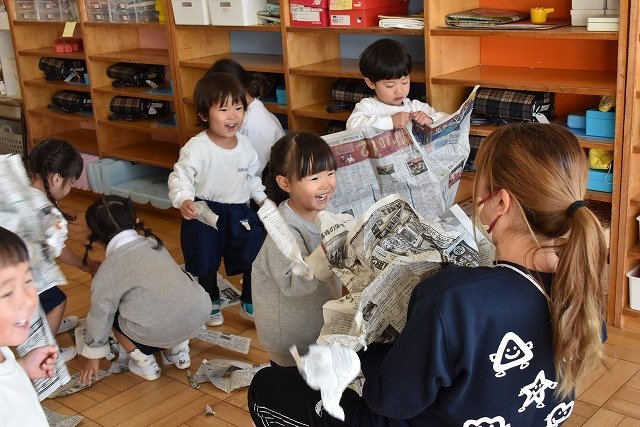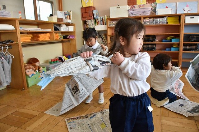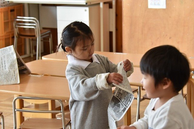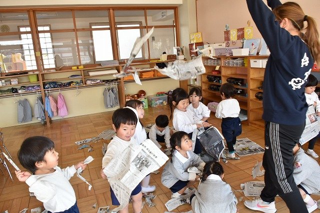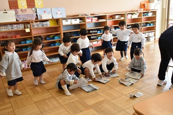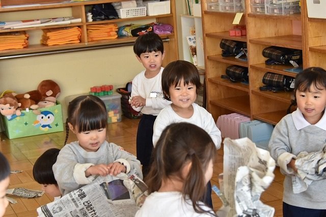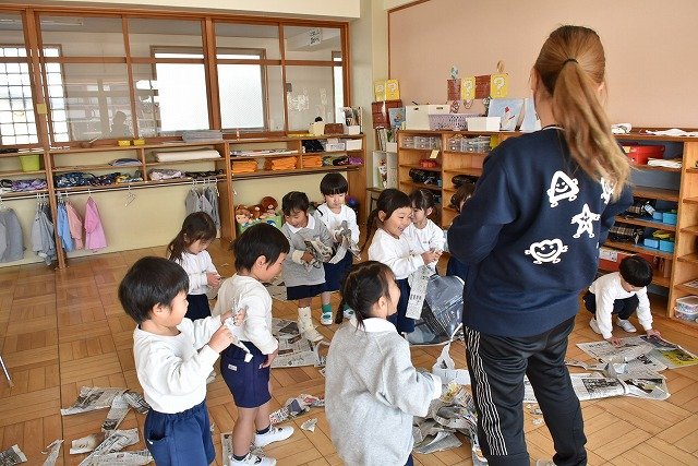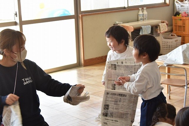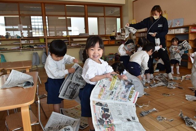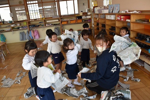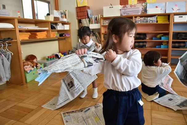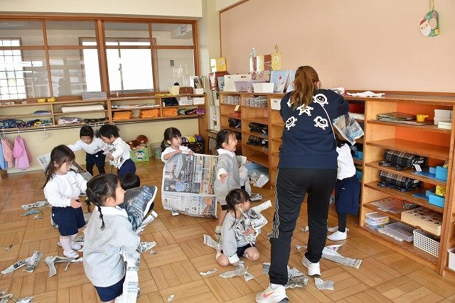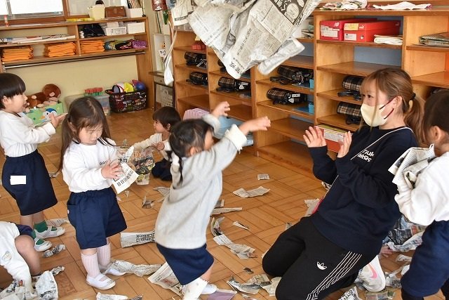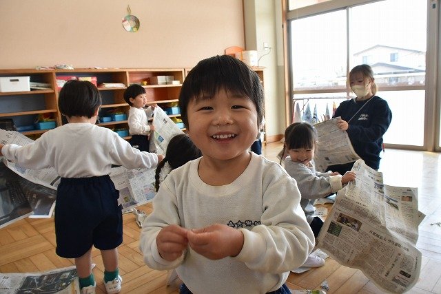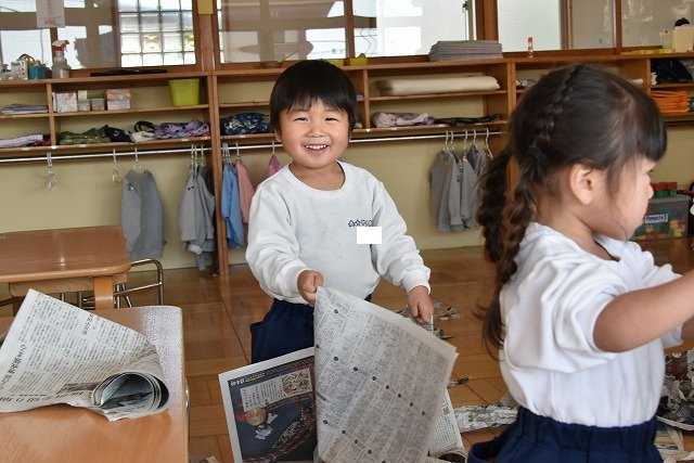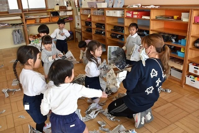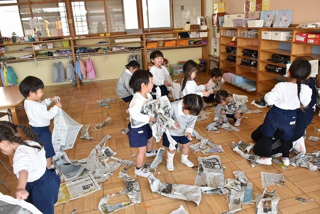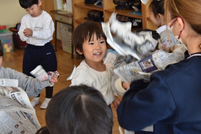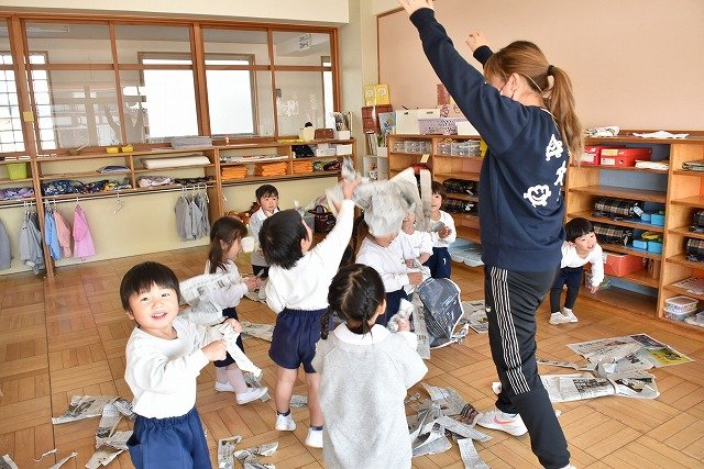 Penguin組 新聞紙をちぎって遊びました。とても楽しそうでした♪