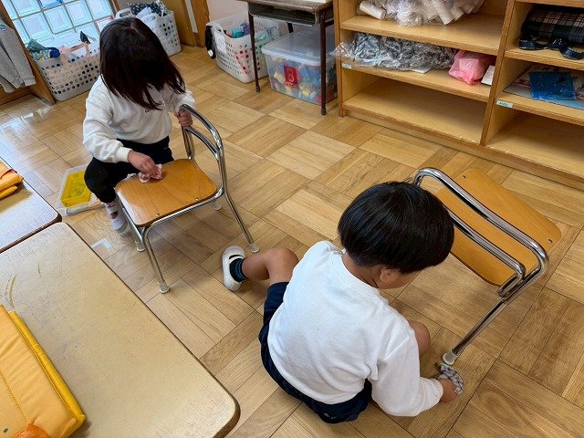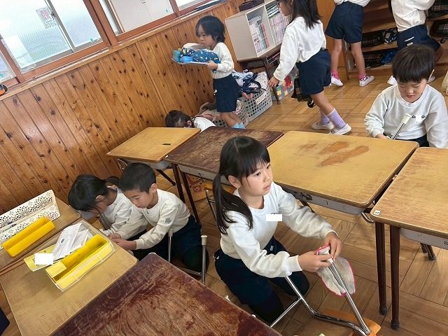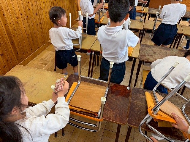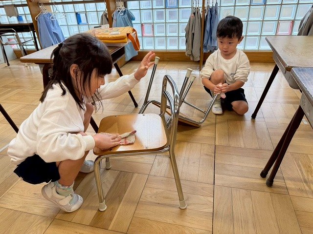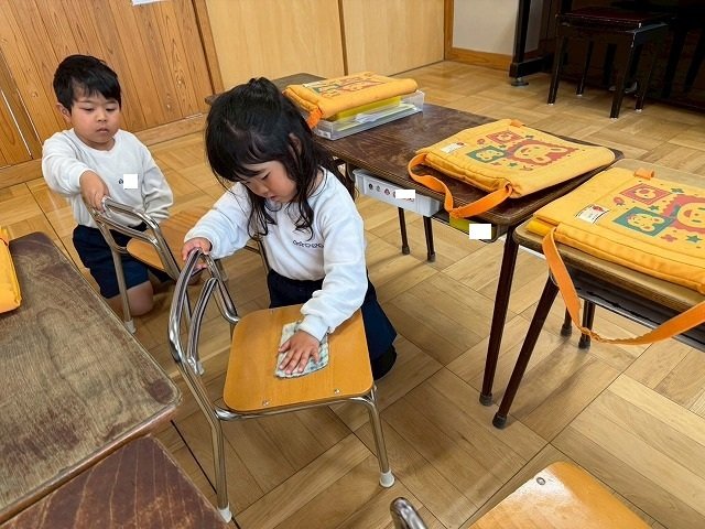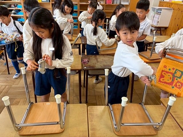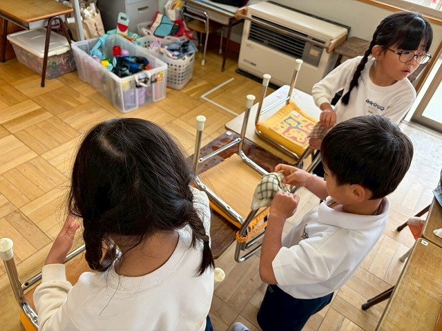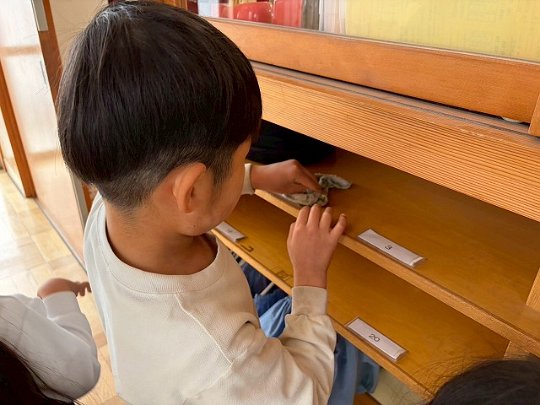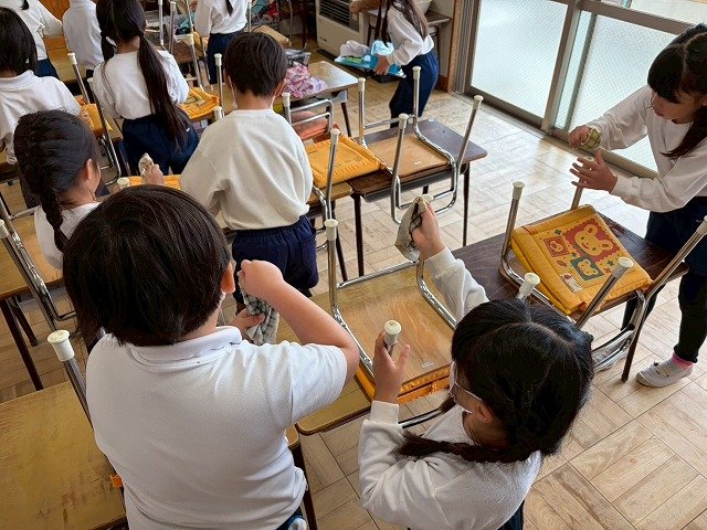 毎日使用する下駄箱や椅子、棚などを掃除しました。 3学期も気持ち良くすごせます。