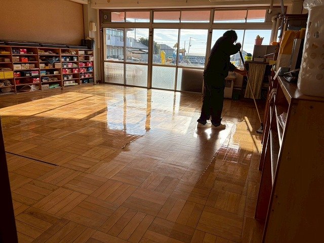 床をワックスがけしました