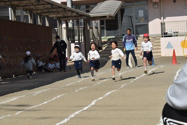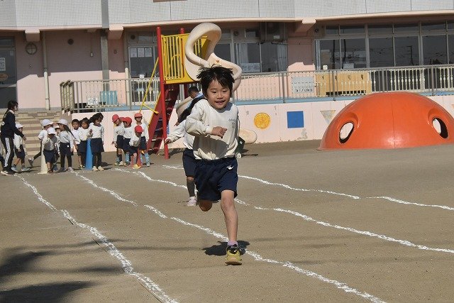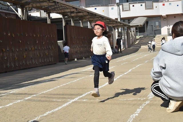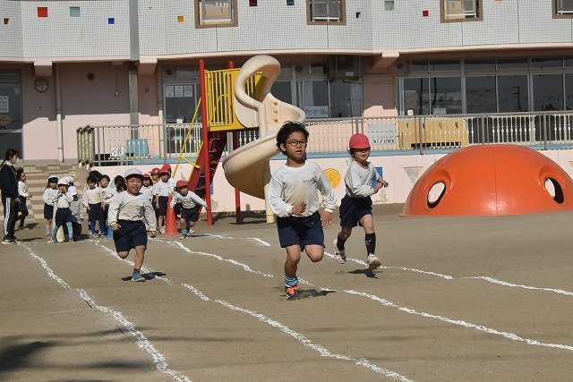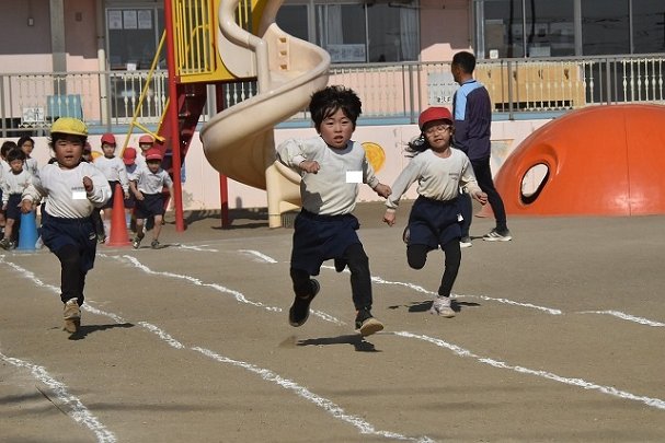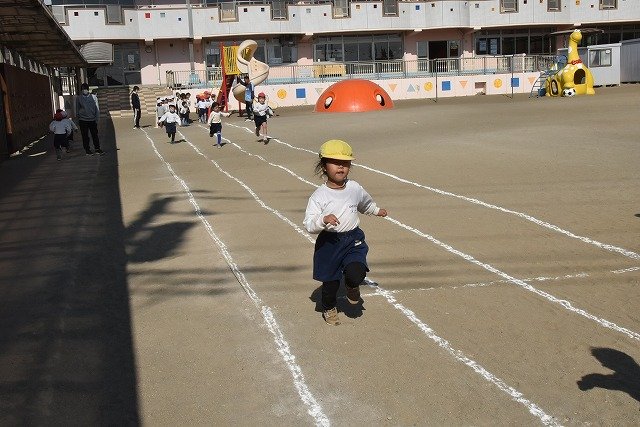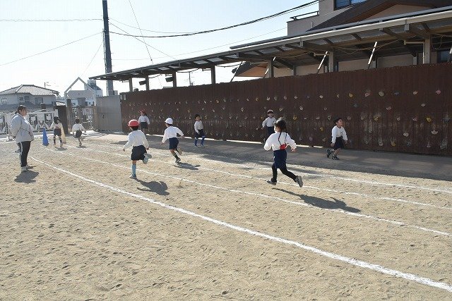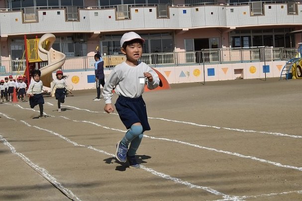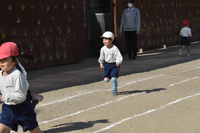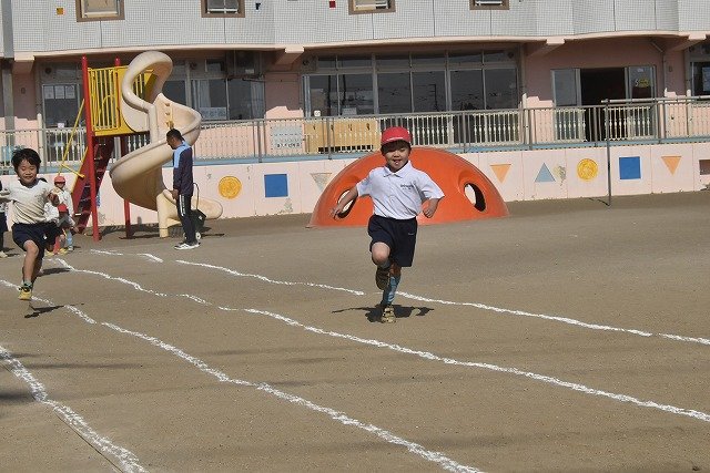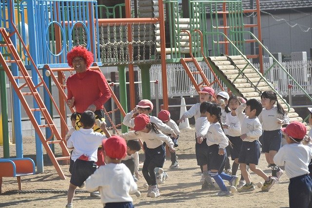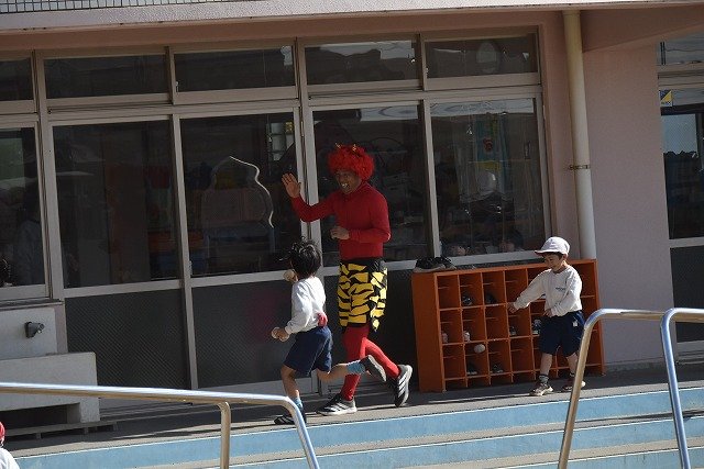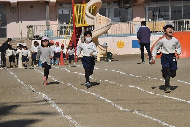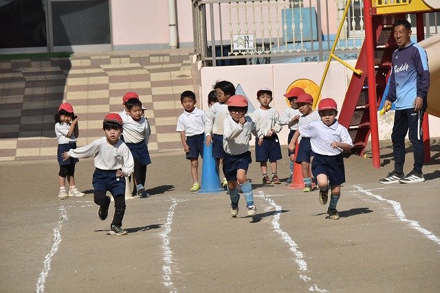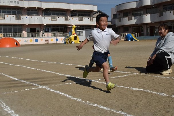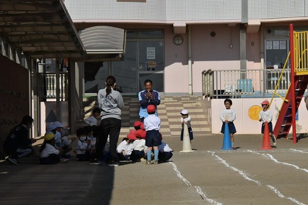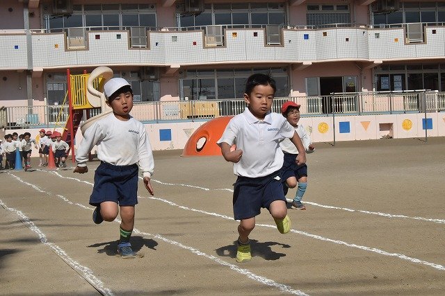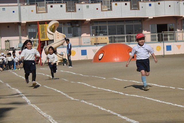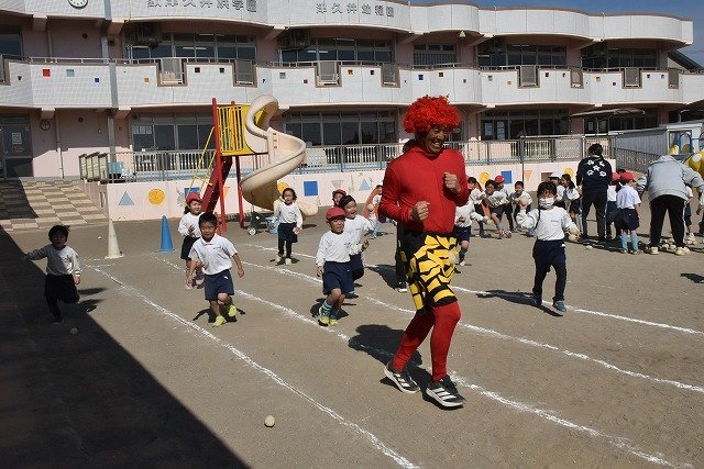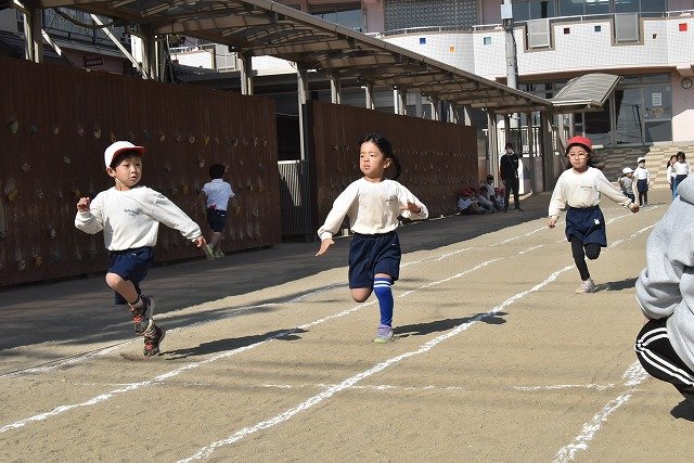 年中組 50m走の練習をした後、鬼に扮した関口先生に玉を投げるゲームをしました。とても楽しそうでした♪