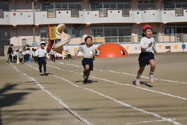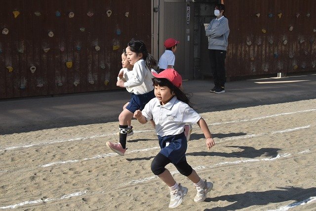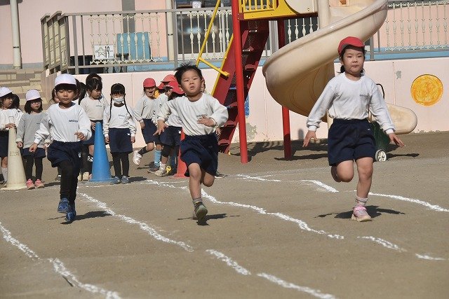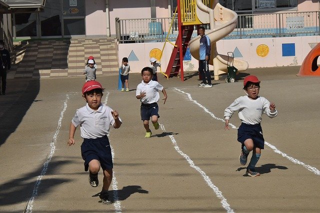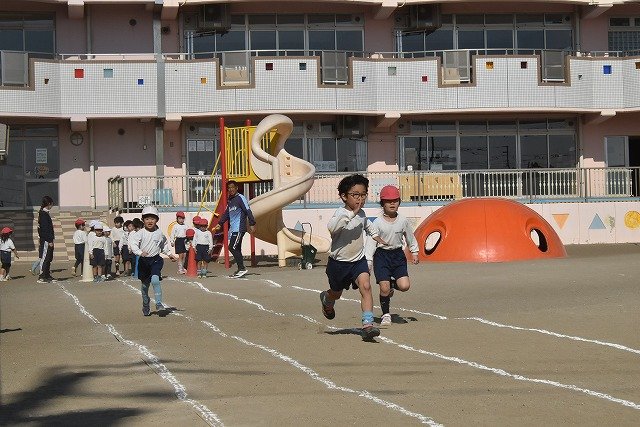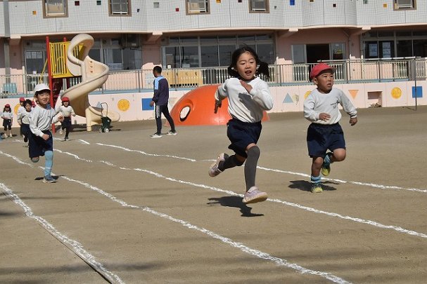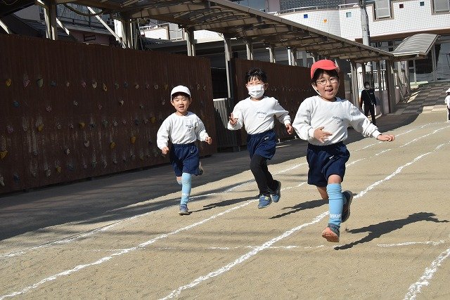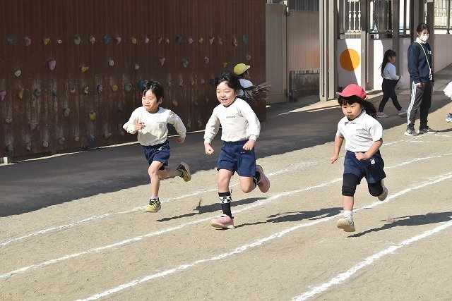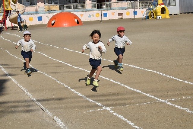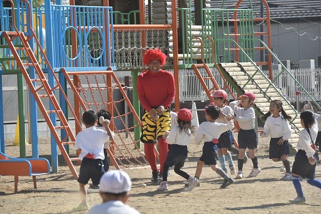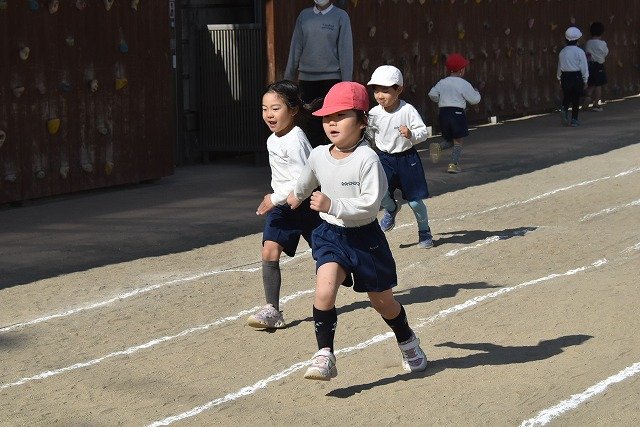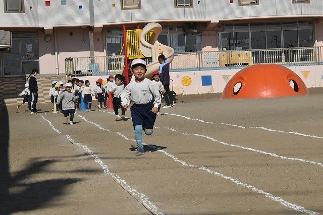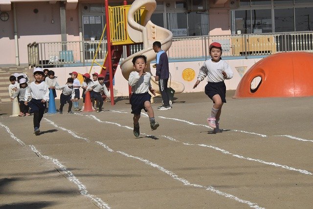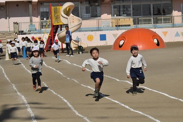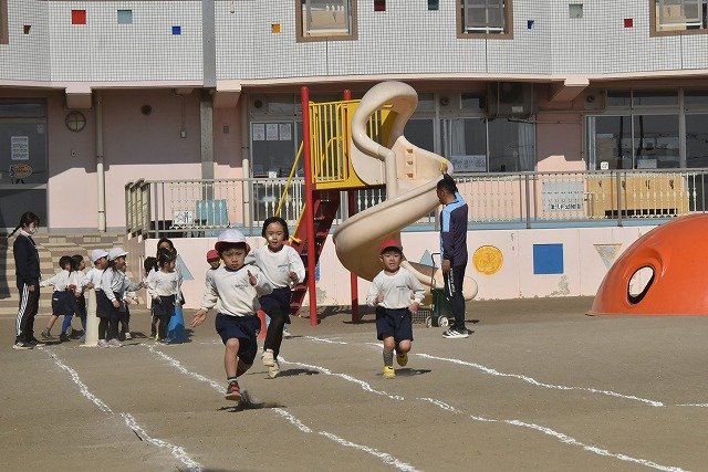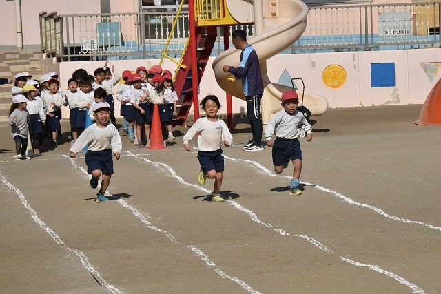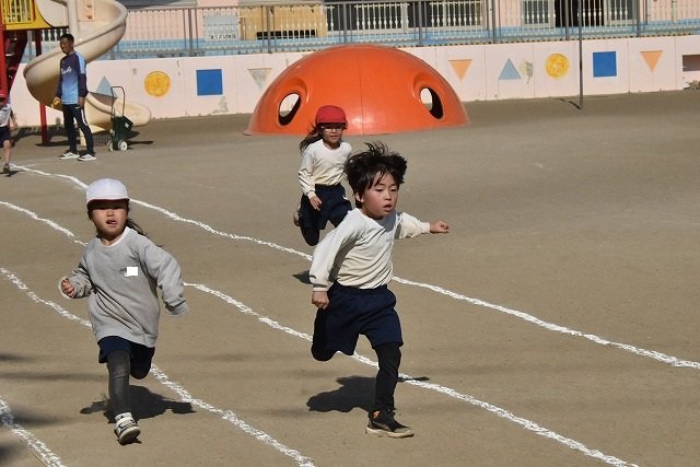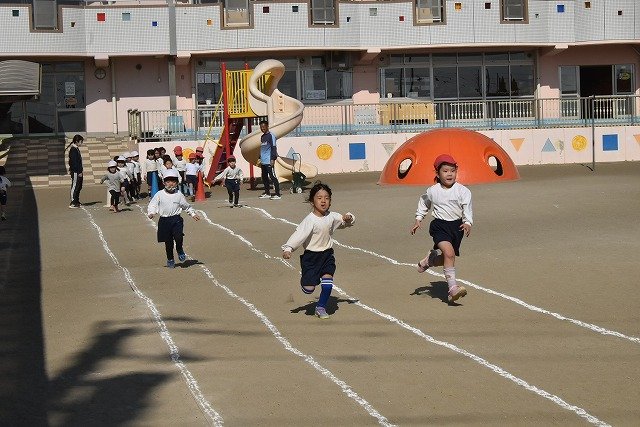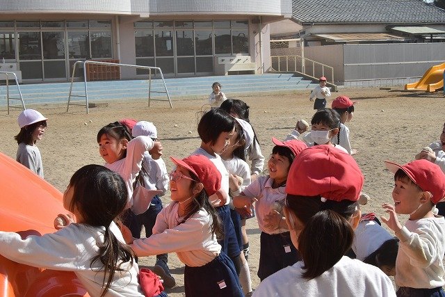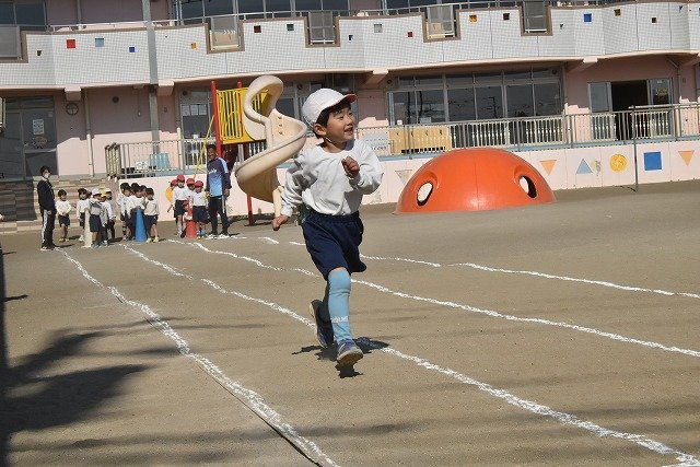 年中組 50m走の練習をした後、鬼に扮した関口先生に玉を投げるゲームをしました。とても楽しそうでした♪