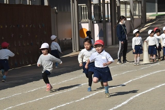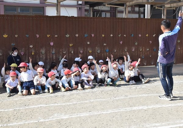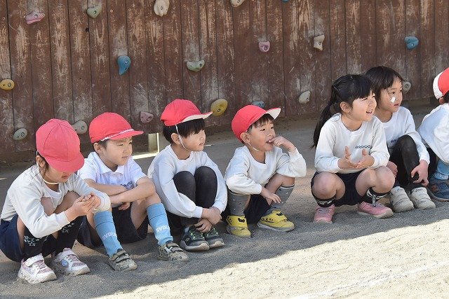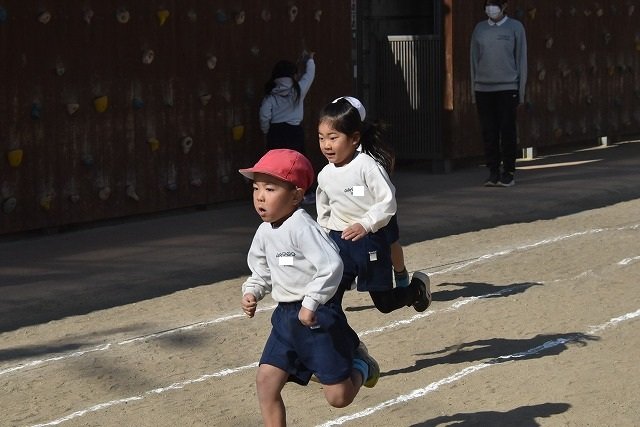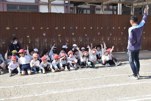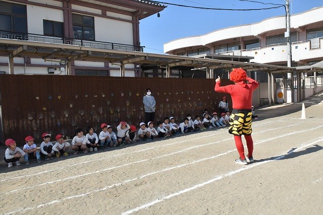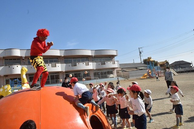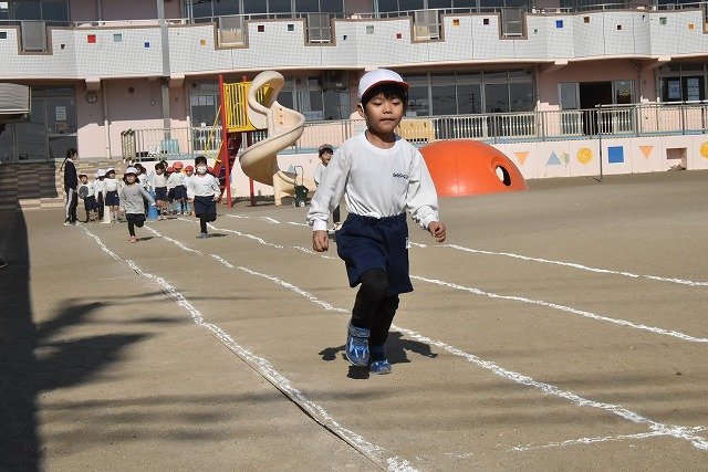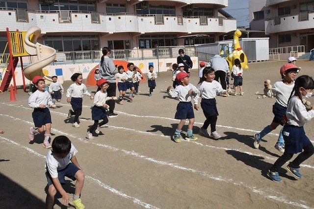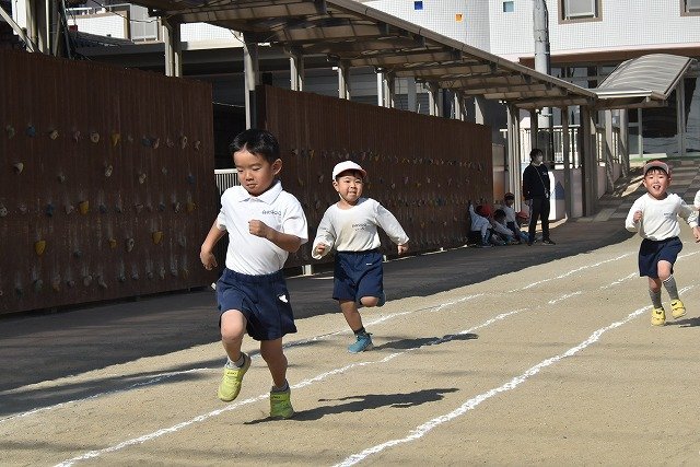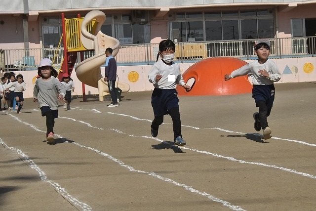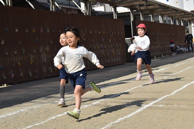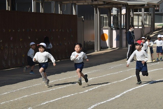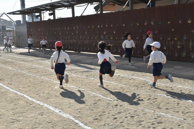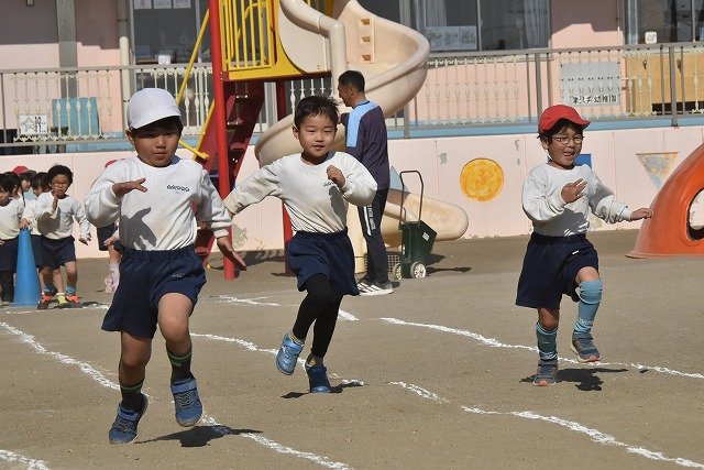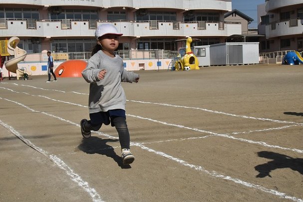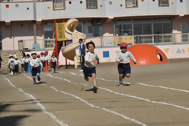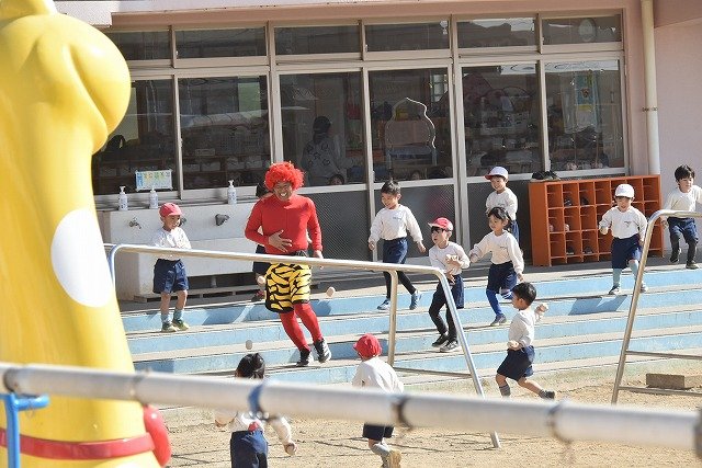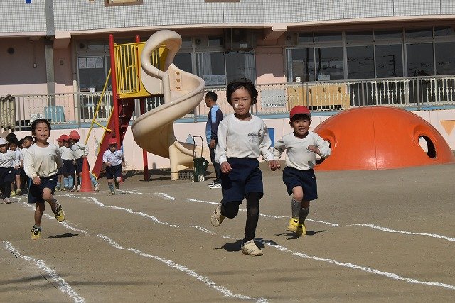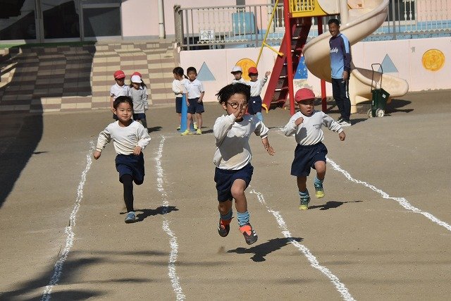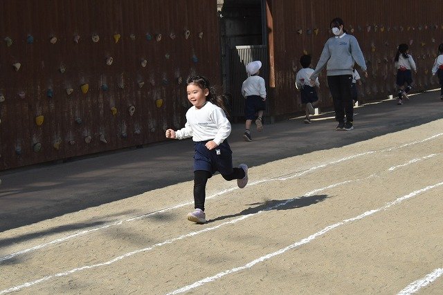 年中組 50m走の練習をした後、鬼に扮した関口先生に玉を投げるゲームをしました。とても楽しそうでした♪