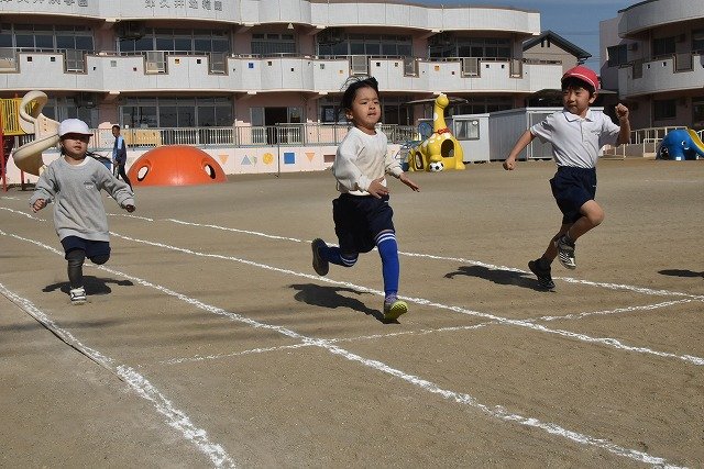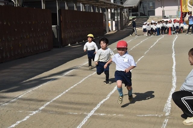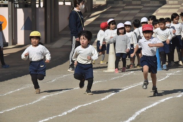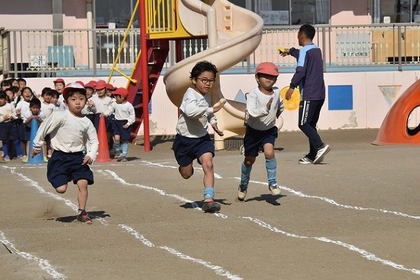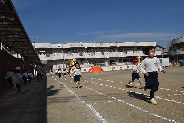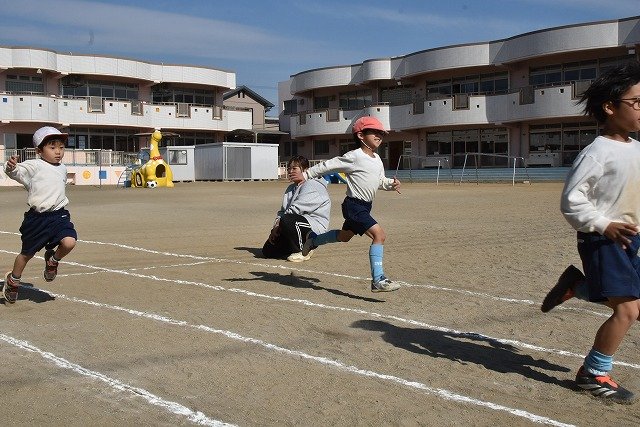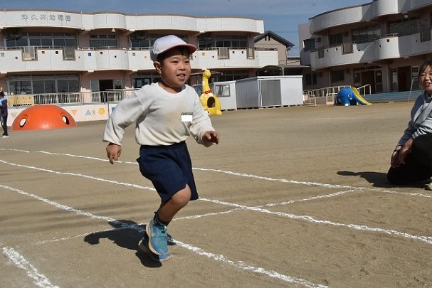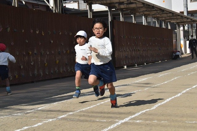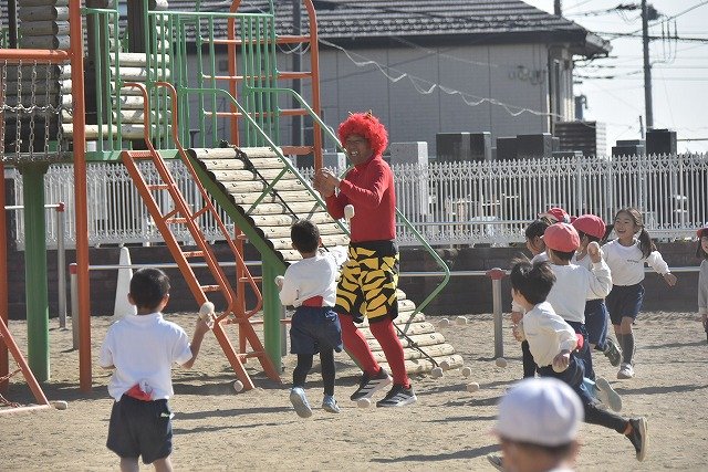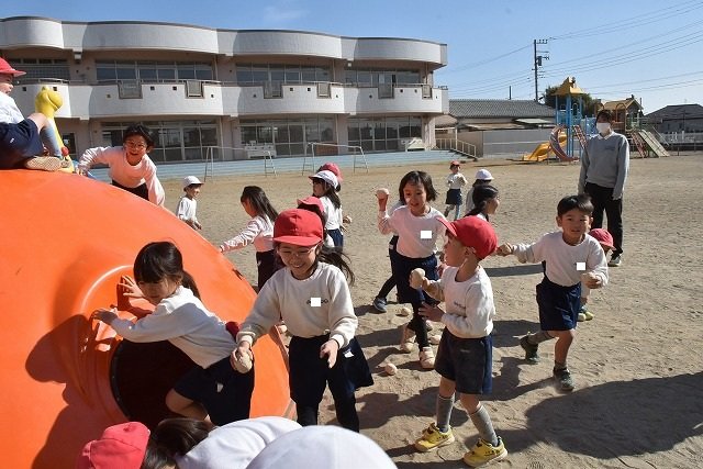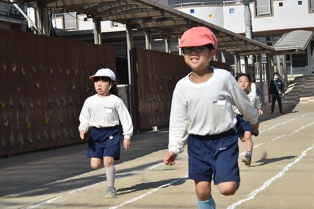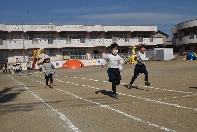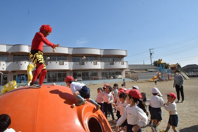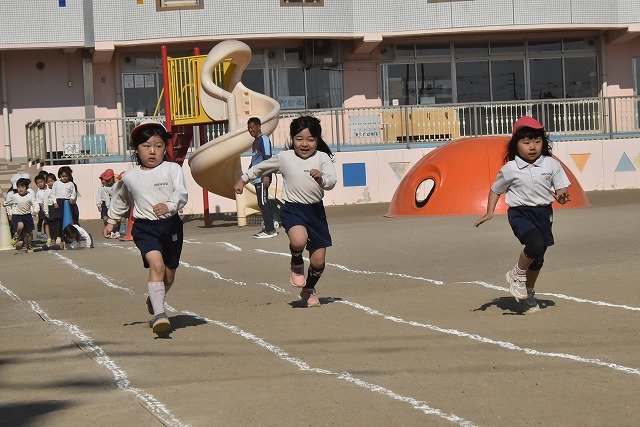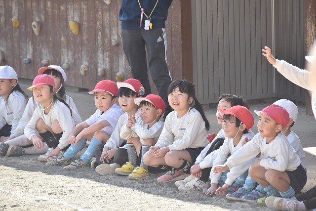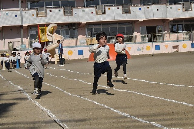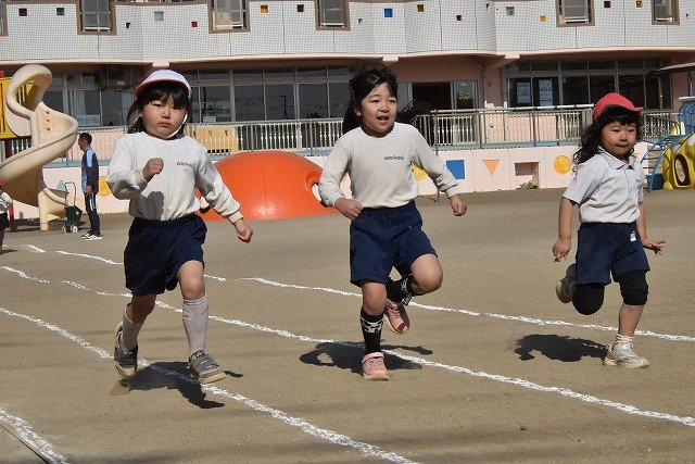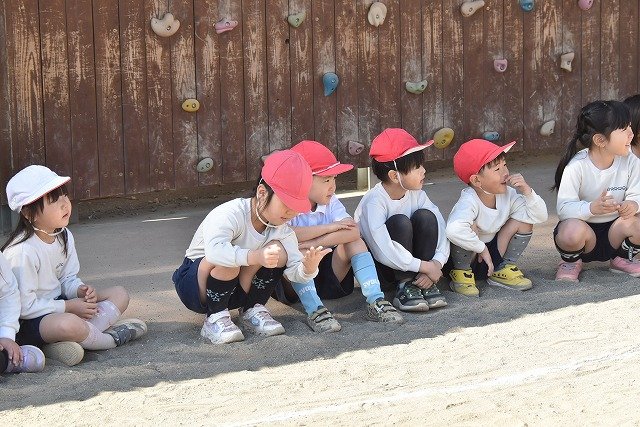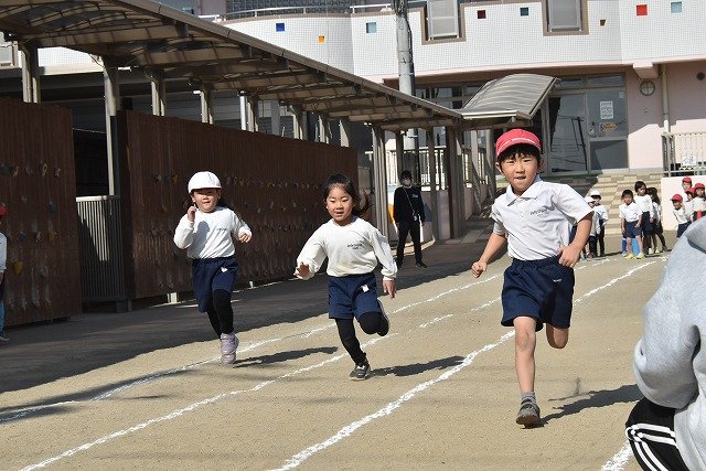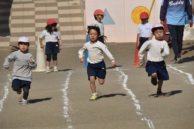 年中組 50m走の練習をした後、鬼に扮した関口先生に玉を投げるゲームをしました。とても楽しそうでした♪