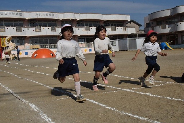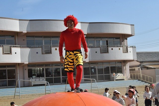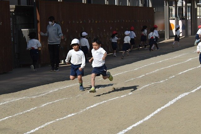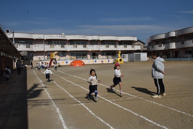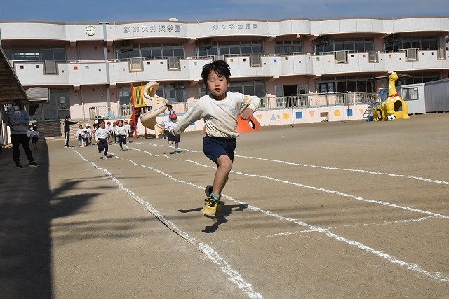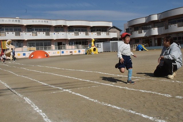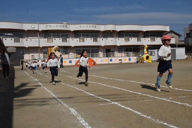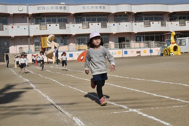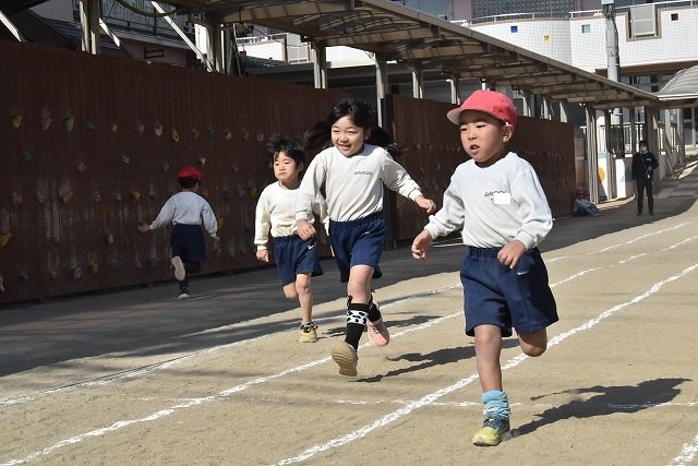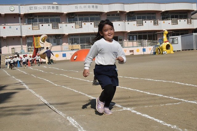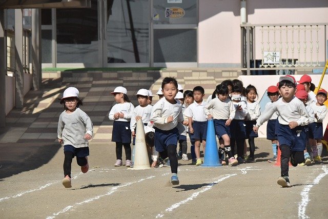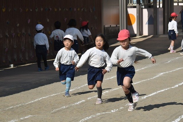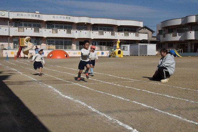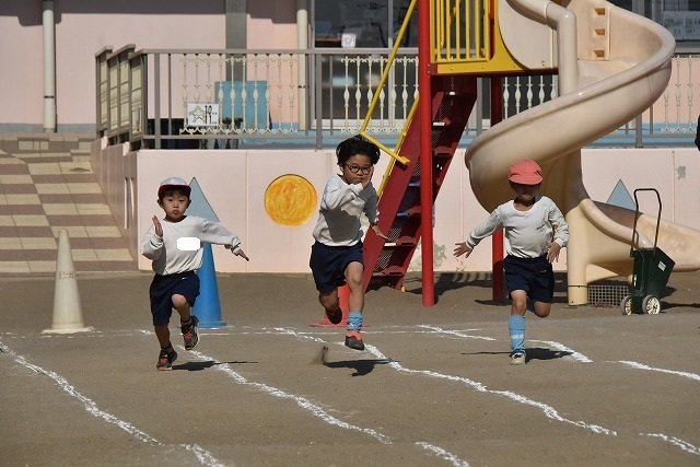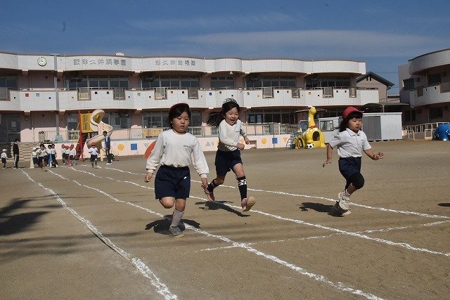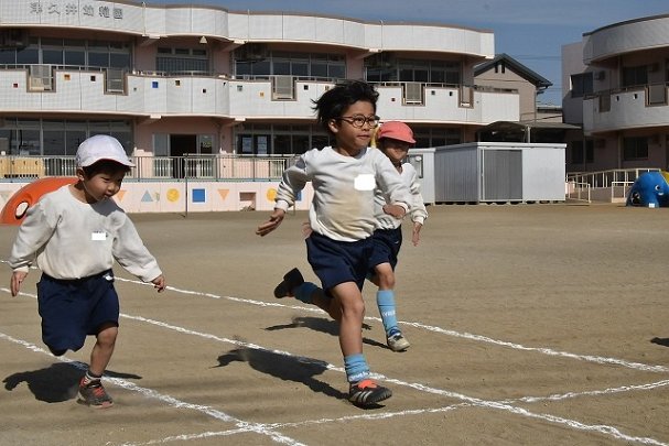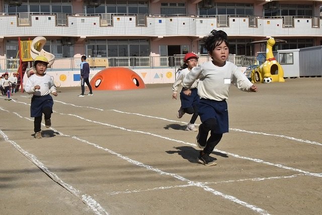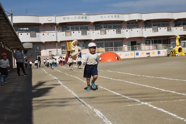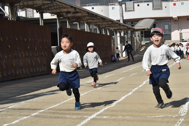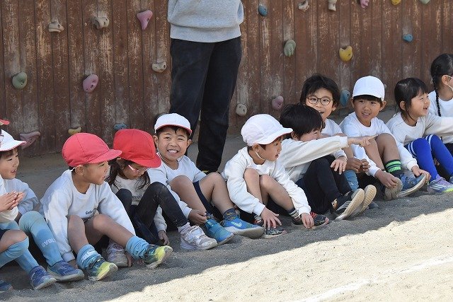 年中組 50m走の練習をした後、鬼に扮した関口先生に玉を投げるゲームをしました。とても楽しそうでした♪