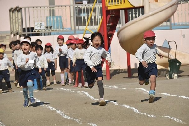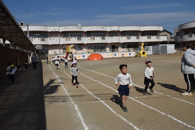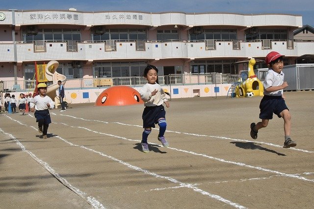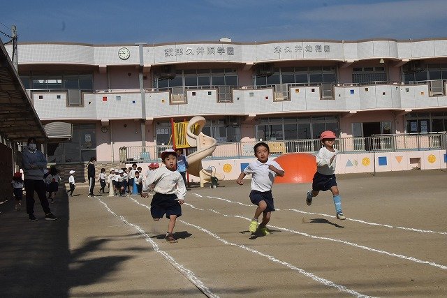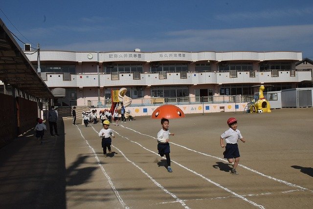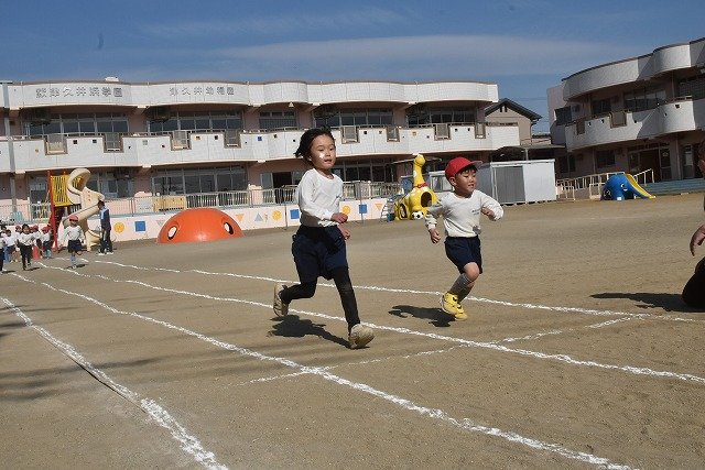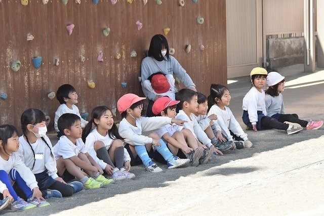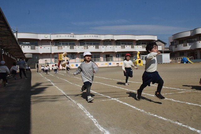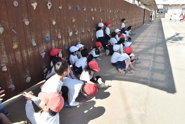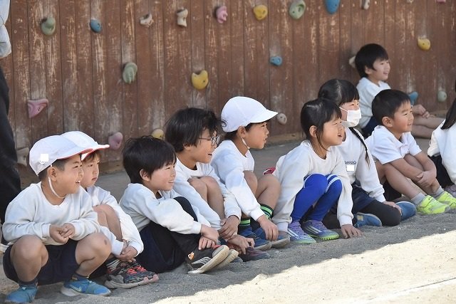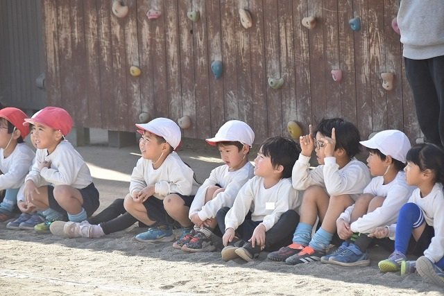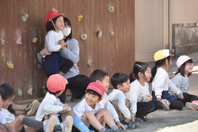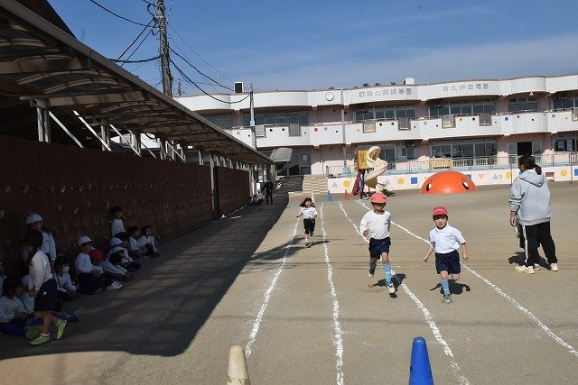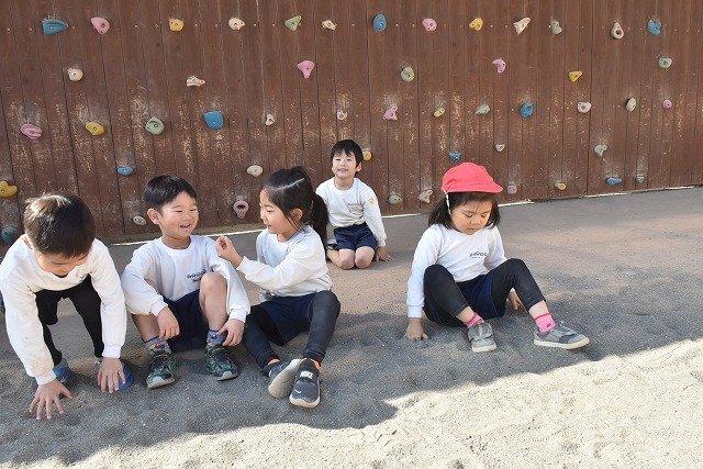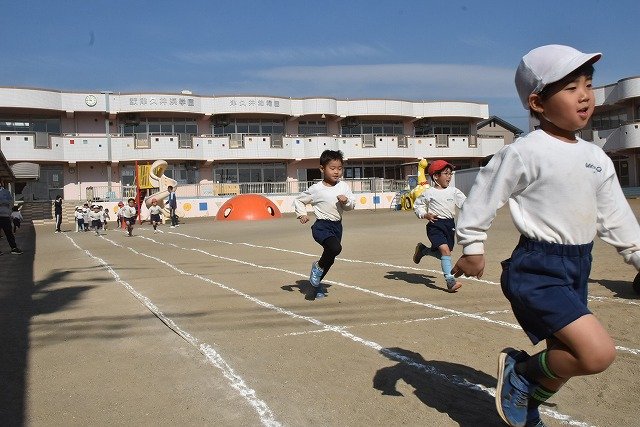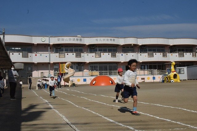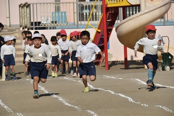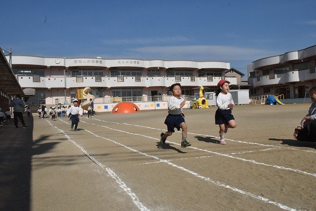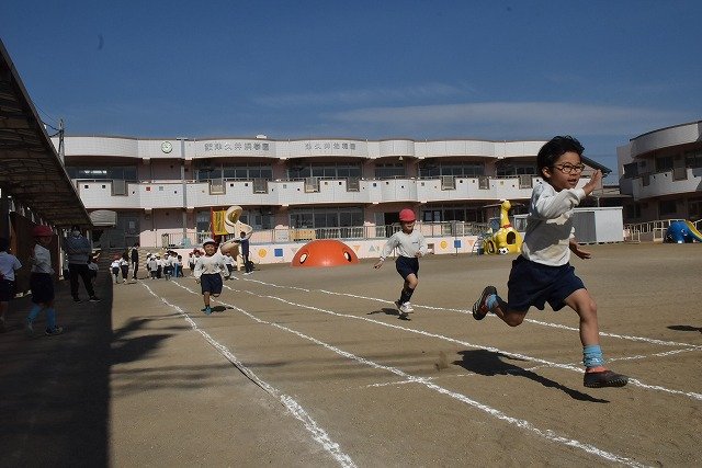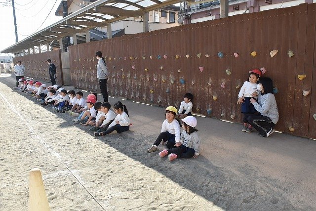年中組 50m走の練習をした後、鬼に扮した関口先生に玉を投げるゲームをしました。とても楽しそうでした♪