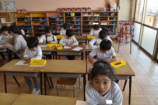 年長組 入園してからお世話になった先生へ手紙を書きました。