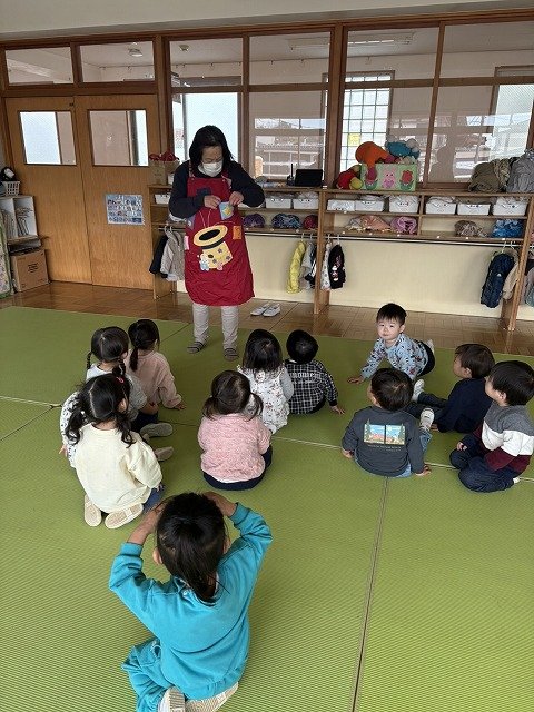 エプロンシアターで遊びました!みんな興味津々♪