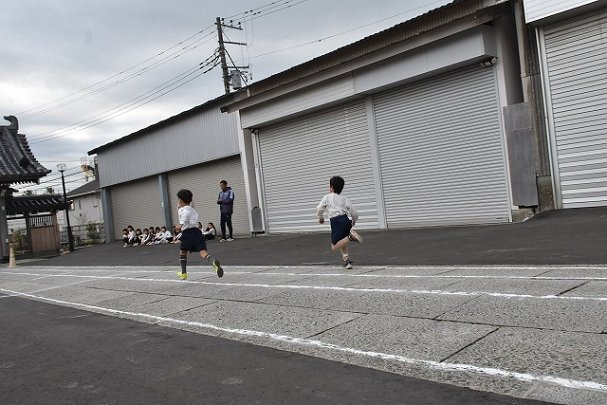 年長組 50mのタイムを測定しました.。他の写真は後日コドモンに掲載します。