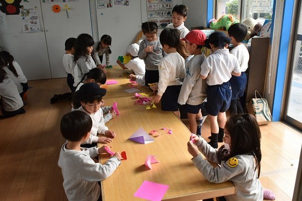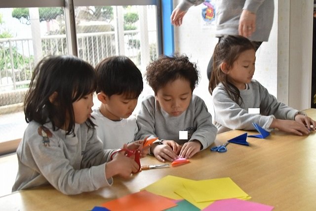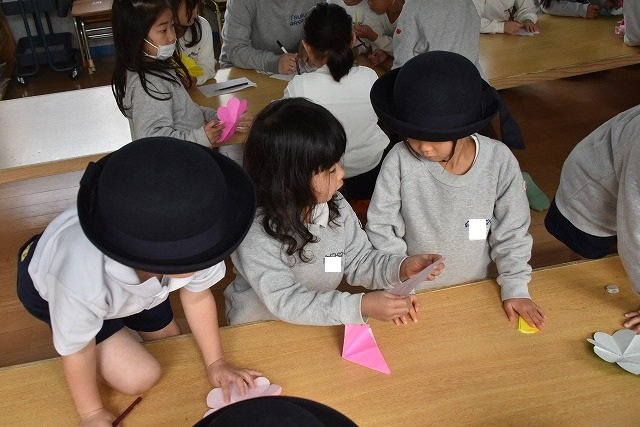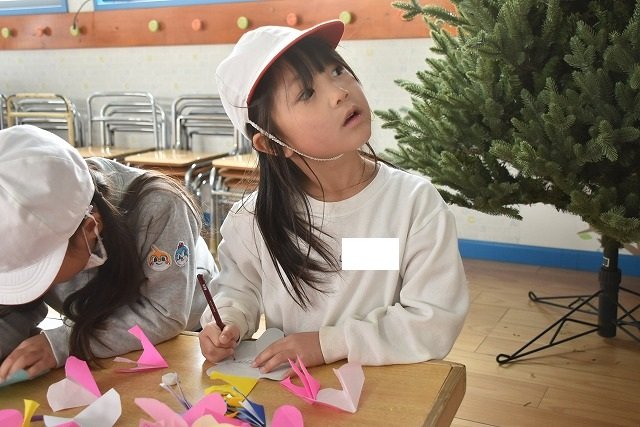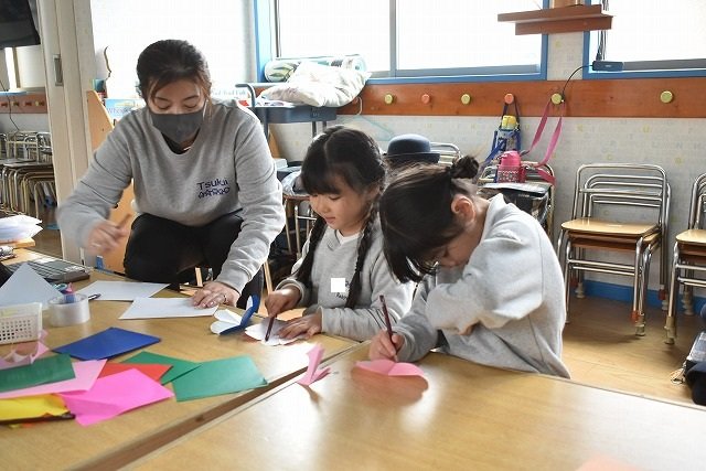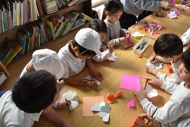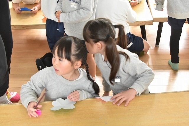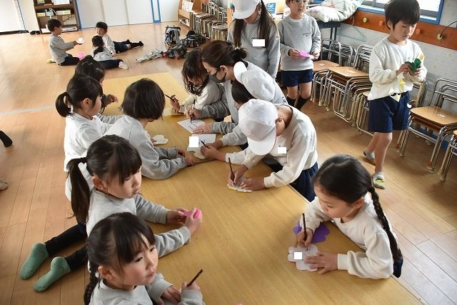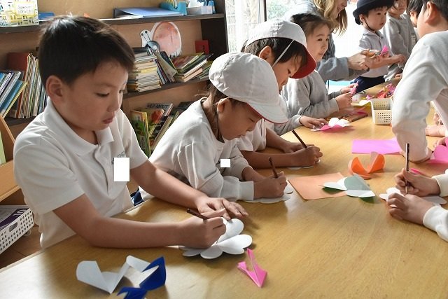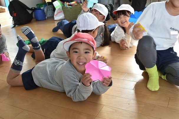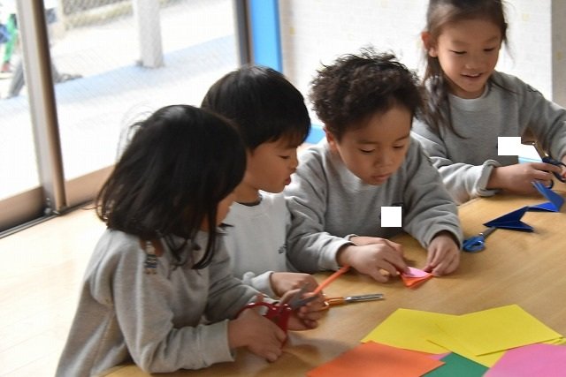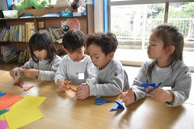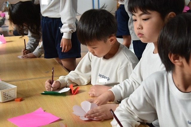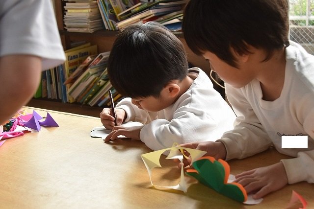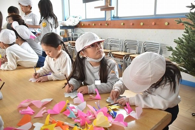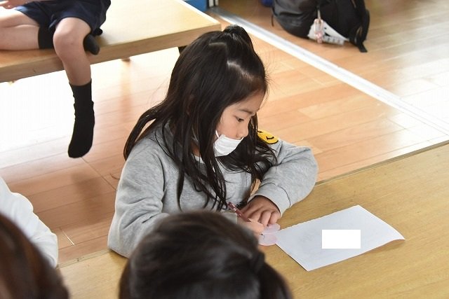 折り紙をはさみで切って手紙を書きました
