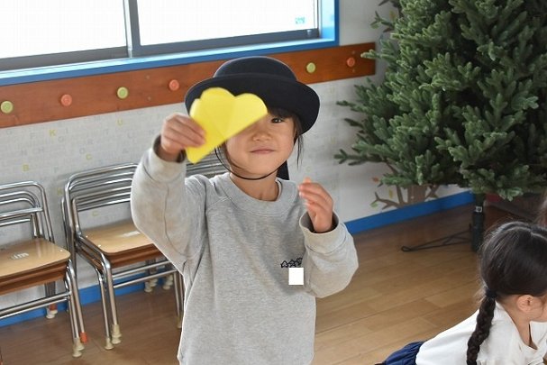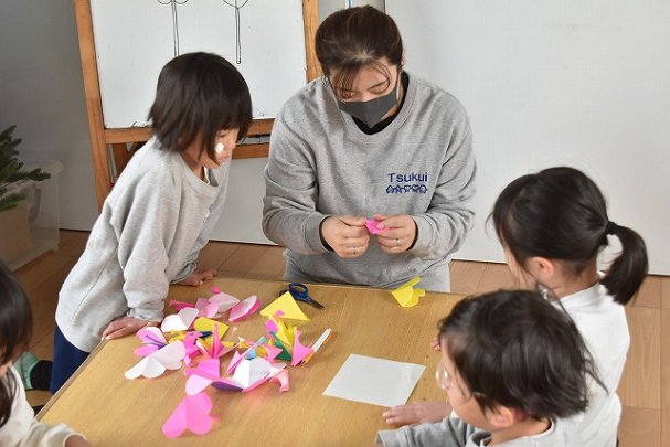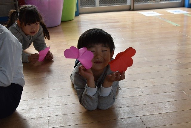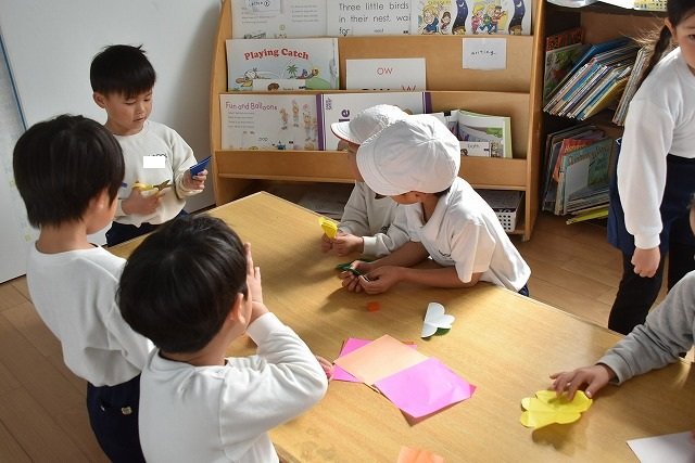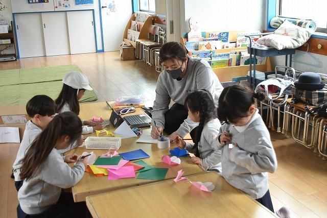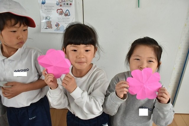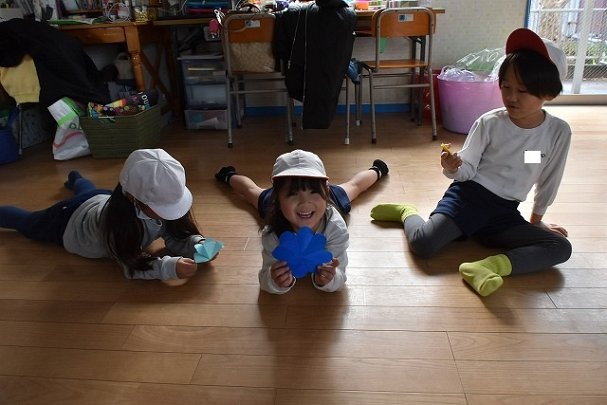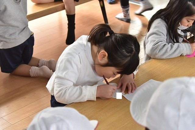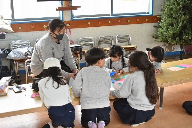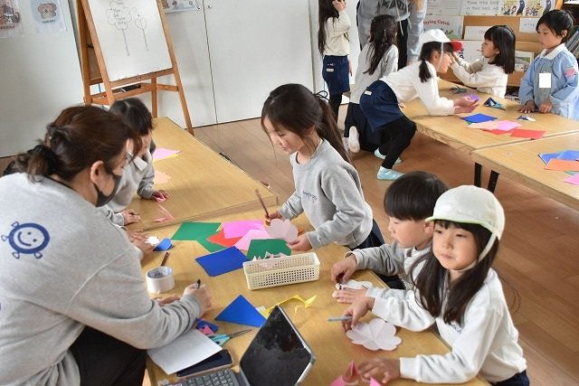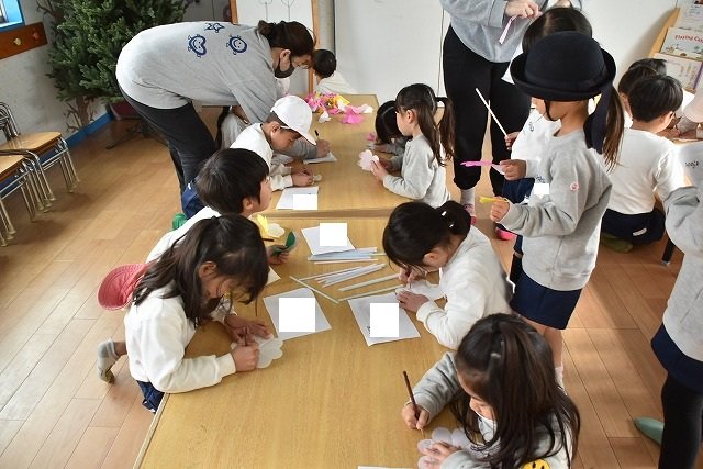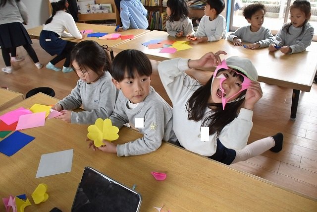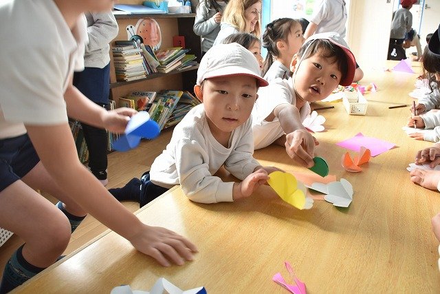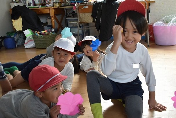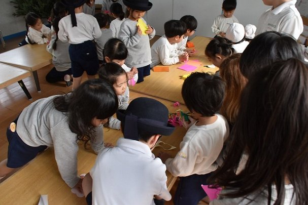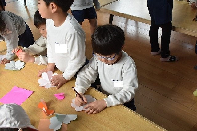 折り紙をはさみで切って手紙を書きました