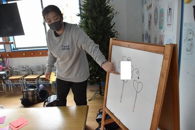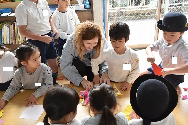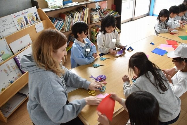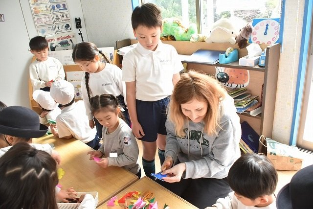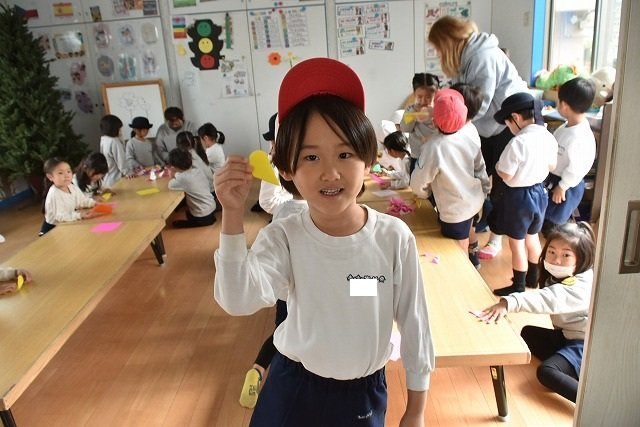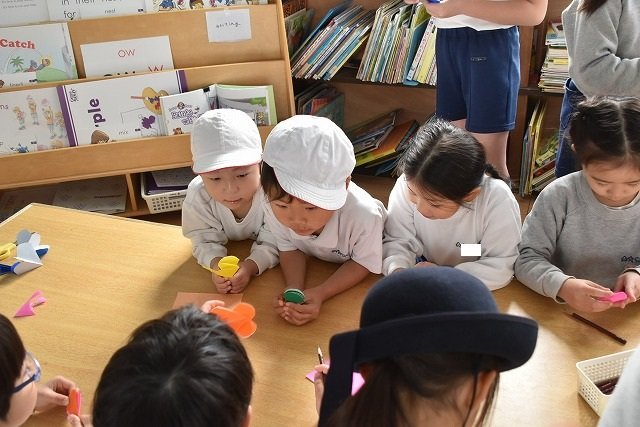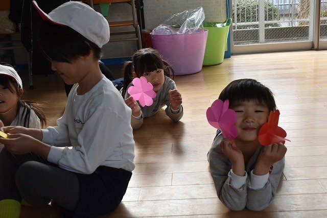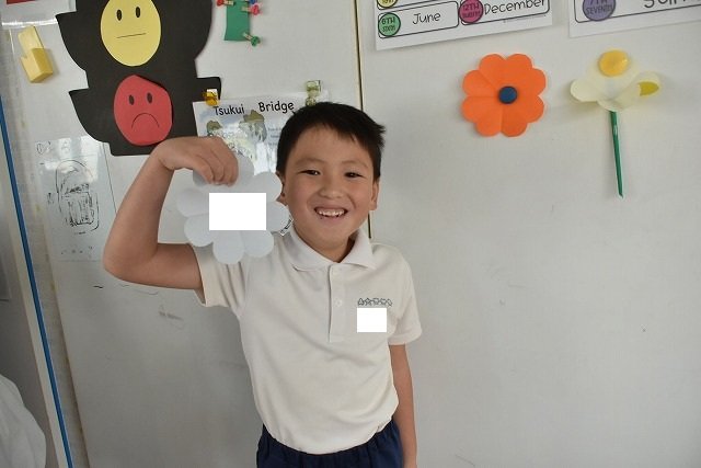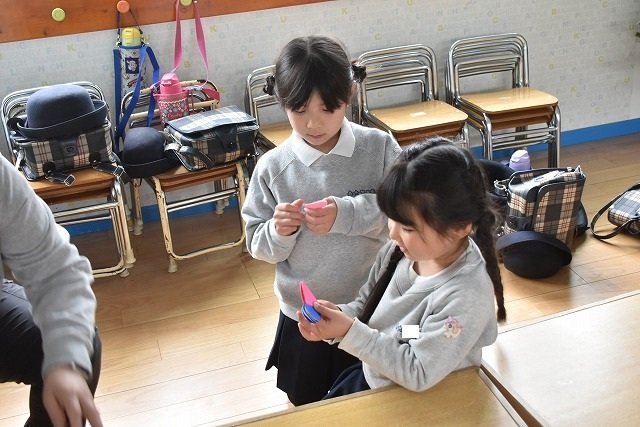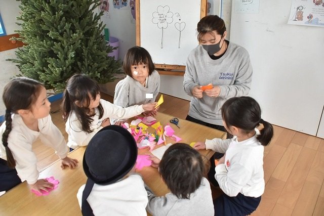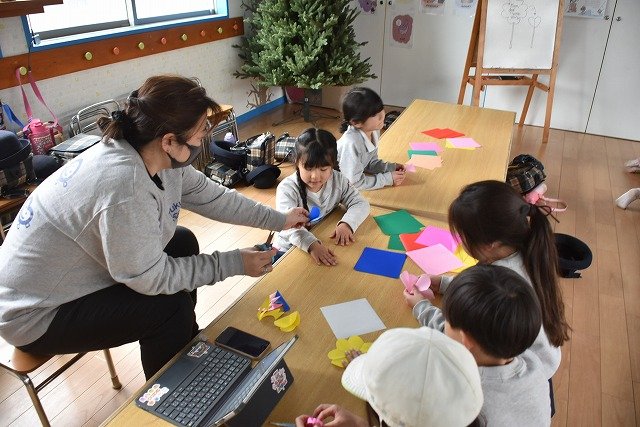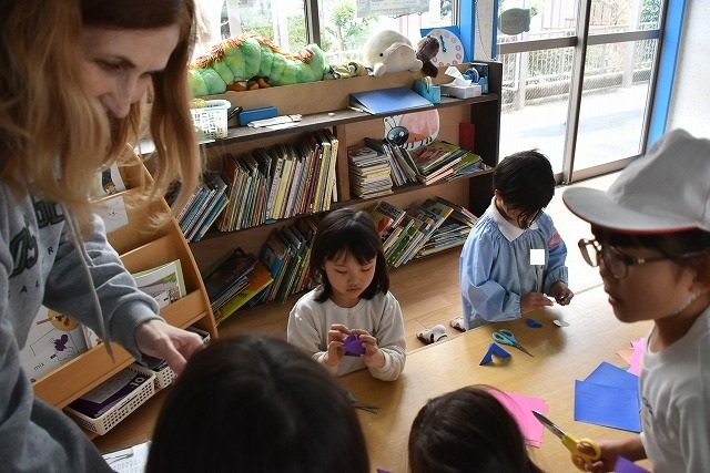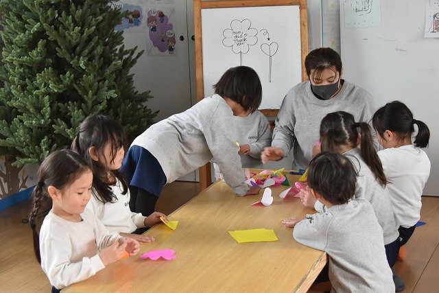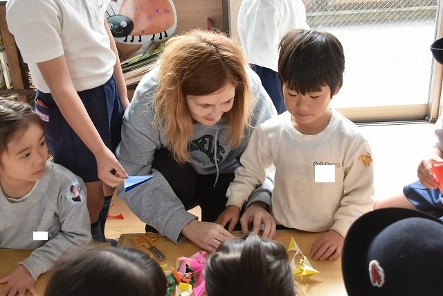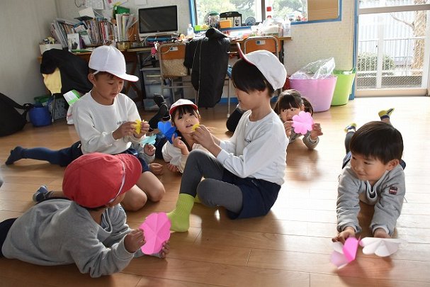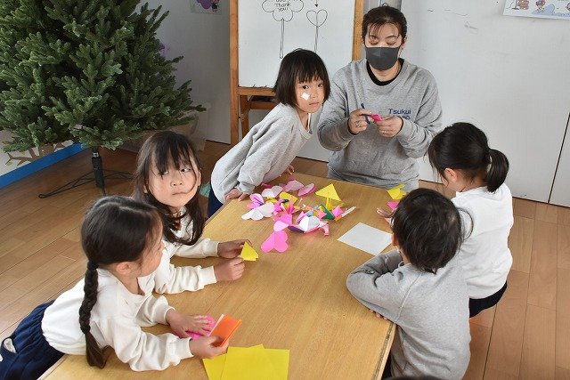 折り紙をはさみで切って手紙を書きました