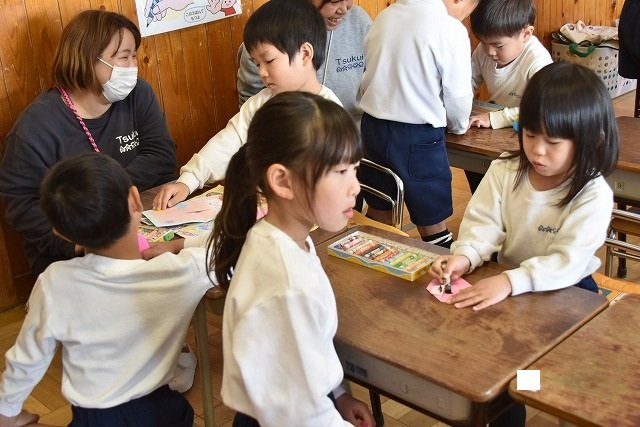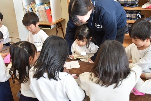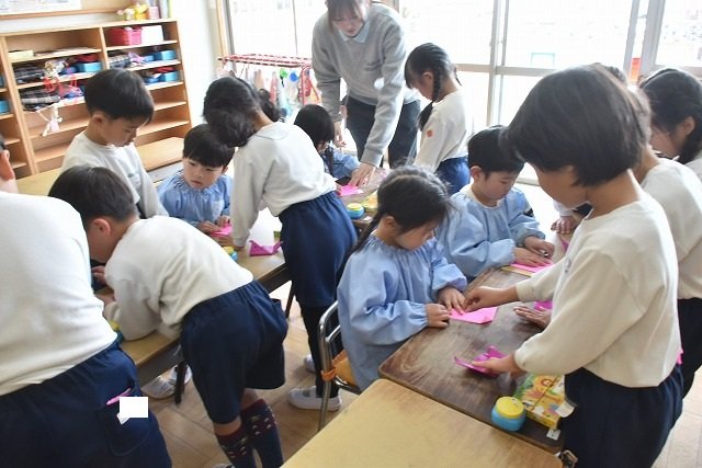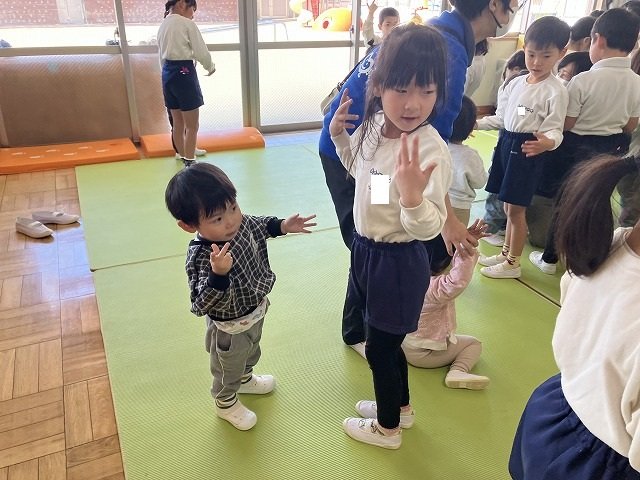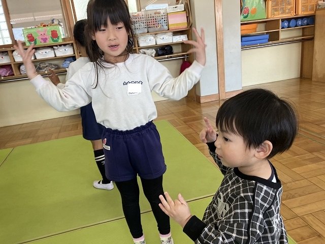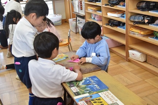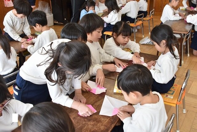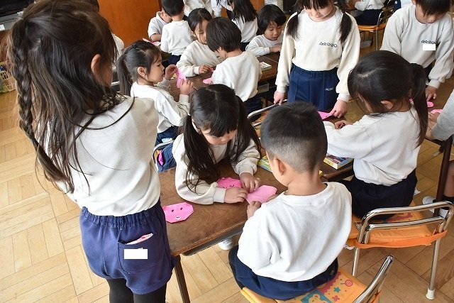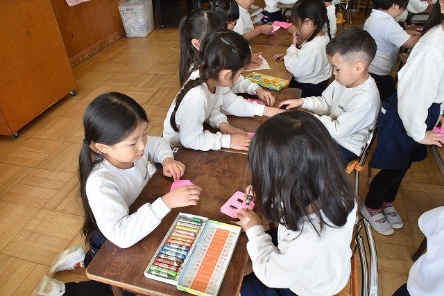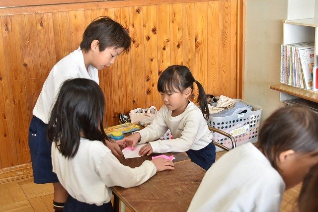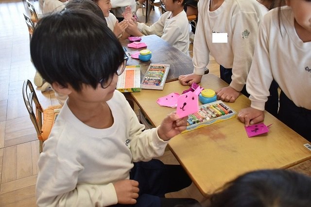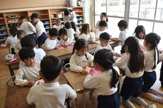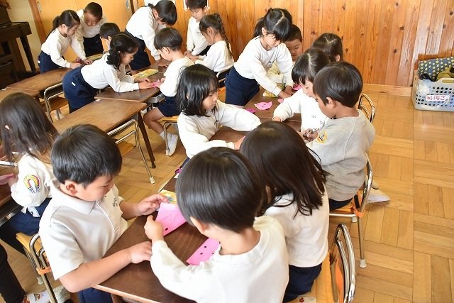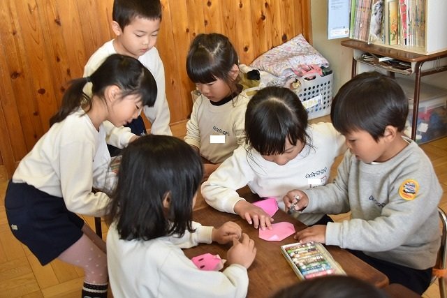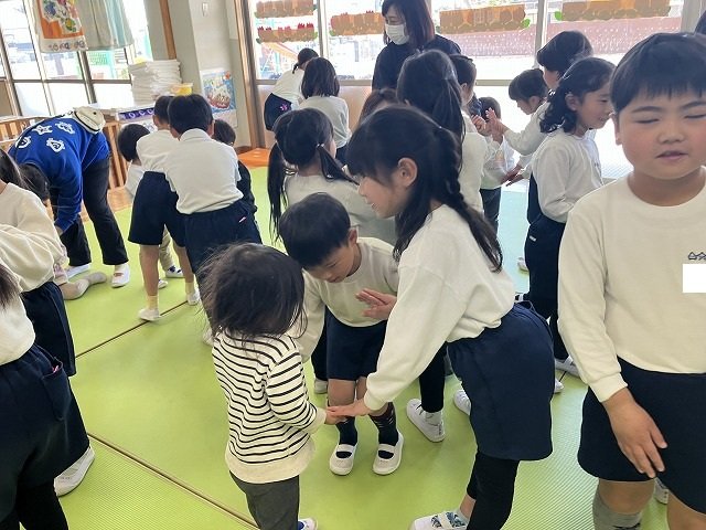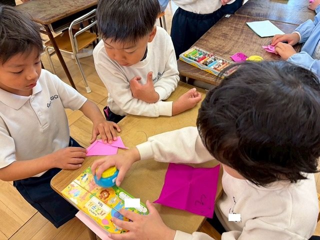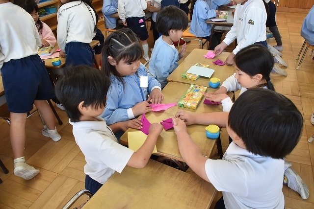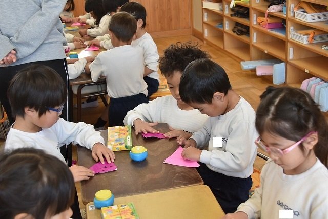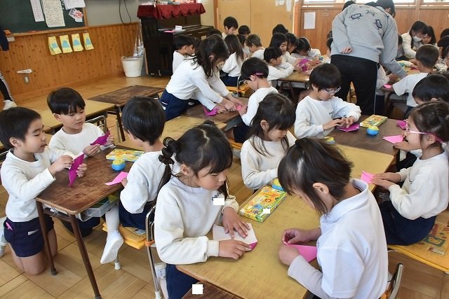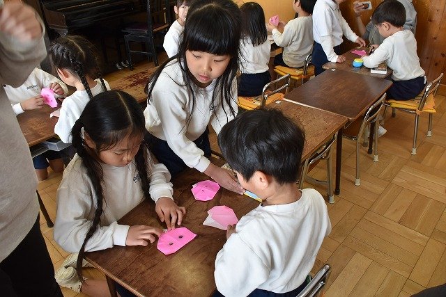 年長のお友だちが各クラスをまわり、一緒に折り紙をおったり、絵本を読んであげたりして楽しい時間を過ごしました