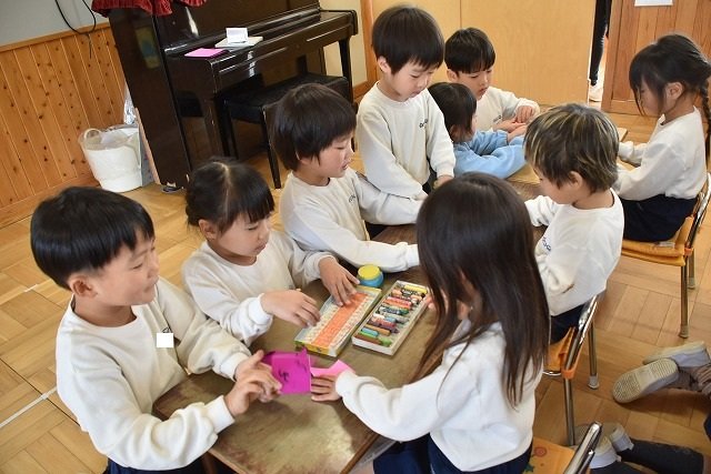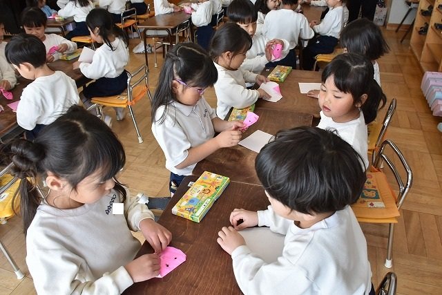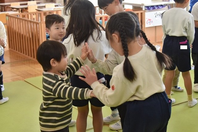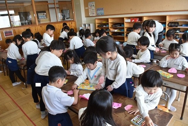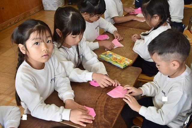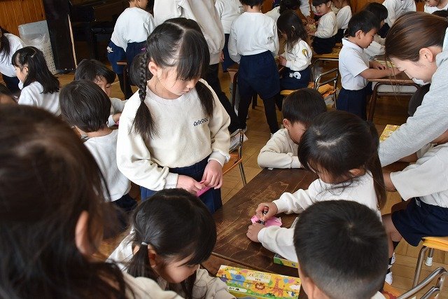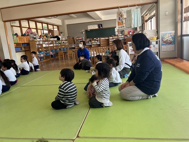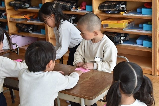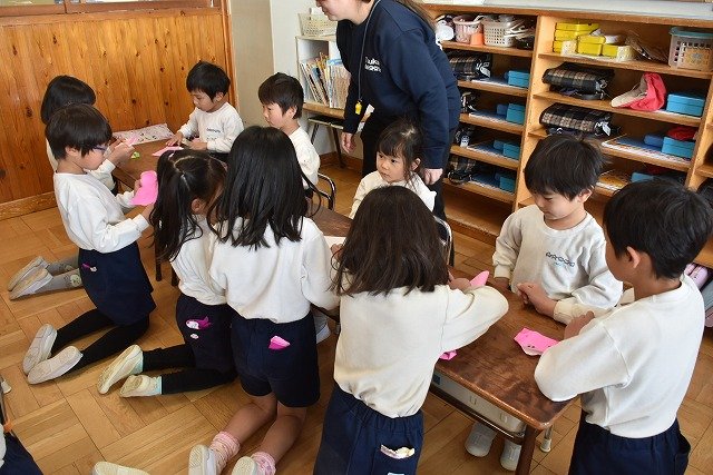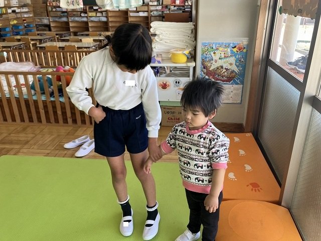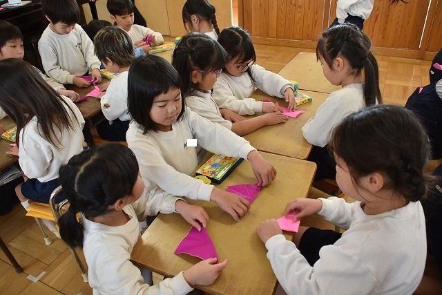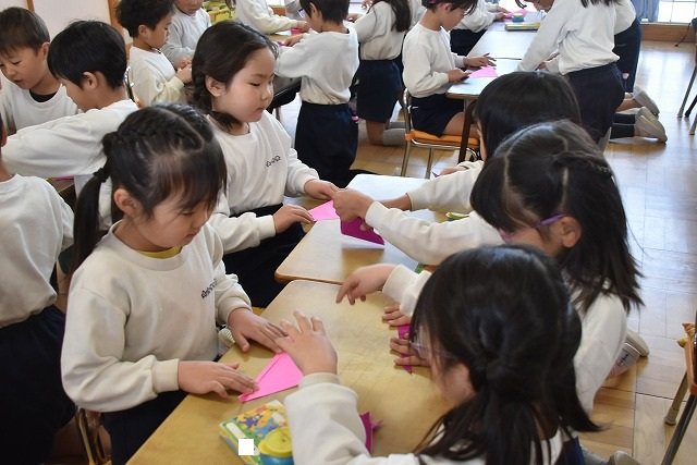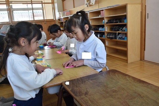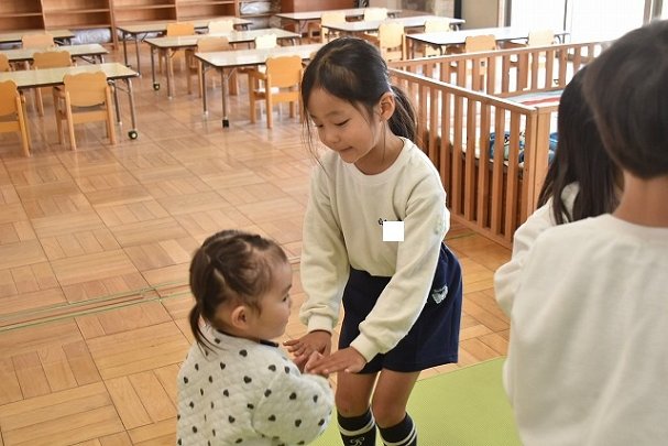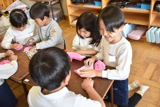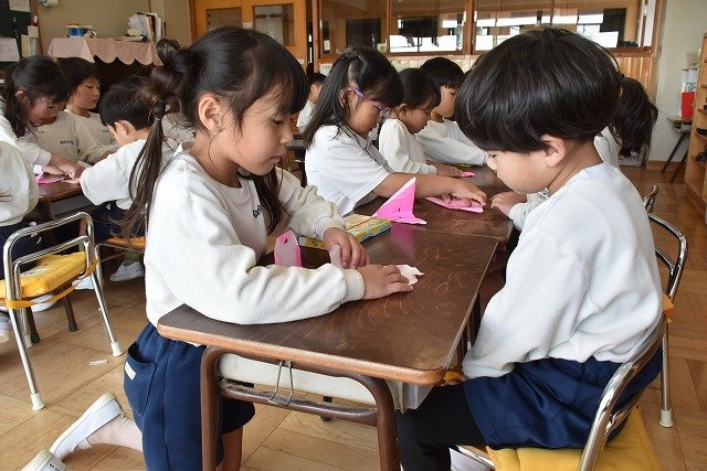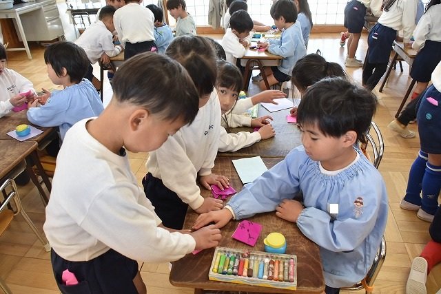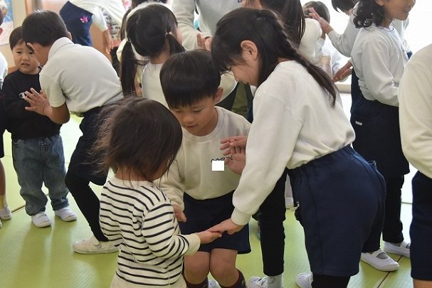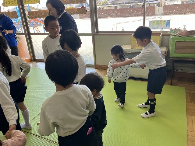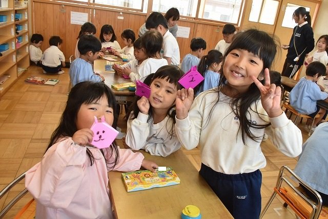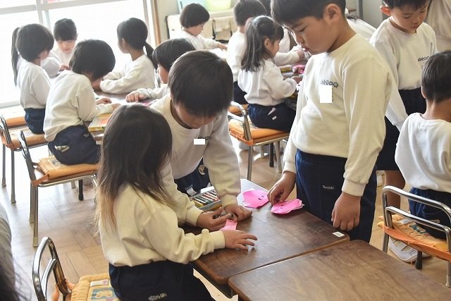 年長のお友だちが各クラスをまわり、一緒に折り紙をおったり、絵本を読んであげたりして楽しい時間を過ごしました