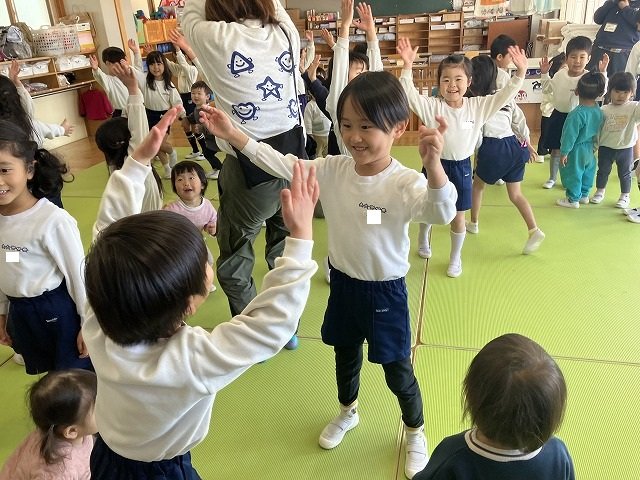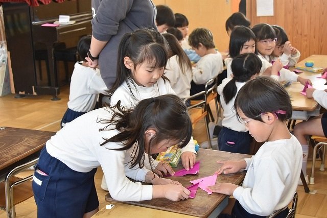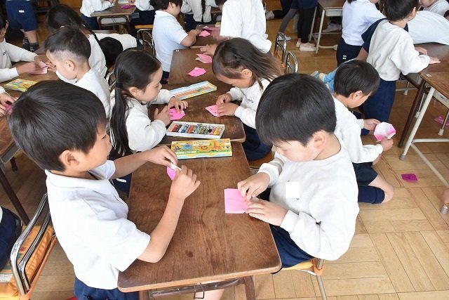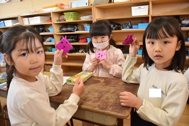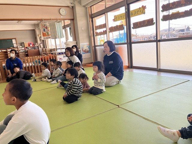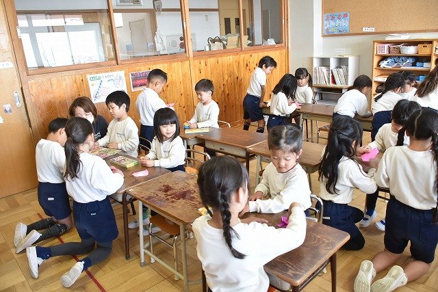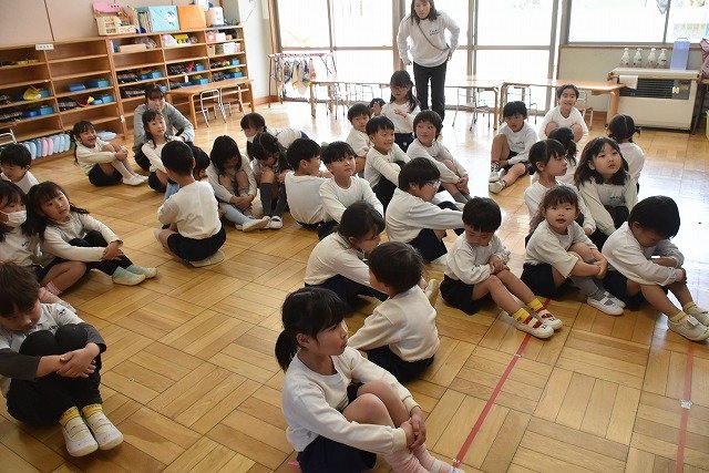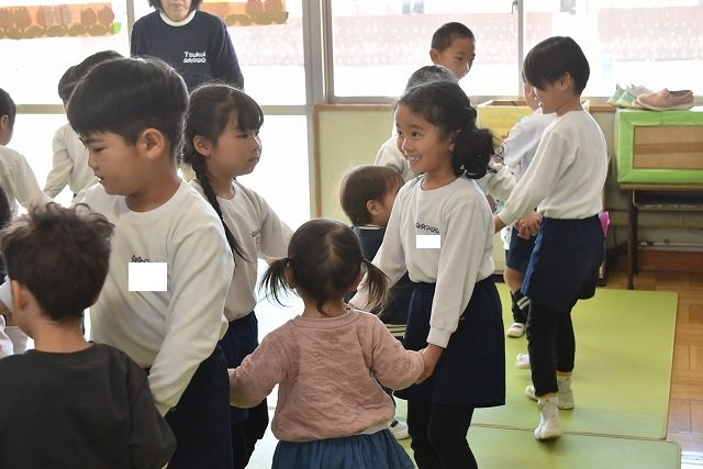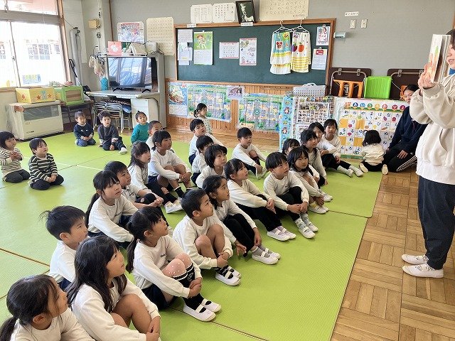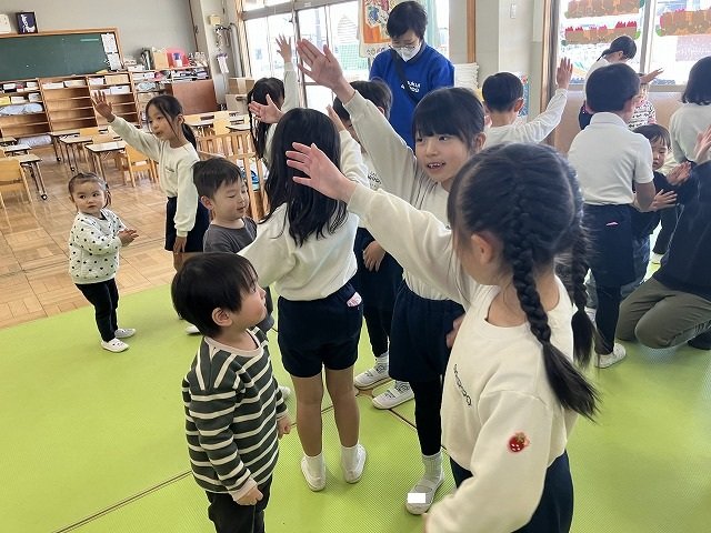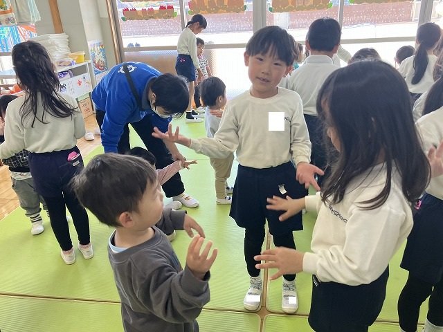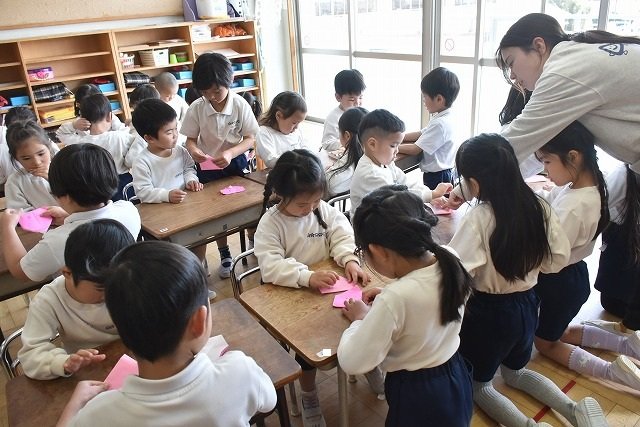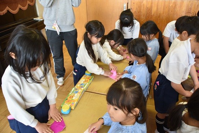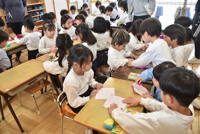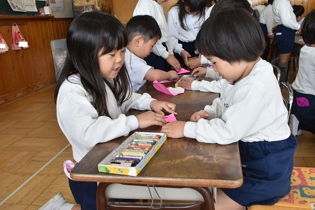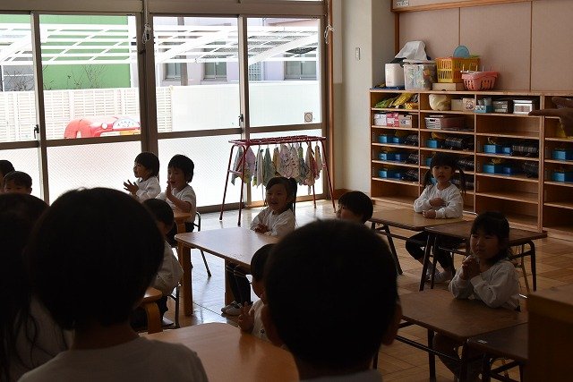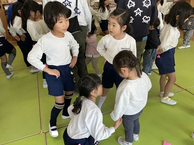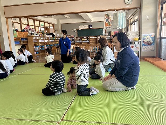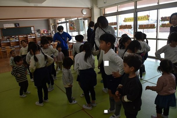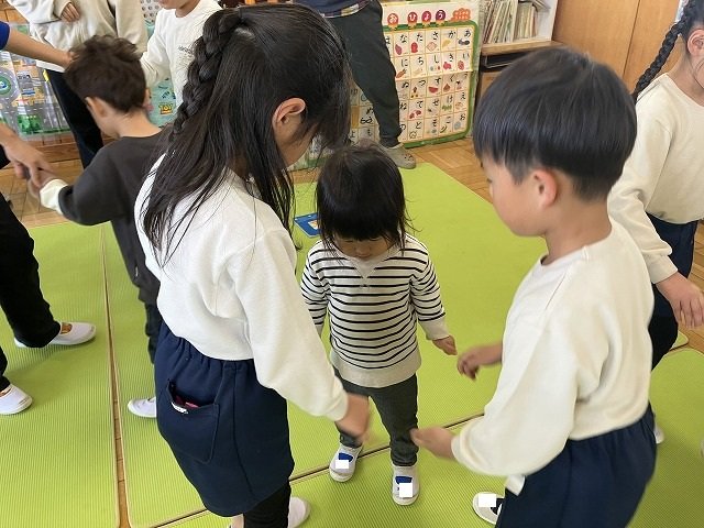 年長のお友だちが各クラスをまわり、一緒に折り紙をおったり、絵本を読んであげたりして楽しい時間を過ごしました