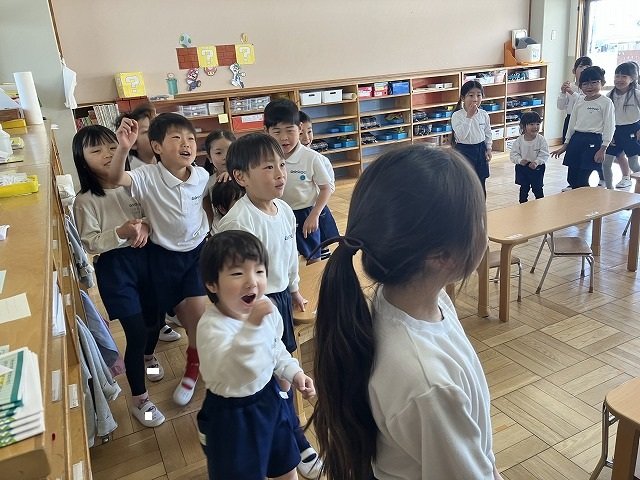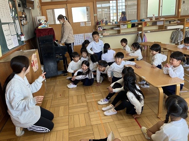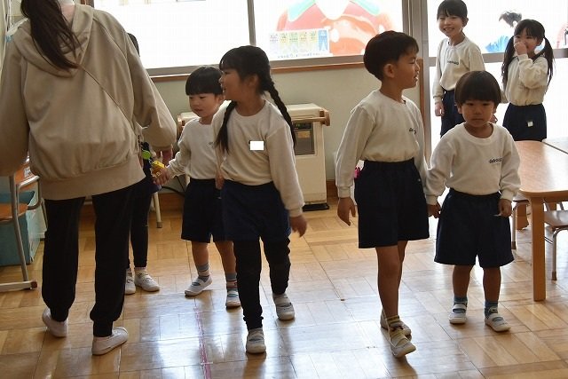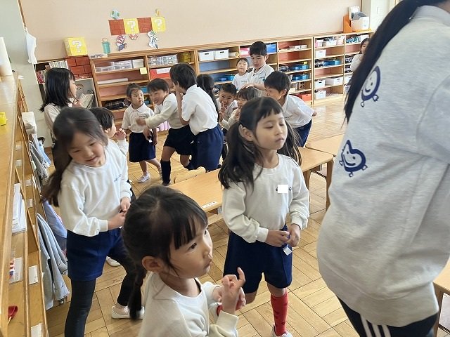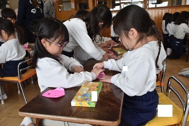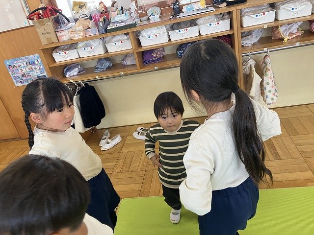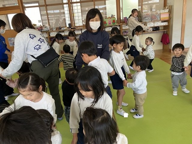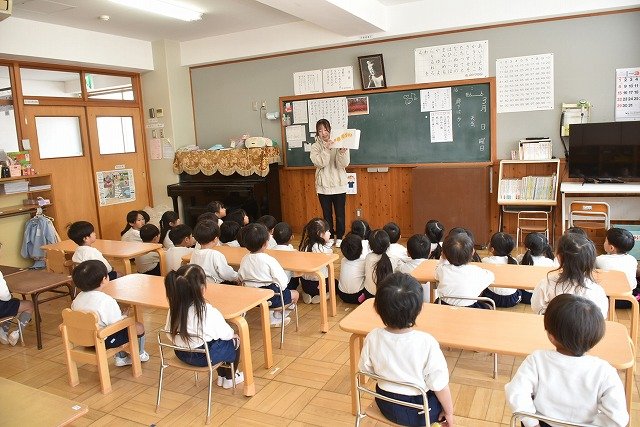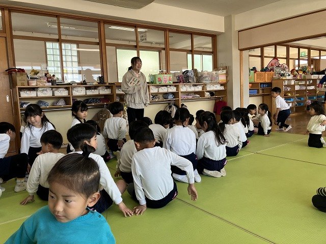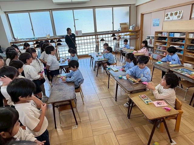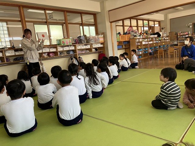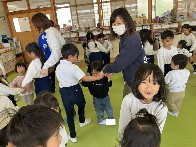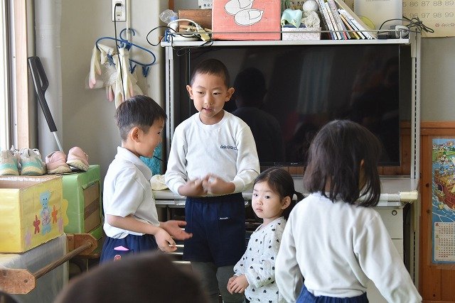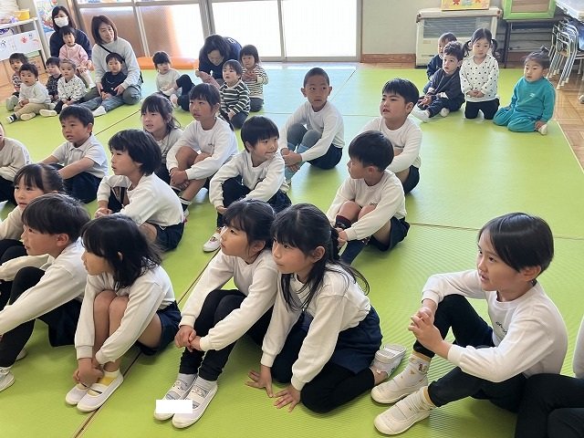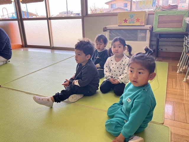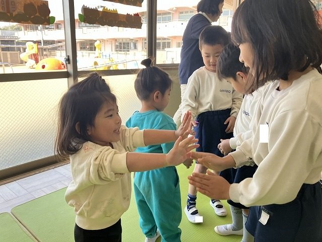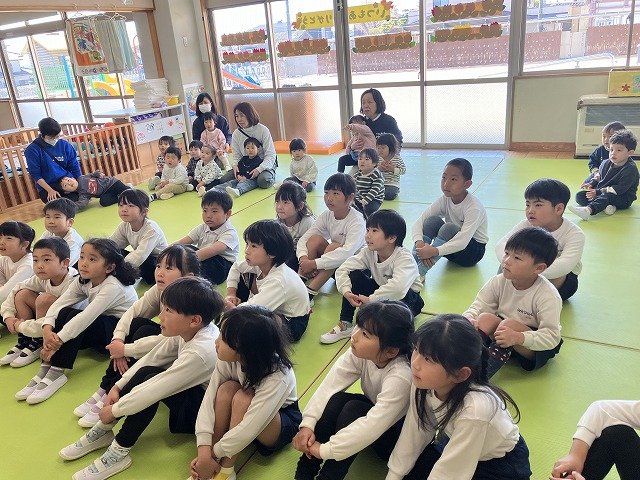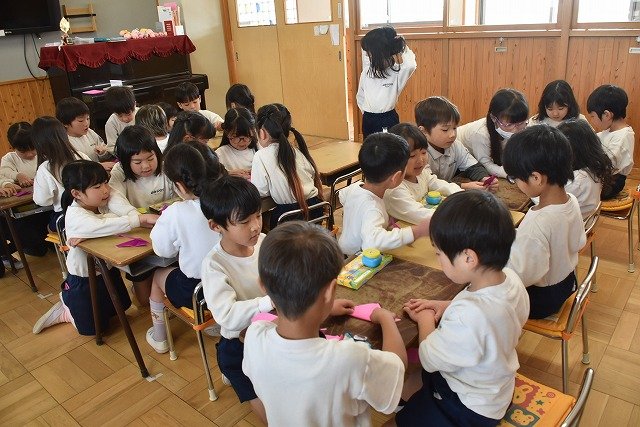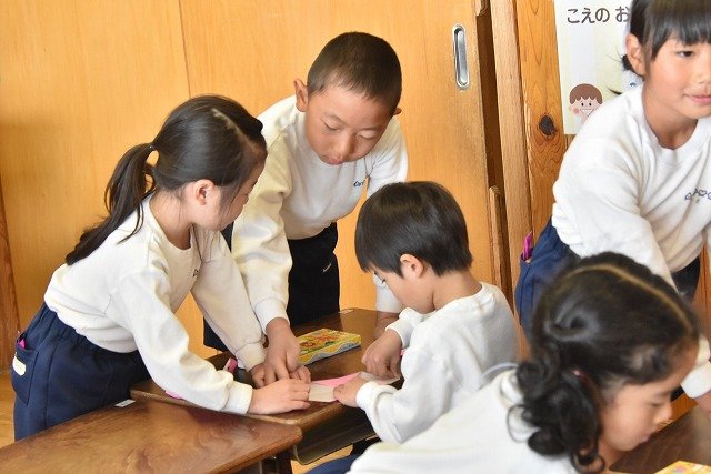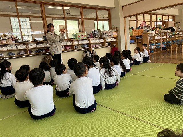 年長のお友だちが各クラスをまわり、一緒に折り紙をおったり、絵本を読んであげたりして楽しい時間を過ごしました