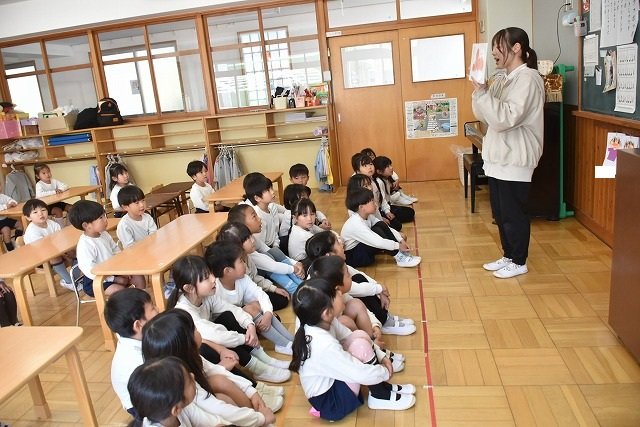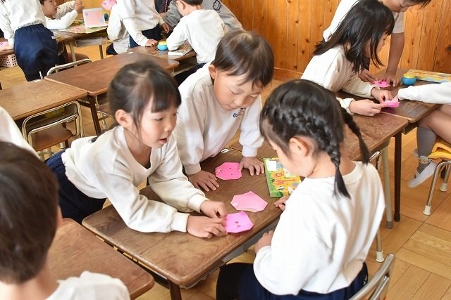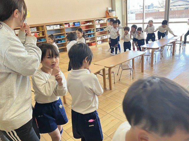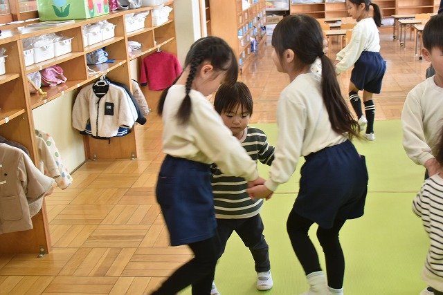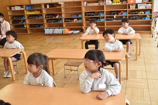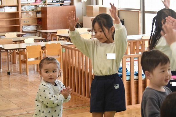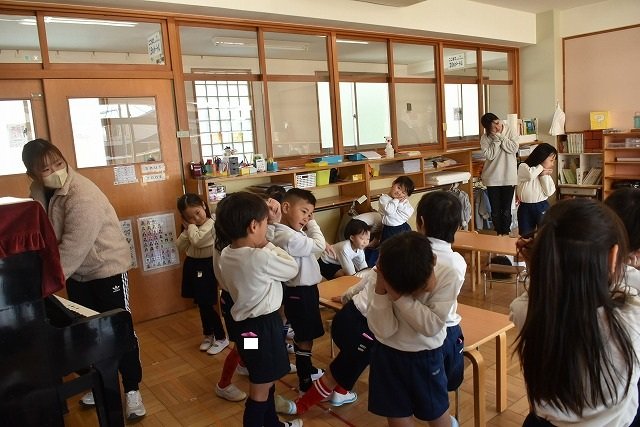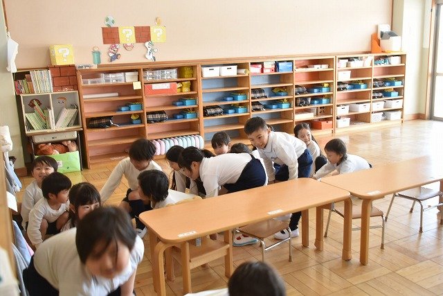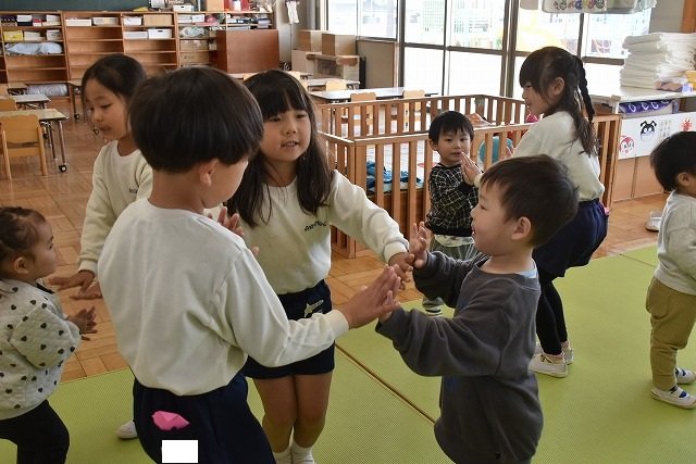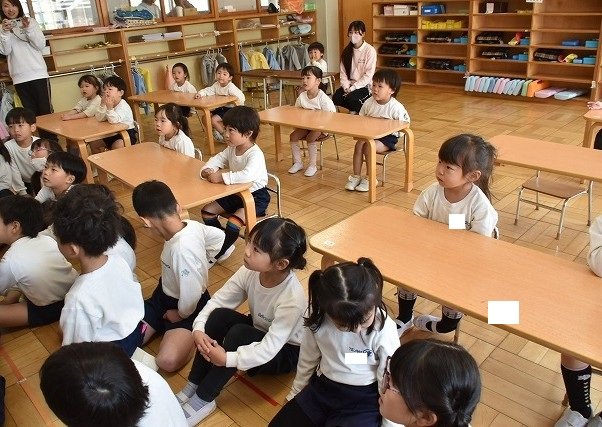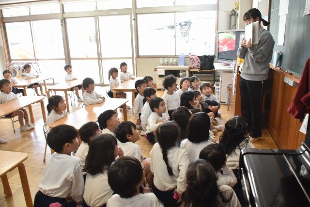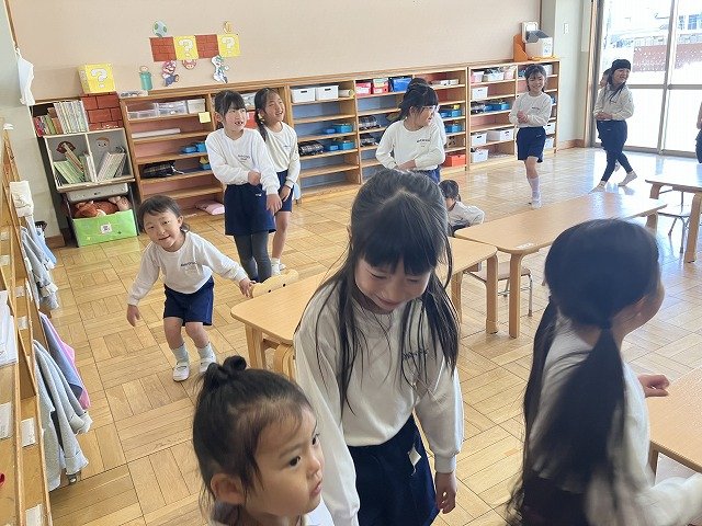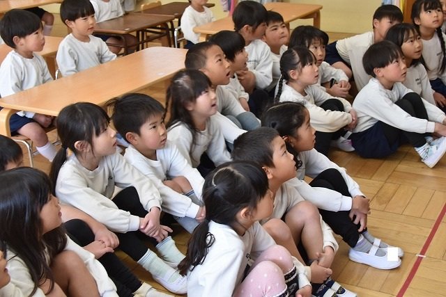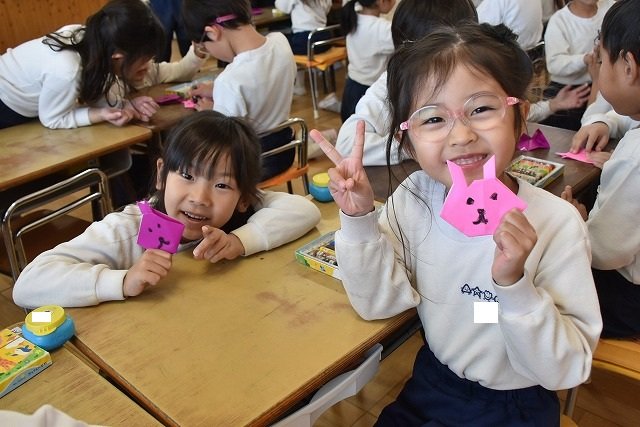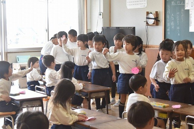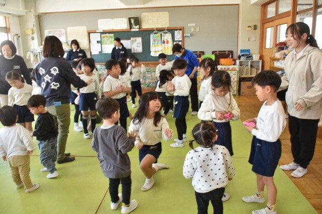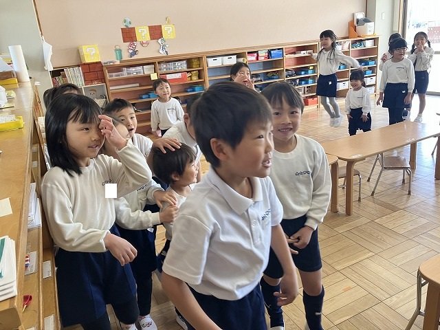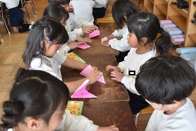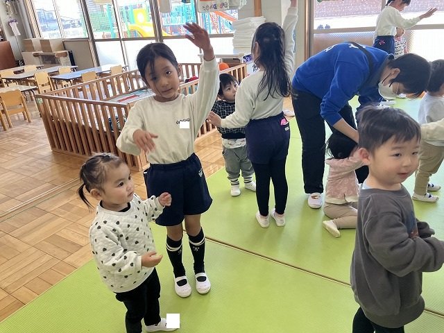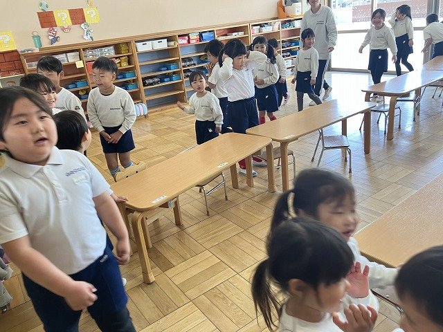 年長のお友だちが各クラスをまわり、一緒に折り紙をおったり、絵本を読んであげたりして楽しい時間を過ごしました