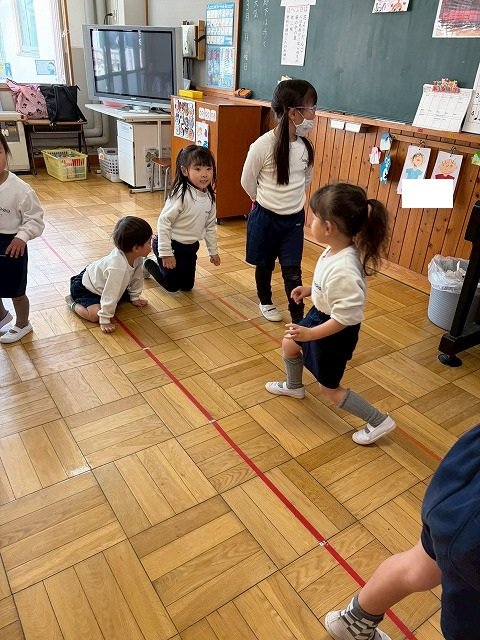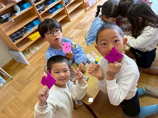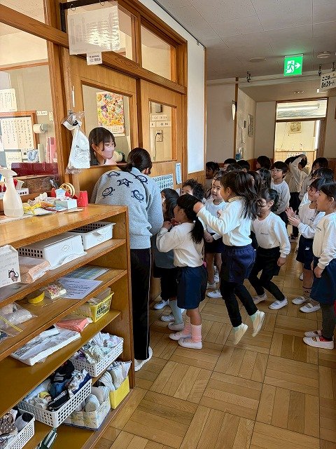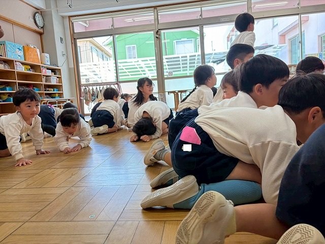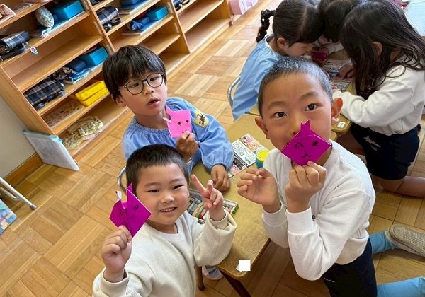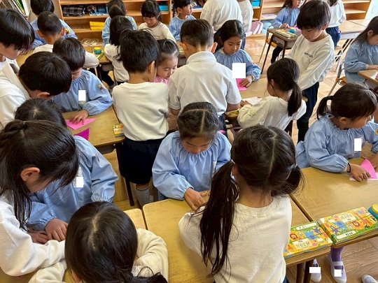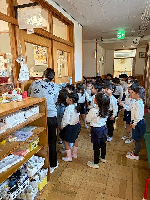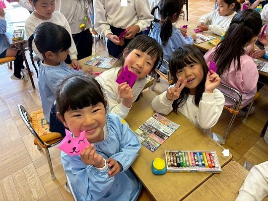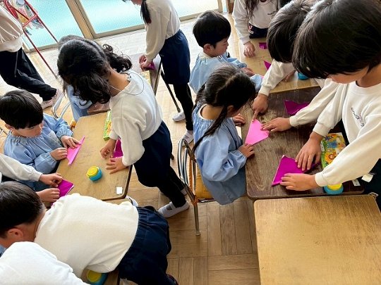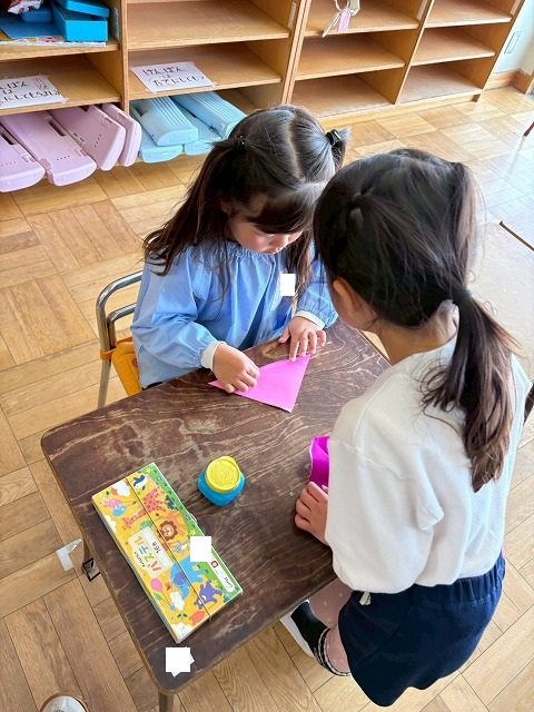 年長のお友だちが各クラスをまわり、一緒に折り紙をおったり、絵本を読んであげたりして楽しい時間を過ごしました