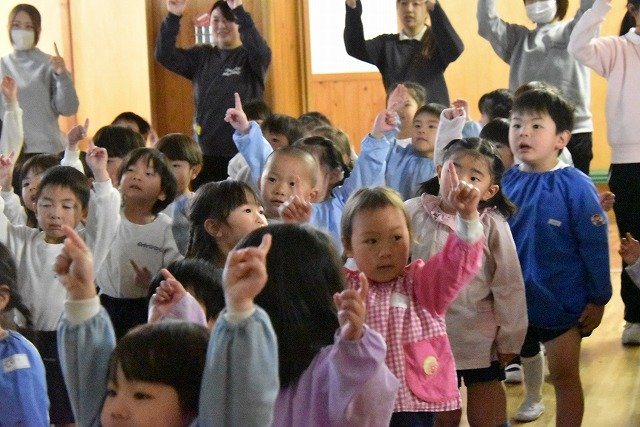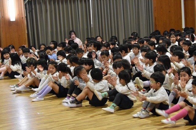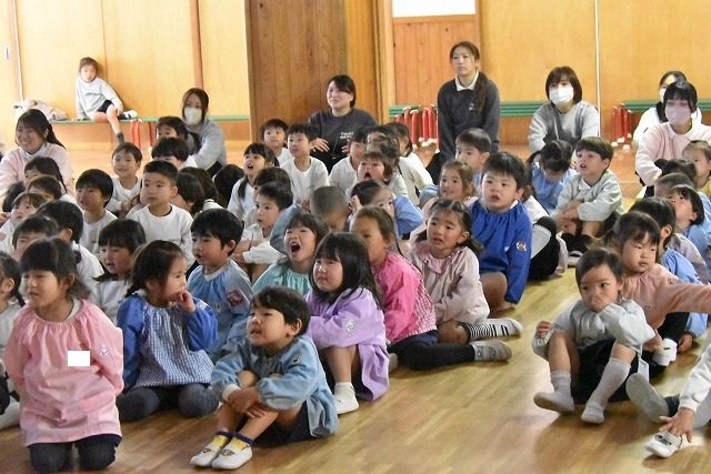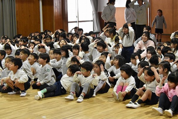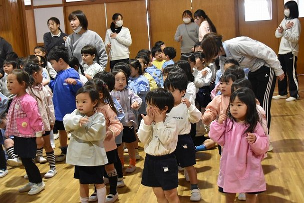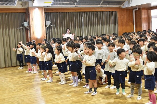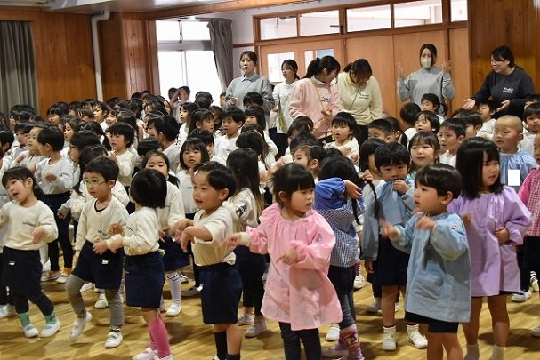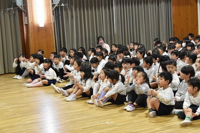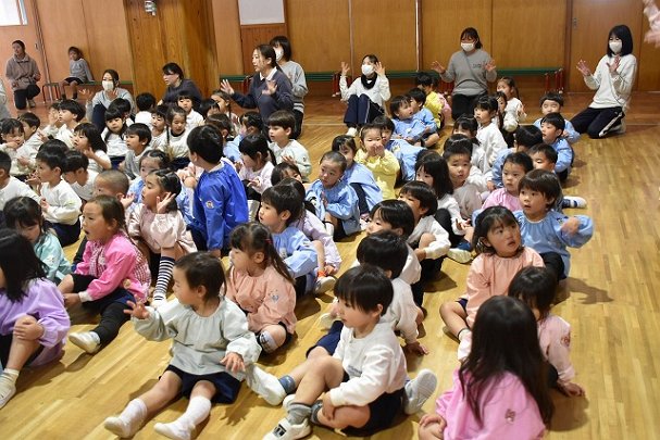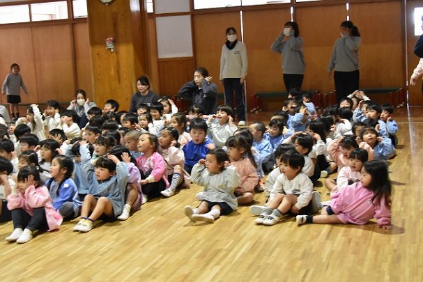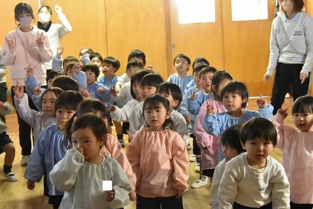 全員集まってホールで行いました。歌を歌ったり踊ったり楽しい時間を過ごしました♪