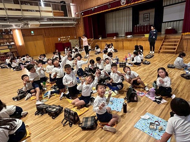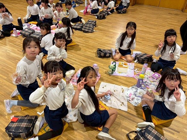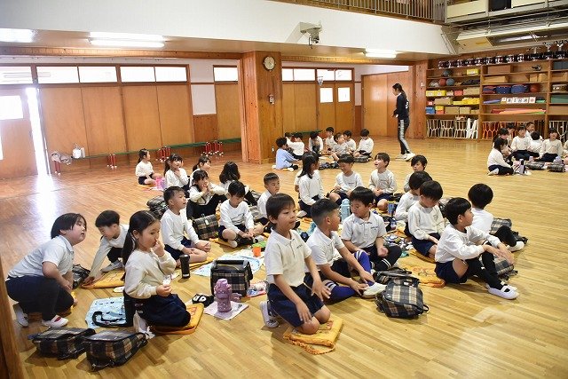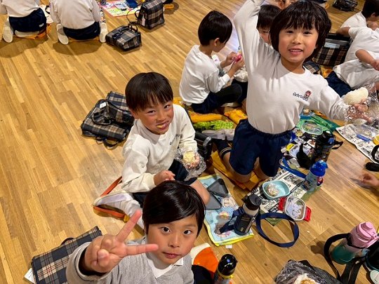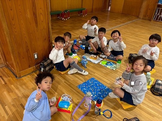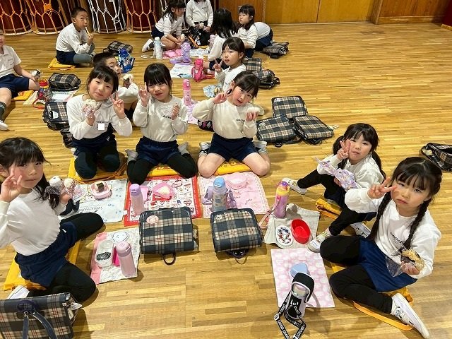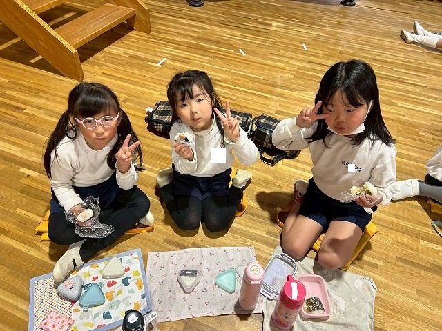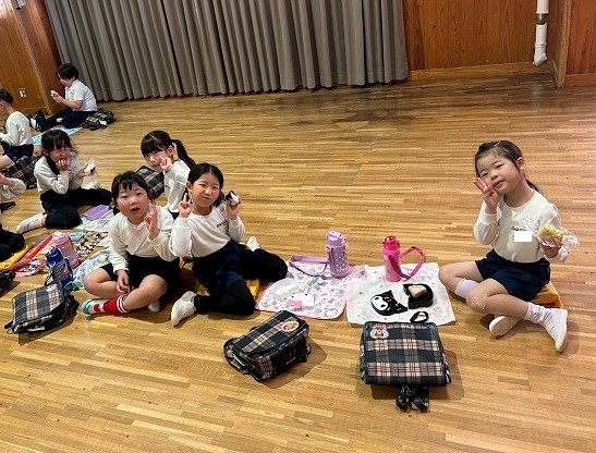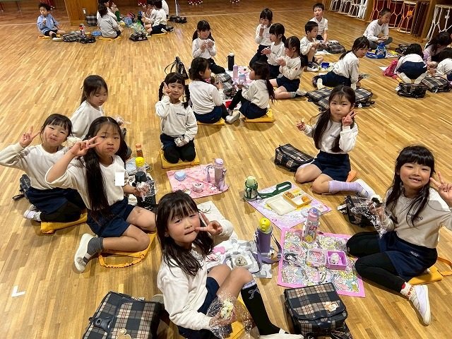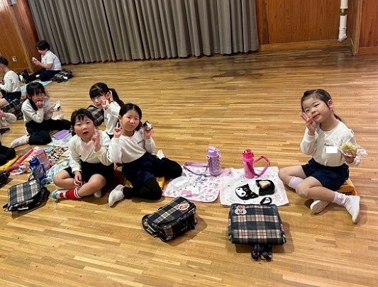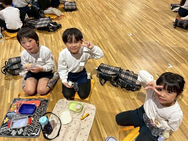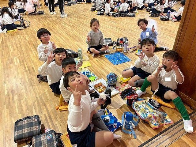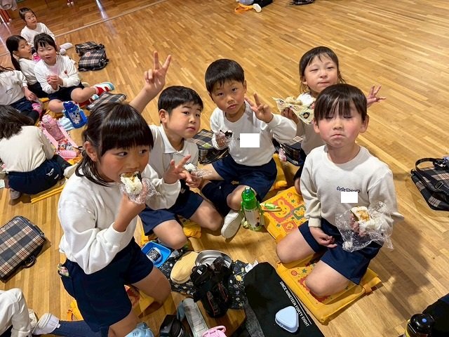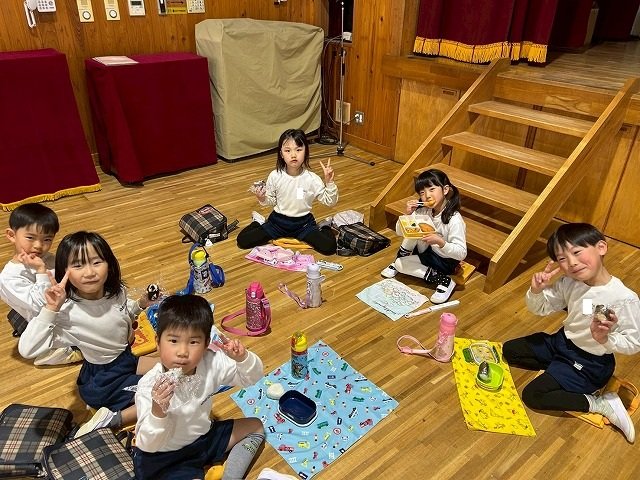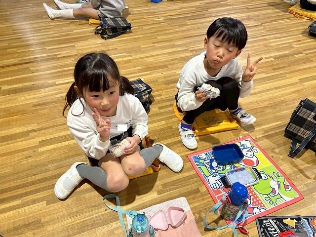 年長組 ホールに集まって食べました