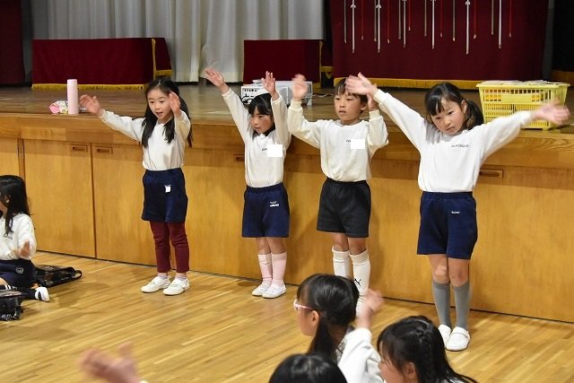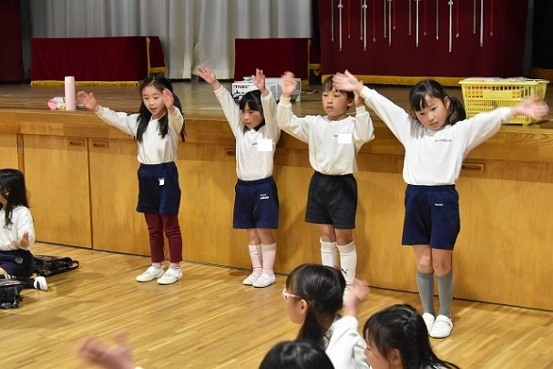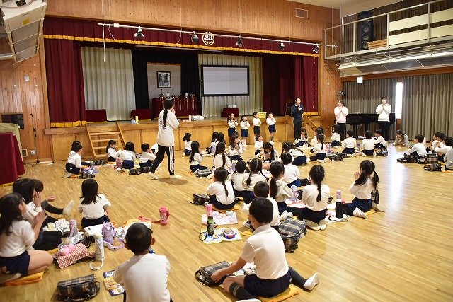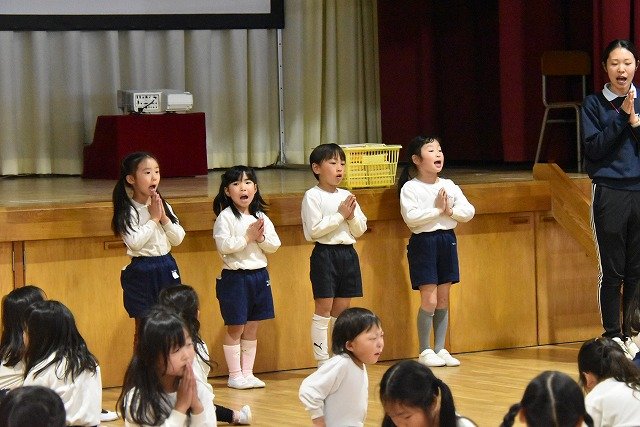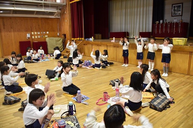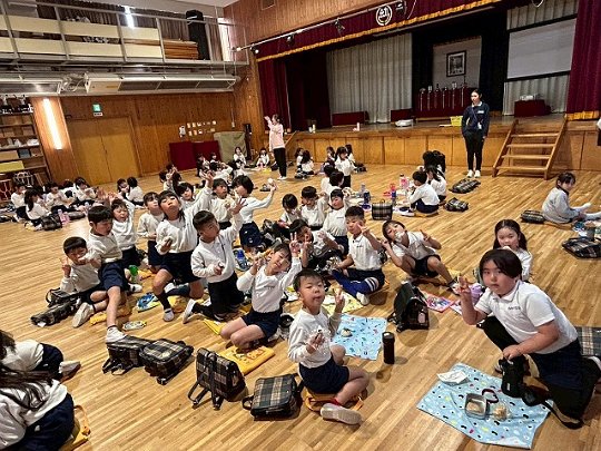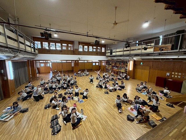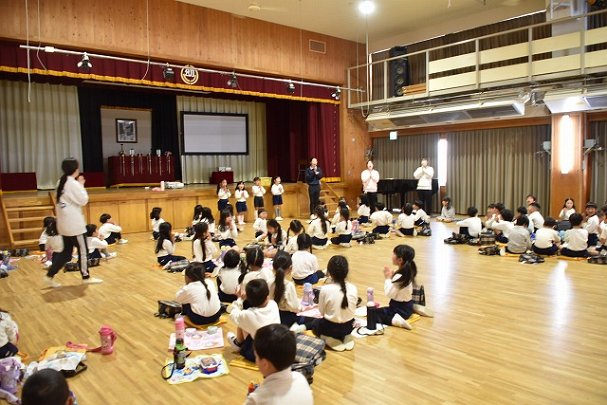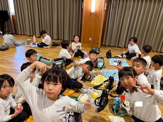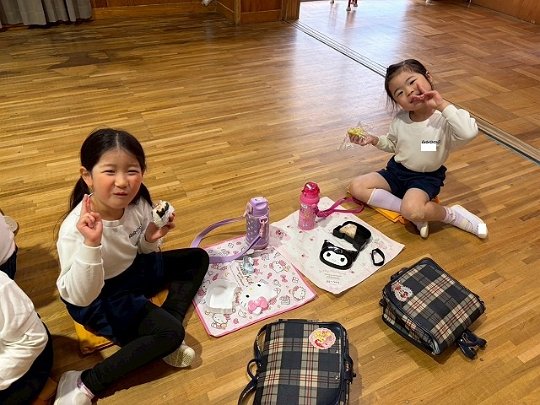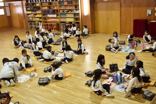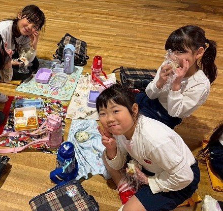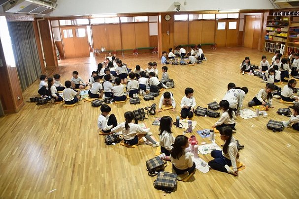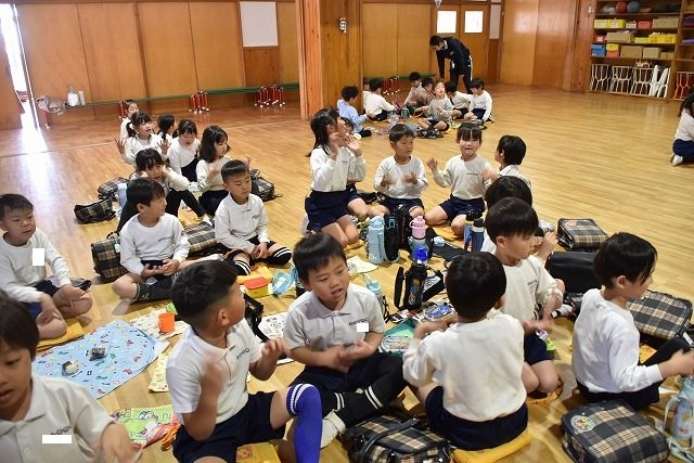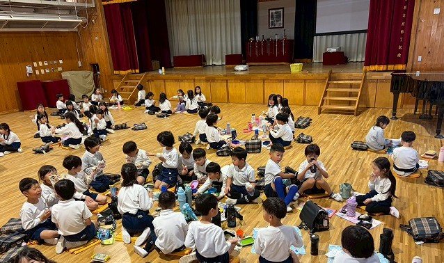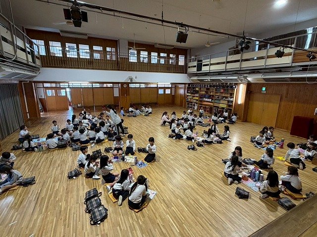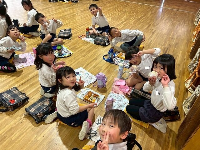 年長組 ホールに集まって食べました