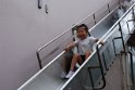 避難訓練 年長組のお友達が避難用滑り台使用の避難訓練をしました
