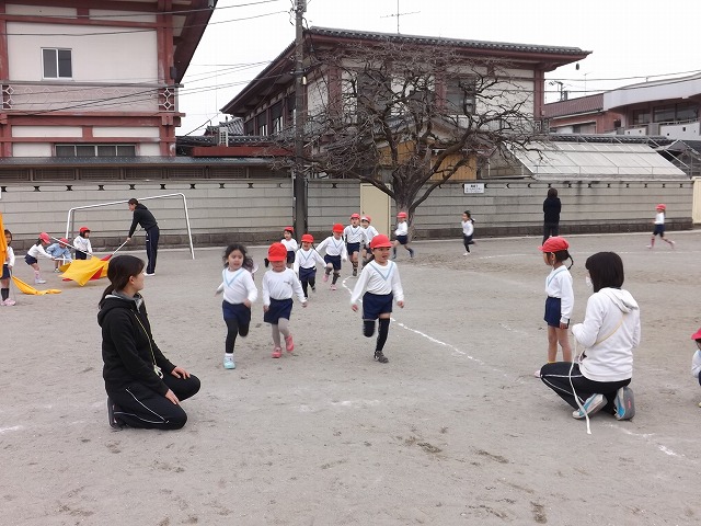 3.3 体育指導(年少組) 徒競走とリレーを行いました